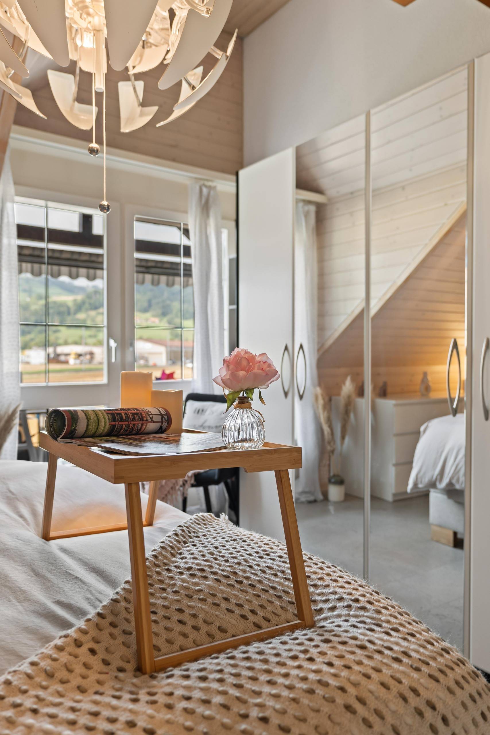 Diese von Studio Semplice totalsanierte Terrassenwohnung in Immensee verbindet hochwertiges Design mit einem unverbaubaren Blick auf den Zugersee. Zwei Terrassen mit insgesamt 61 m² bieten sowohl Seesicht als auch Bergsicht, während grosse Fensterfronten für viel Licht und Weite sorgen.