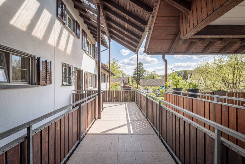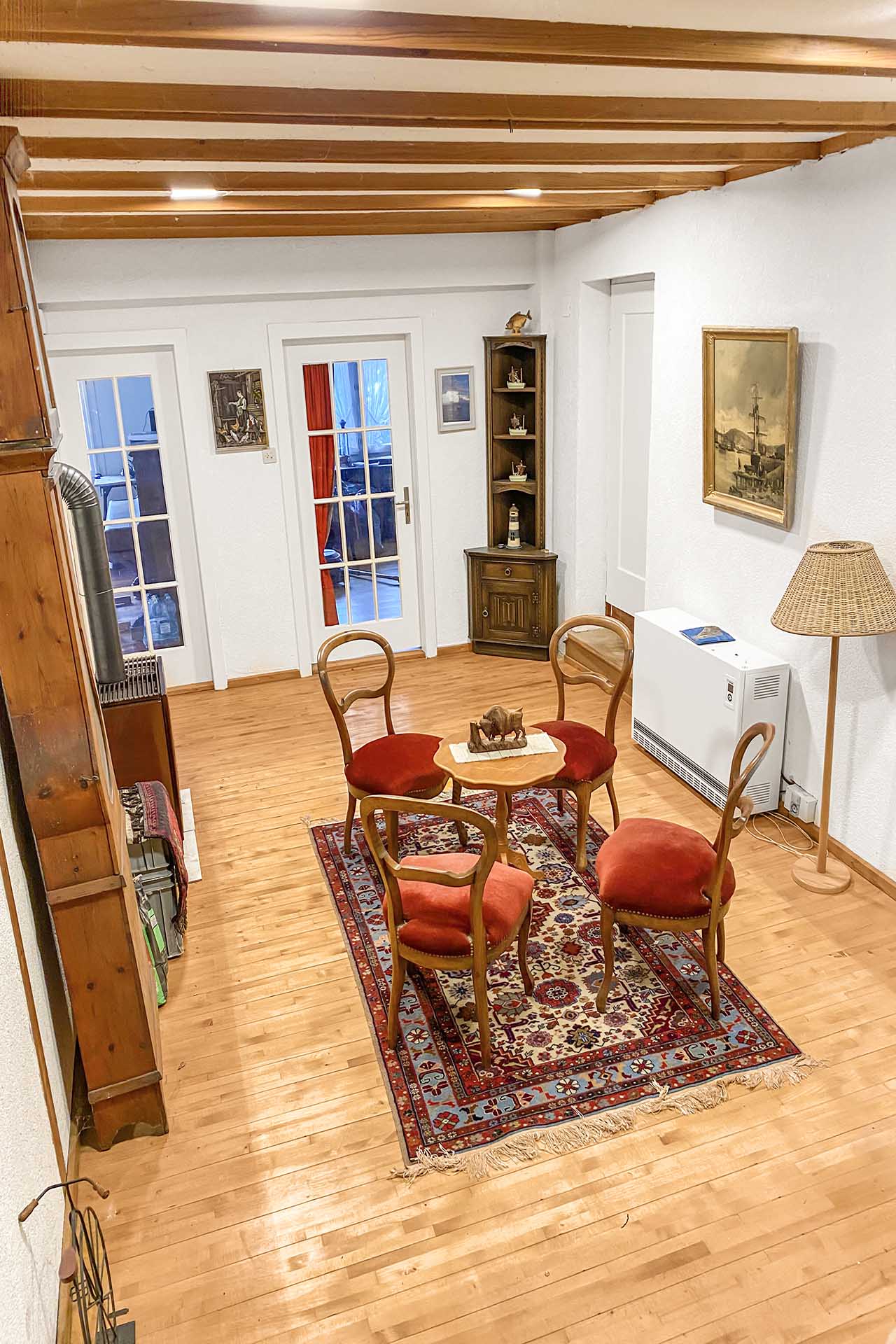Direkt angrenzend an die für Stäfa baugeschichtlich bedeutsamen “Baumannhäuser im Mies” und mit entsprechend schöner Aussicht auf Parkanlage und See entstand 1979 die architektonisch geschickt an die historische Nachbarschaft angepasste “Überbauung im Mies”. Genau an dieser privilegierten Mikrolage hat Studio Semplice tief in die Trickkiste gegriffen und eine Einfamilienhaus ähnliche, äusserst flexibel nutzbare 5.5 Zimmer Triplexwohnung mit viel Geschick und Aufwand einer Totalsanierung unterzogen.