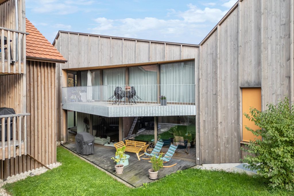 Diese moderne 4.5-Zimmer-Wohnung verbindet klare Architektur mit warmen Materialien und einem durchdachten Wohnkonzept. Auf 118 m² Wohnfläche entfaltet sich ein Zuhause, das Grosszügigkeit, Licht und Wohnqualität spürbar vereint. Die Kombination aus Holz und Sichtbeton verleiht der Wohnung einen zeitlosen, architektonisch starken Charakter.