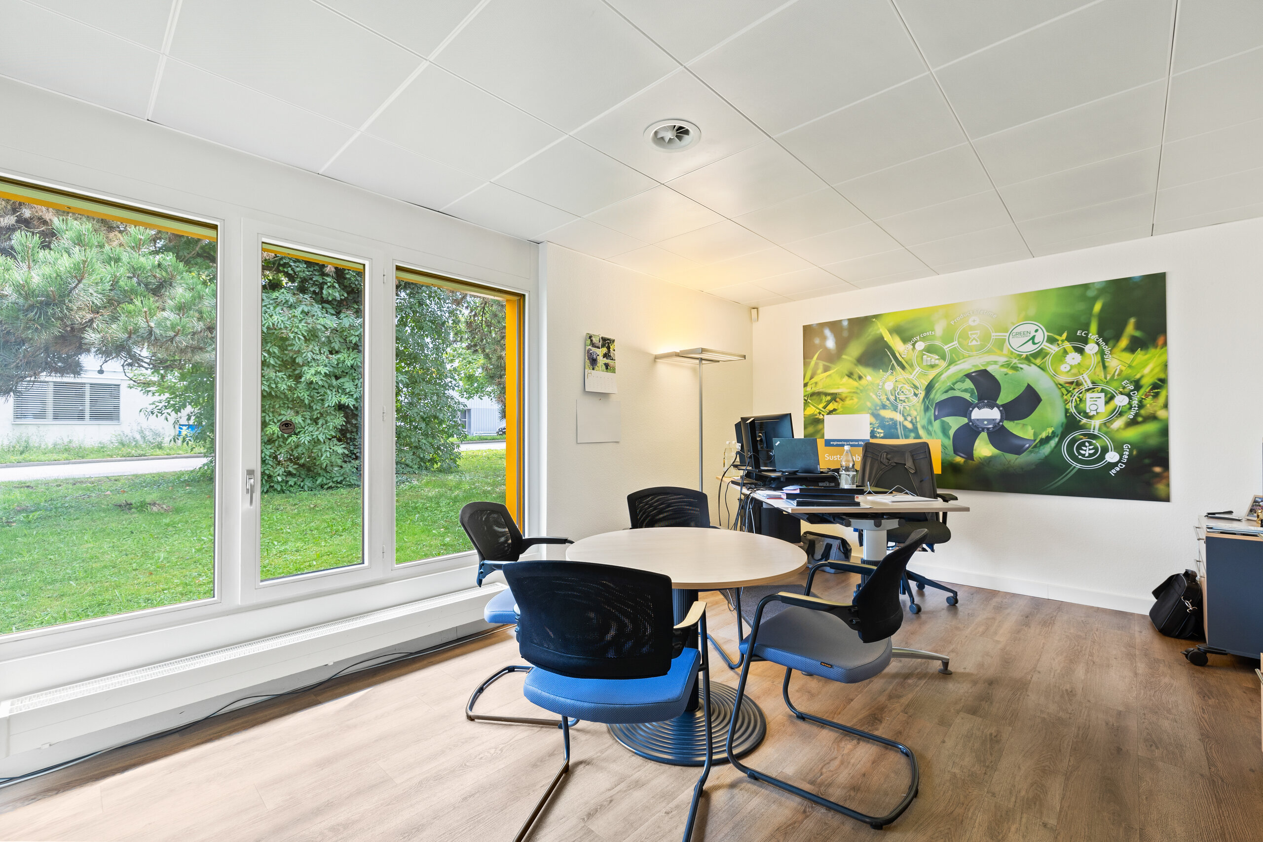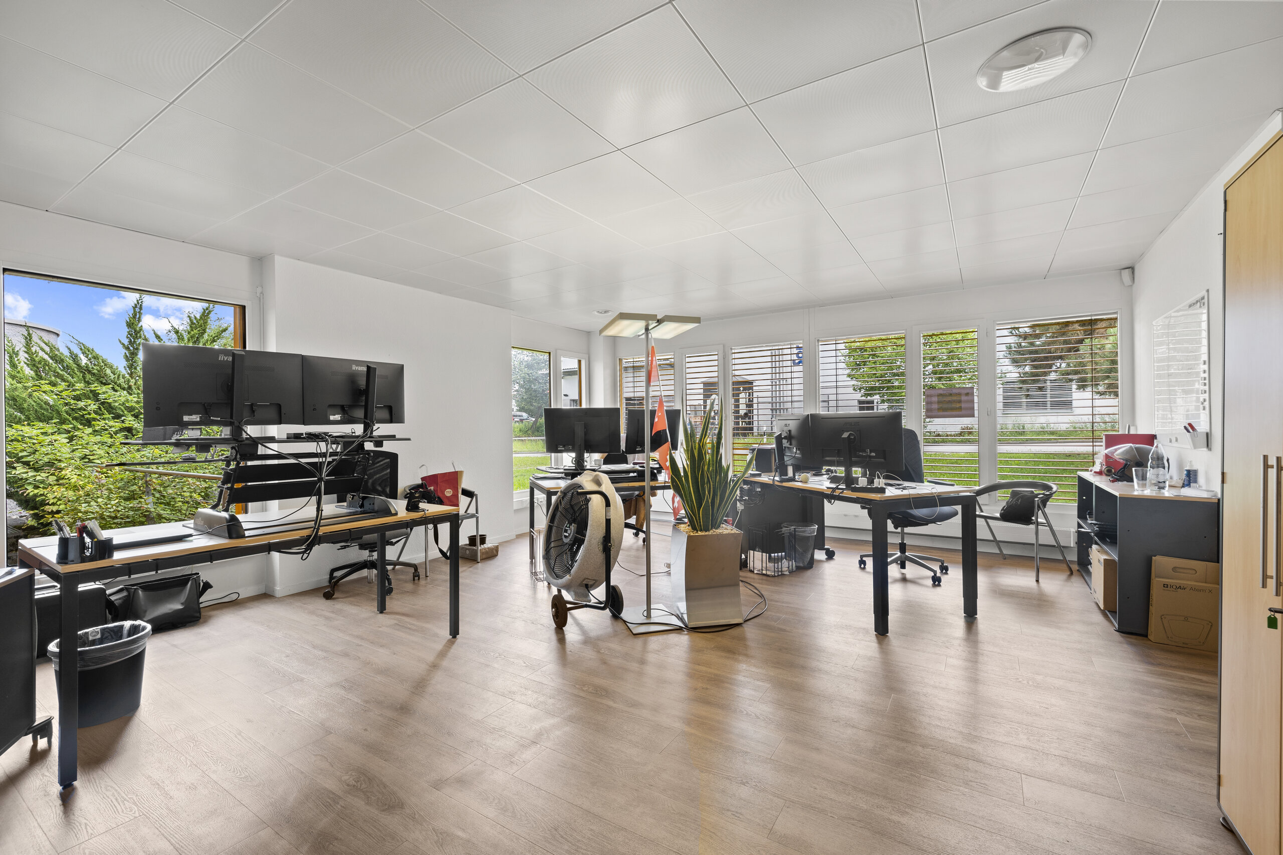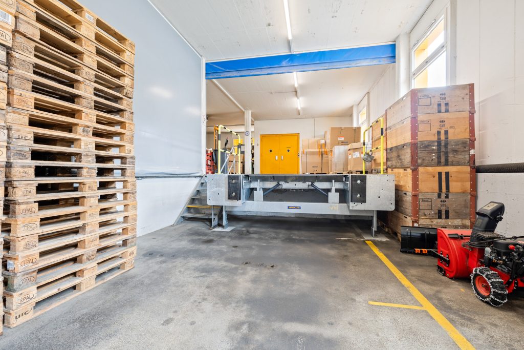 Die lichtdurchfluteten Büroflächen sind offen und flexibel gestaltet und schaffen ein angenehmes Arbeitsumfeld für Verwaltung, Planung oder Kundendienst. Grosszügige Lagerflächen im Erdgeschoss und im Untergeschoss ermöglichen effiziente Logistik- und Betriebsabläufe und eignen sich für unterschiedlichste Nutzungen. Eine überdachte Laderampe für Lastwagen sorgt für reibungslose Warenanlieferung und -abfuhr.
