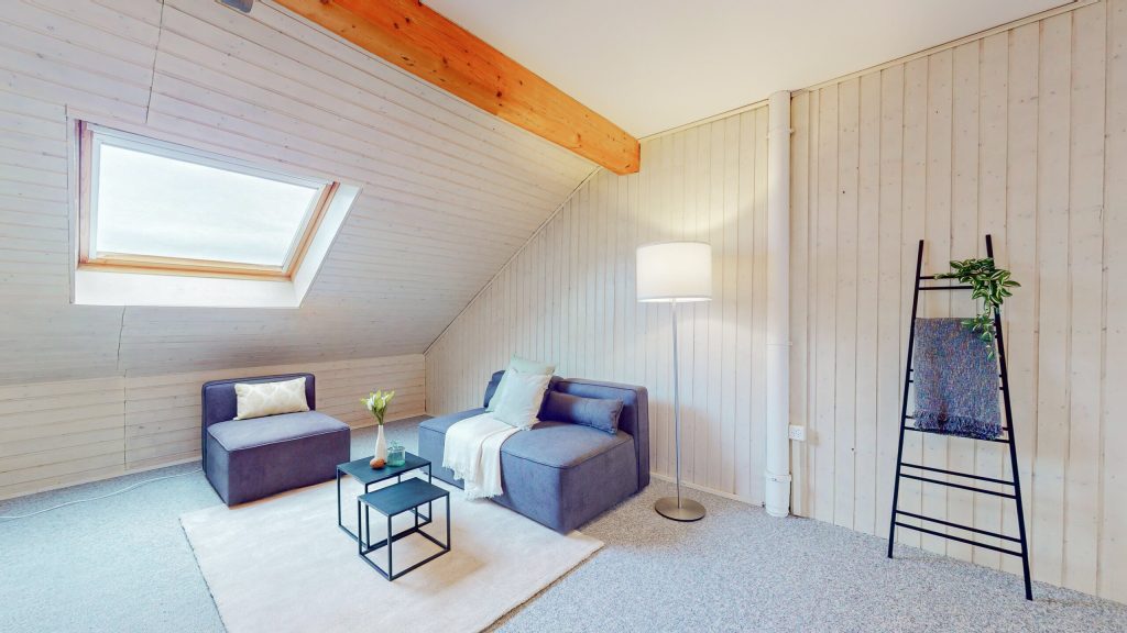 Im Dachgeschoss besteht die Möglichkeit, ein Zimmer durch das Einziehen einer Wand zu teilen – so entsteht bei Bedarf ein zusätzliches Zimmer. Damit lässt sich das Raumprogramm einfach erweitern.