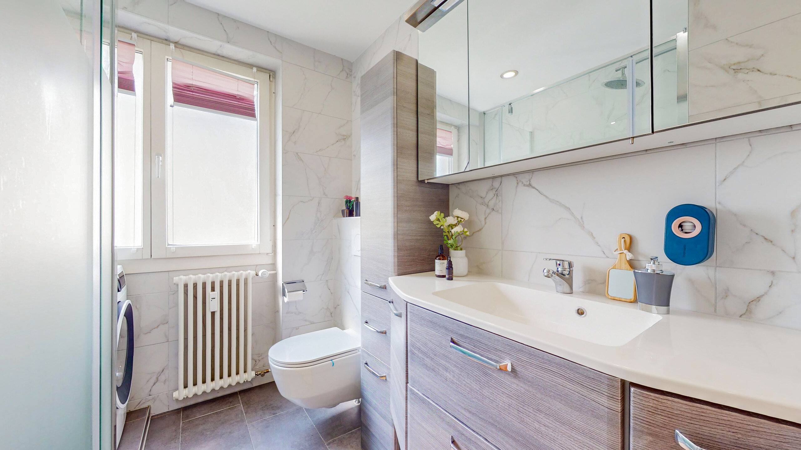 • Gepflegtes Bad mit Dusche/WC inklusive Waschmaschine und separatem Gäste-WC
