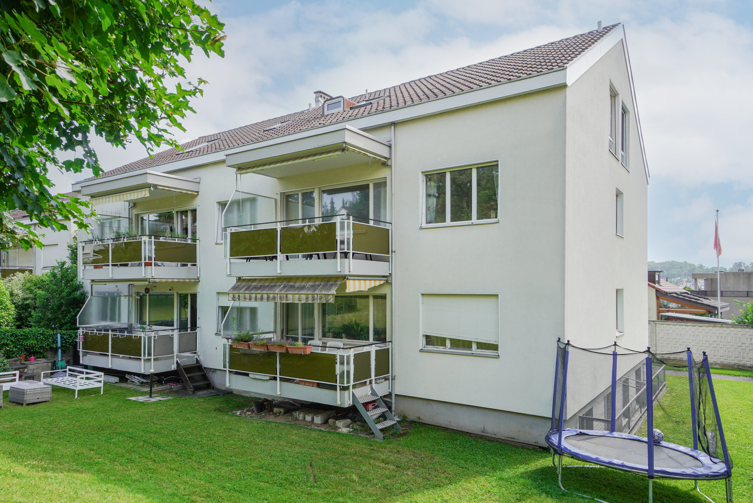 • Zwei Einstellhallenplätze sind vorhanden und kosten je CHF 30'000.– zusätzlich zum Wohnungspreis