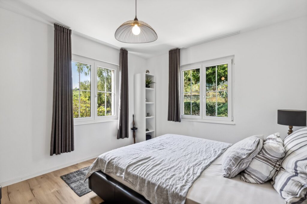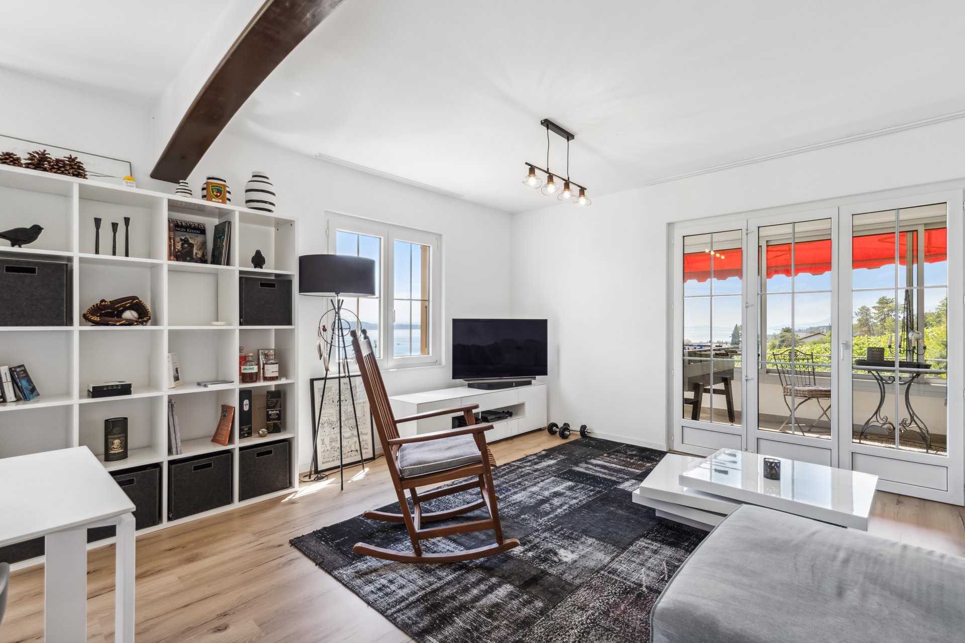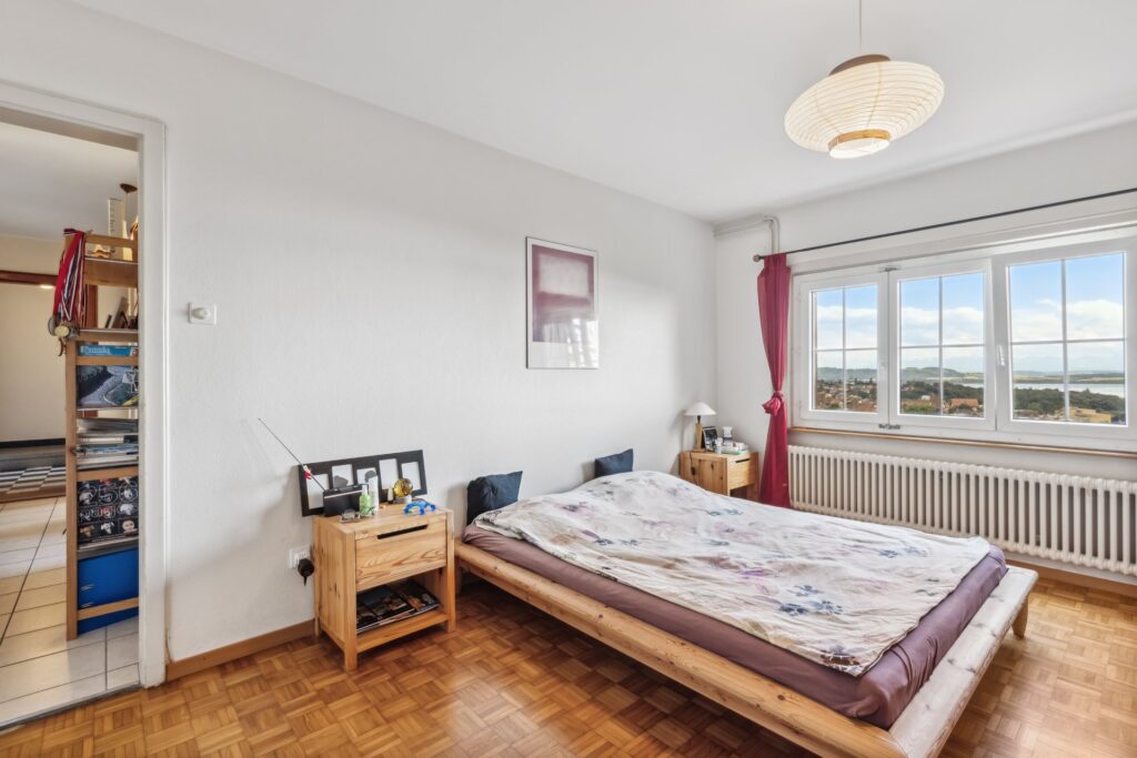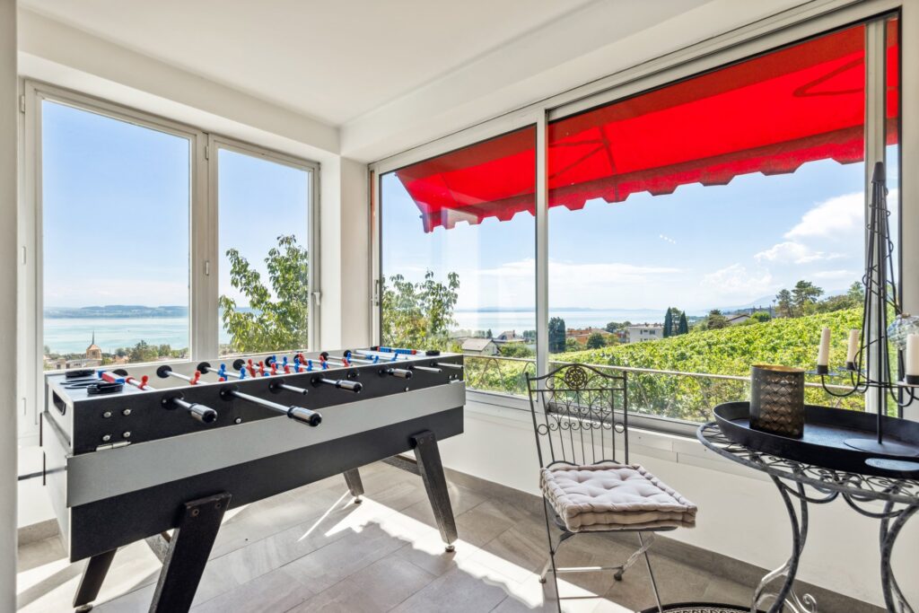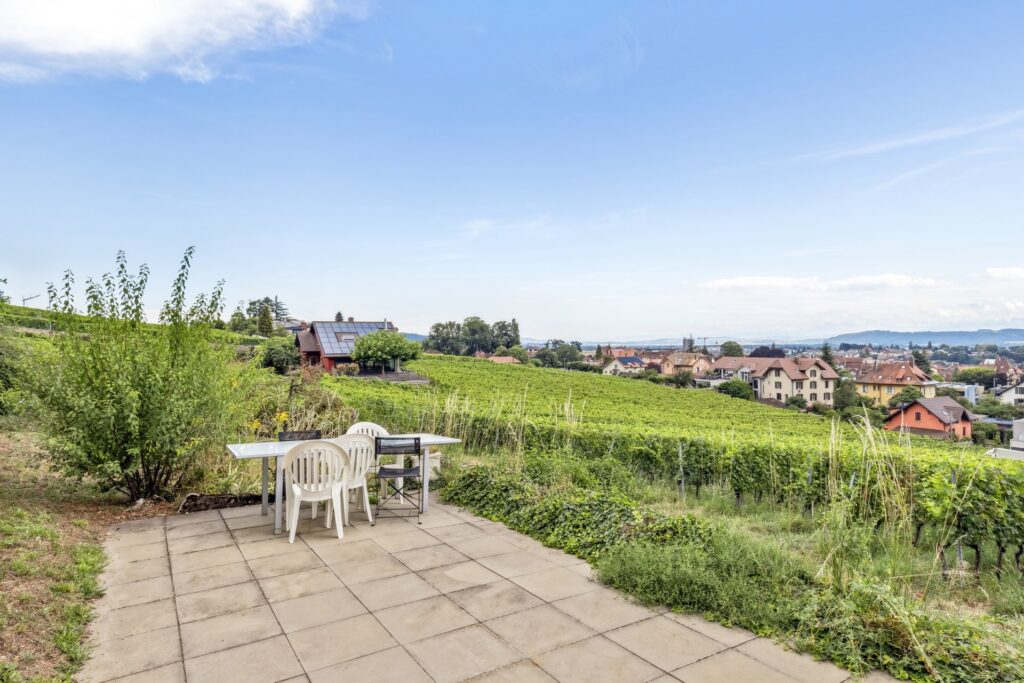 Besonders eindrucksvoll ist der Ausblick auf die umliegenden Weinberge und den Neuenburgersee – ein Panorama, das den Alltag verschönert und für echte Lebensqualität sorgt. Das schöne Esszimmer mit direktem Zugang zur Terrasse oder zum Balkon schafft ein einladendes Ambiente für Familie und Gäste.