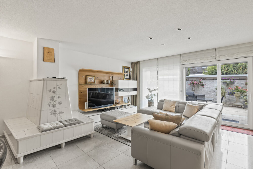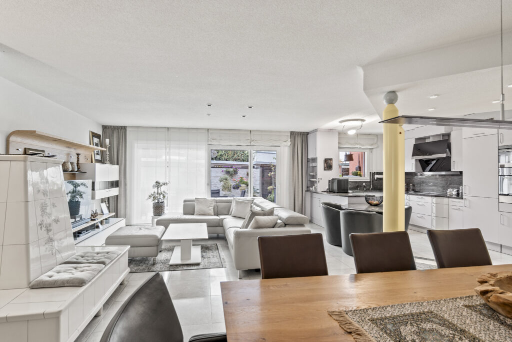 • Heller Wohn- und Essbereich mit Sitzofen und direktem Zugang zur Terrasse
