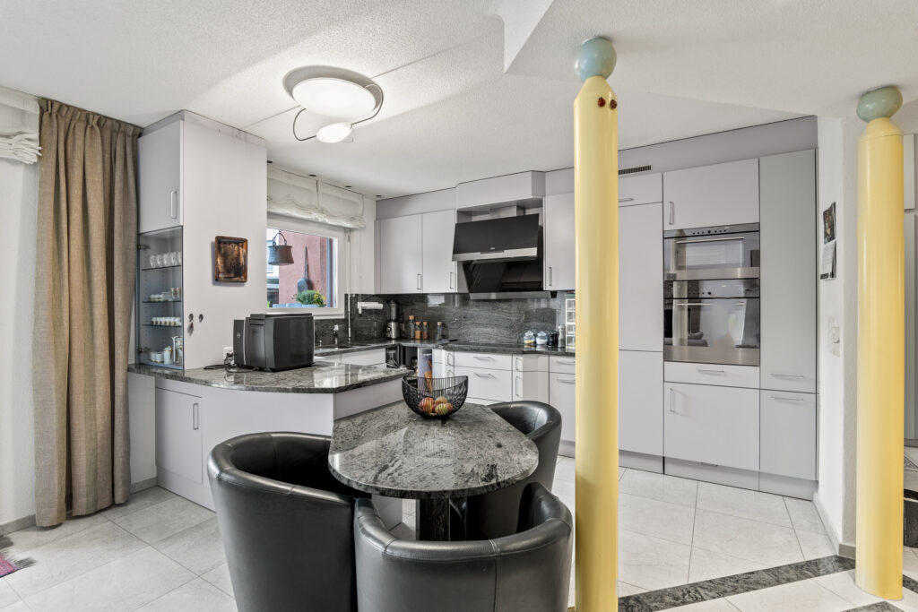 • Offene Küche mit Granitabdeckung, viel Stauraum und angebautem Frühstückstisch