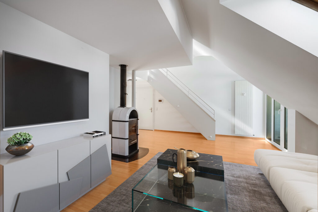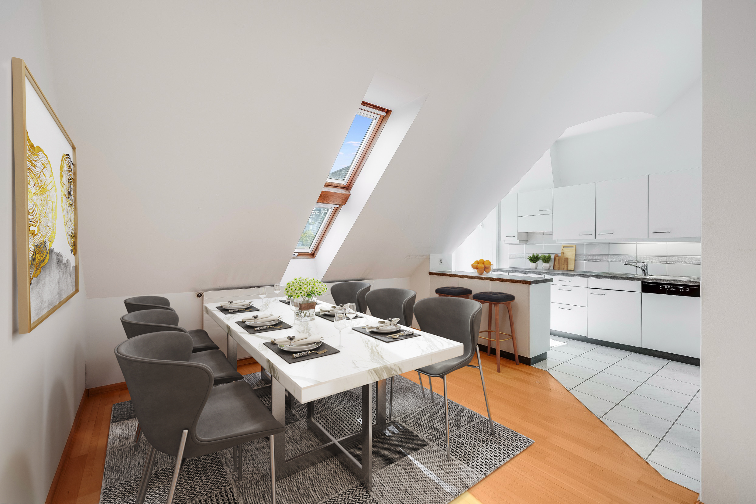 An ruhiger und dennoch zentraler Lage in Binningen verkaufen wir eine grosszügige Dachmaisonette im Baurecht, die mit durchdachtem Layout, viel Licht und attraktiven Aussenflächen überzeugt. Mit 109 m² Wohnfläche, verteilt auf 4.5 Zimmer, eignet sich die Wohnung ideal für Paare, Familien oder alle, die Wohnen mit Komfort und Funktionalität verbinden möchten.