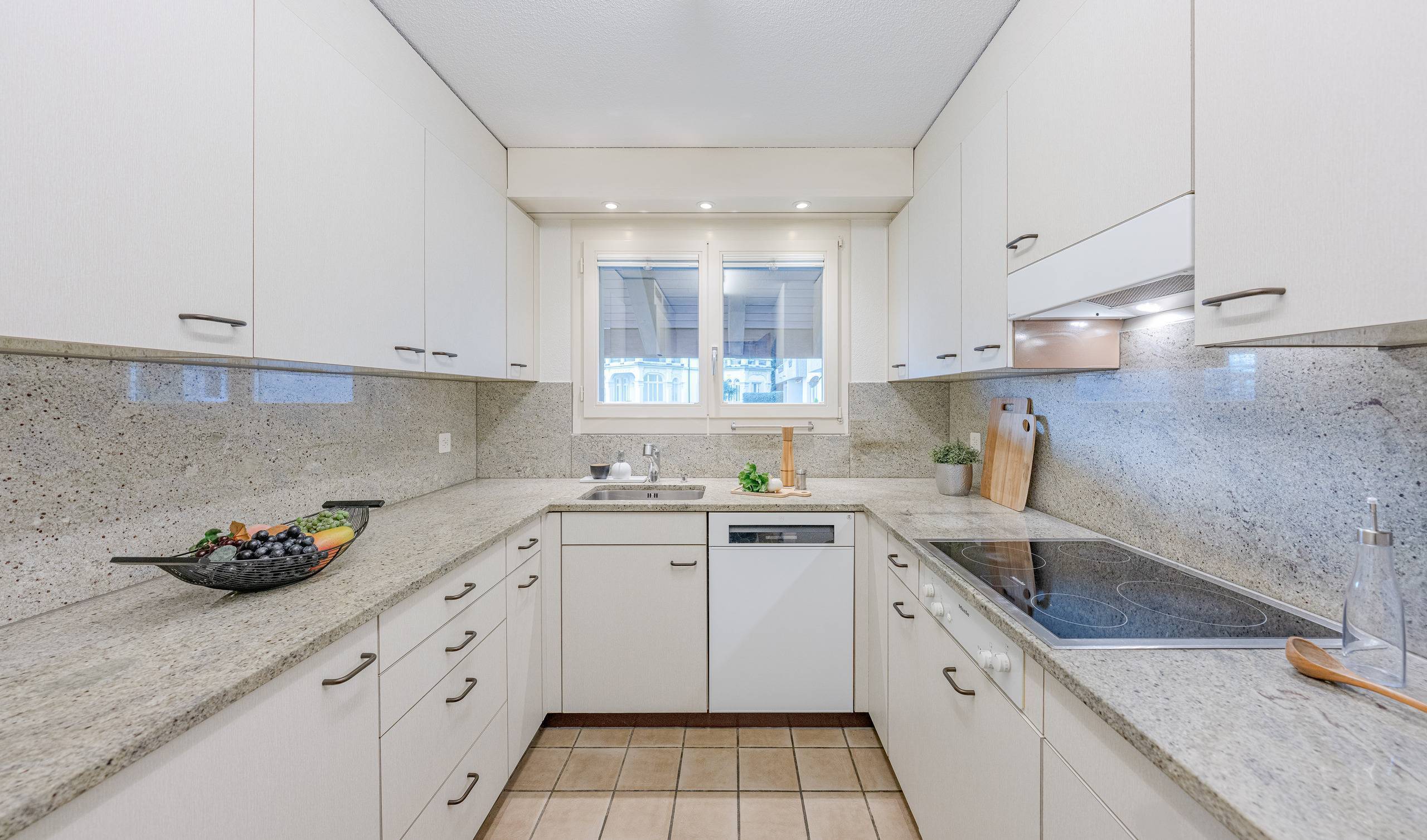• Geschlossene Küche: Mit Natursteinabdeckungen und viel Stauraum
