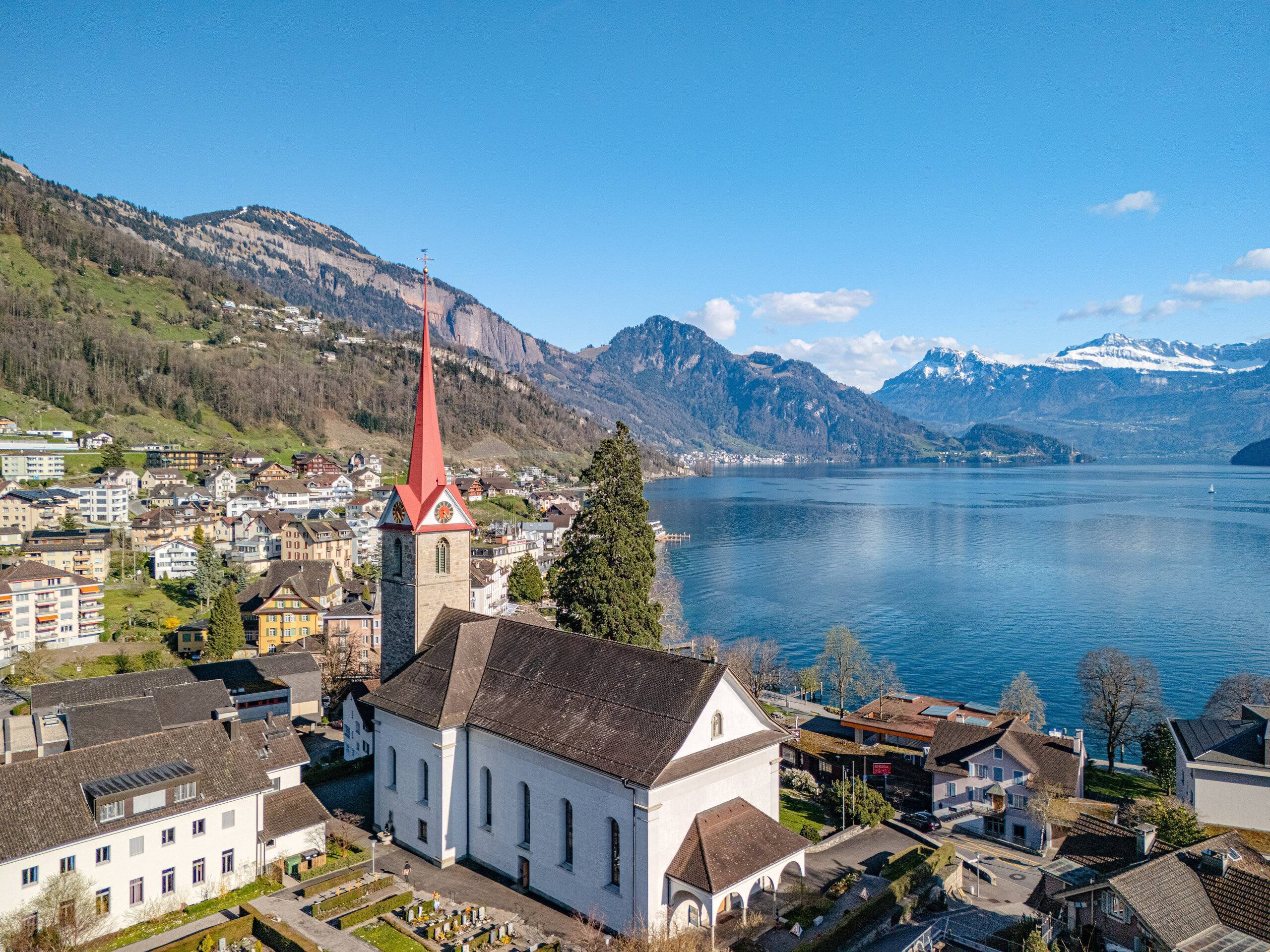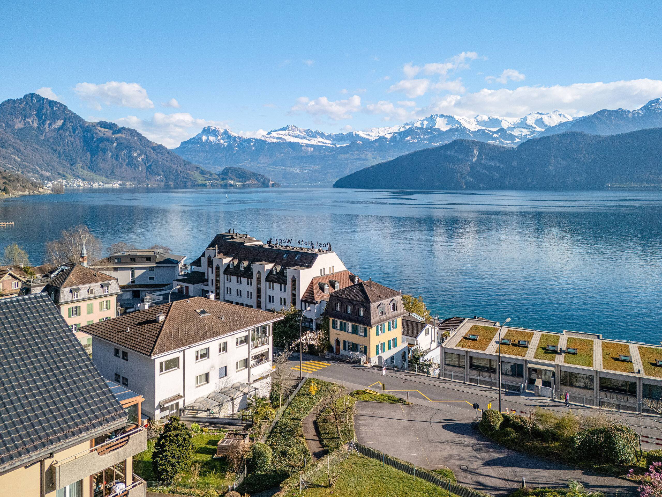 Die Mikrolage überzeugt im Alltag: Schule, Kindertagesstätte, Spielplätze, Kirche und Einkaufsmöglichkeiten sind bequem zu Fuss erreichbar. Die Bushaltestelle befindet sich direkt vor dem Haus und bietet Verbindungen nach Küssnacht, Brunnen und Rotkreuz. Auch die Postfiliale Weggis liegt in unmittelbarer Nähe.