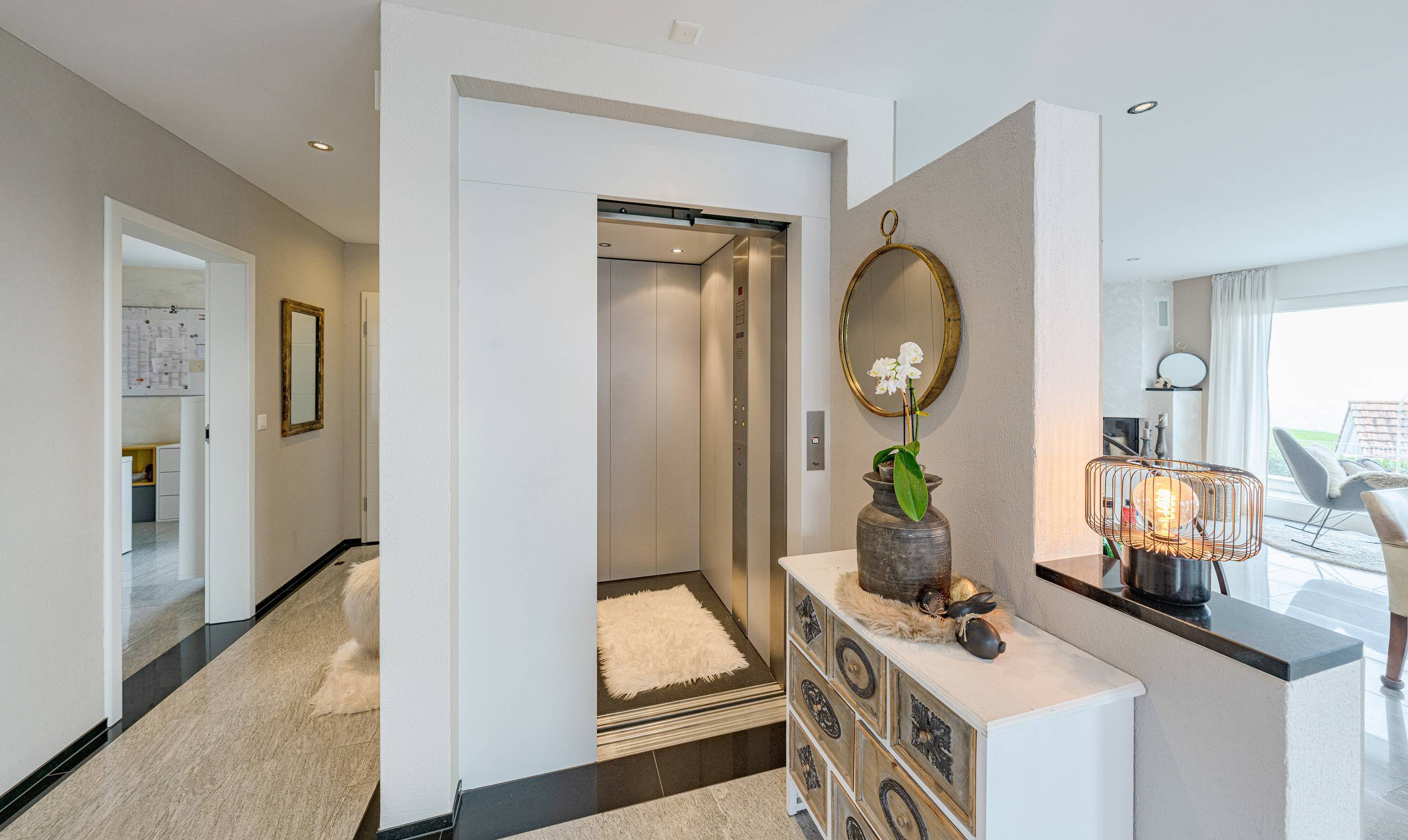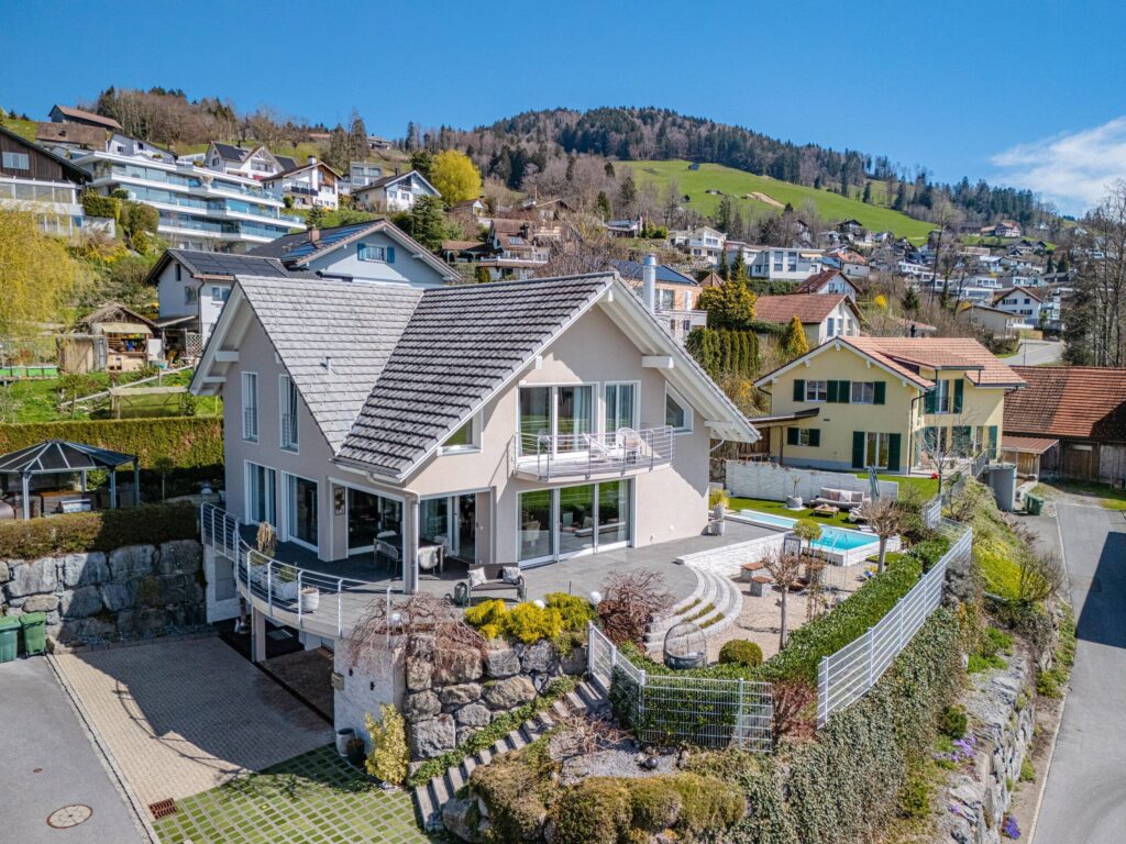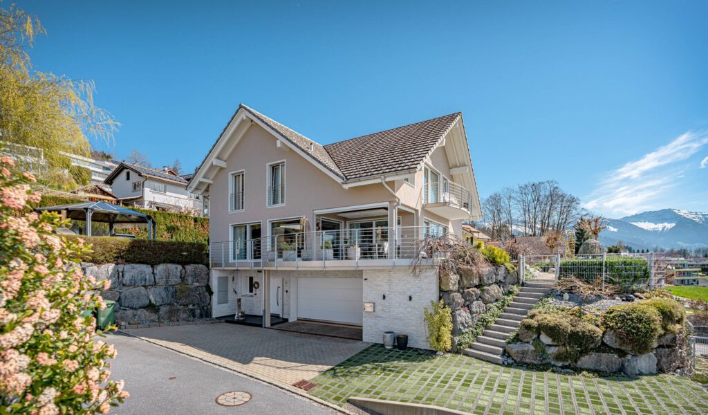 Dank moderner Haustechnik mit Luft/Wasser-Wärmepumpe, Bodenheizung und einem Lift ist auch für höchsten Wohnkomfort gesorgt. Eine Doppelgarage und ein Aussenparkplatz sind bereits im Kaufpreis enthalten.