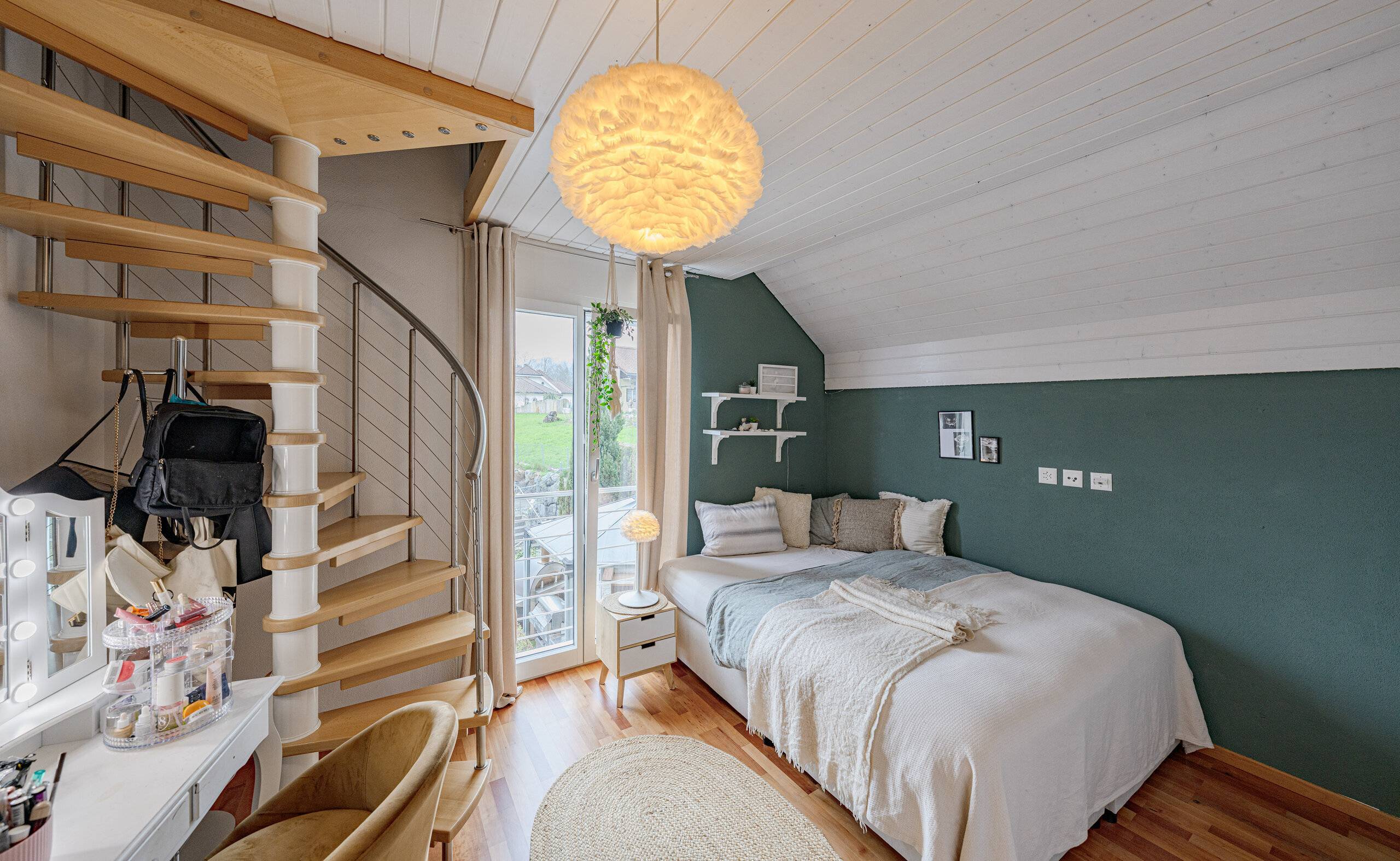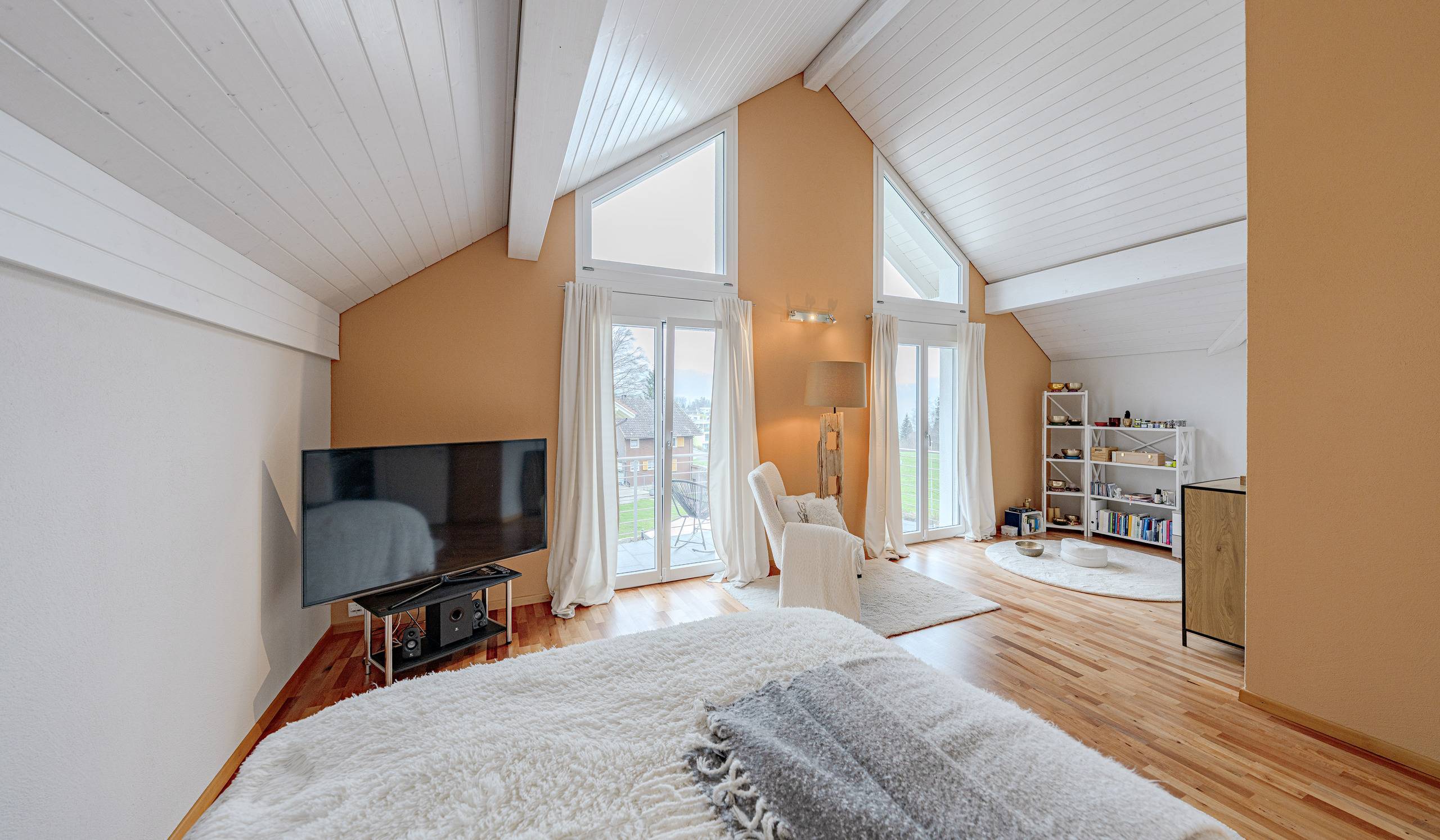 - Wohnen: Grosser, offener und heller Wohn- und Essbereich mit gemütlichem Cheminée und direktem Zugang zur Terrasse