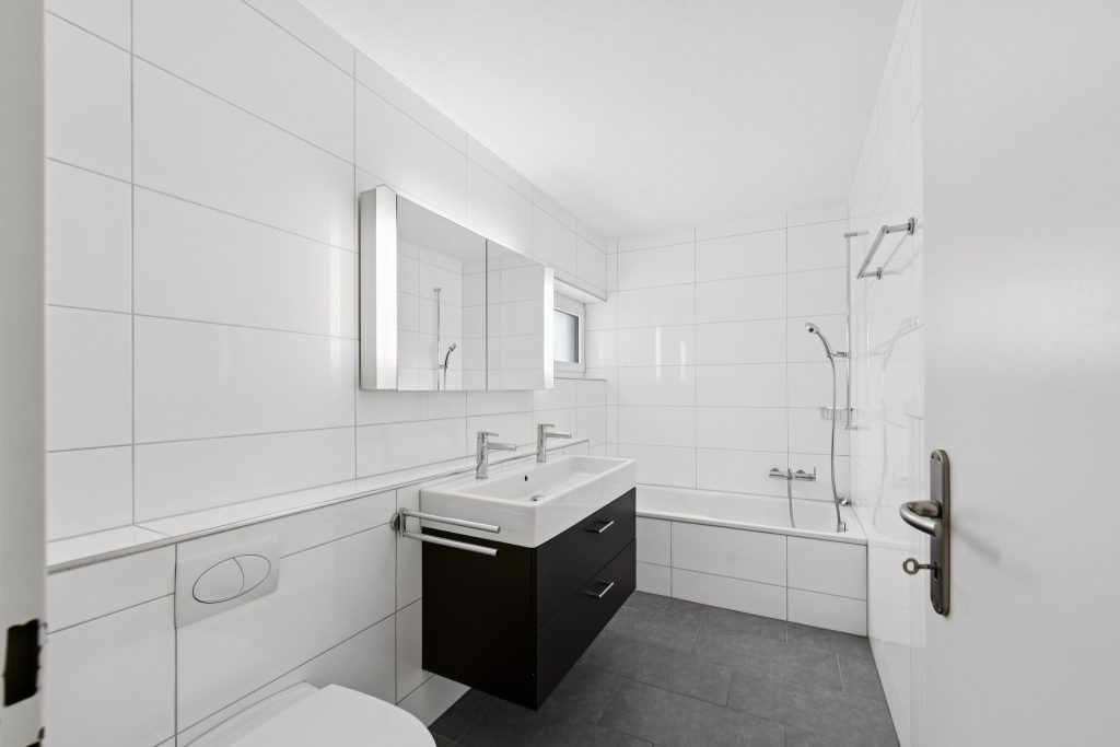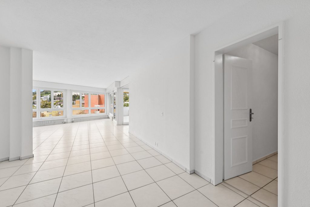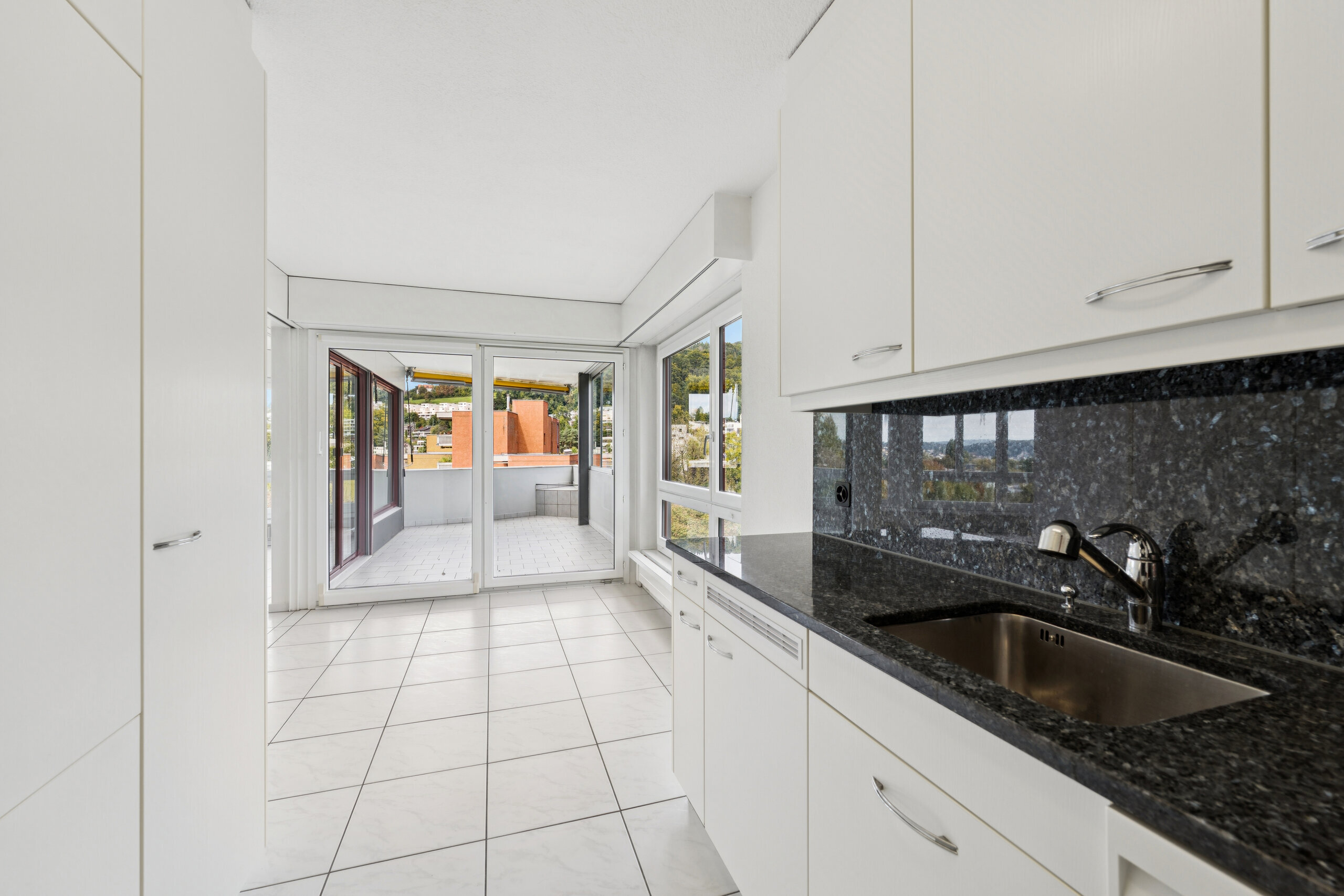 Die grosszügigen 112 m² Wohnfläche im 2. Obergeschoss verteilen sich auf einen offenen, lichtdurchfluteten Wohn- und Essbereich mit direktem Zugang zum Balkon sowie eine geschlossene Küche mit Granitabdeckung, viel Stauraum und Platz für einen Esstisch. Eine Nasszelle mit Bad/WC sowie ein separates Gäste-WC sorgen für hohen Wohnkomfort.