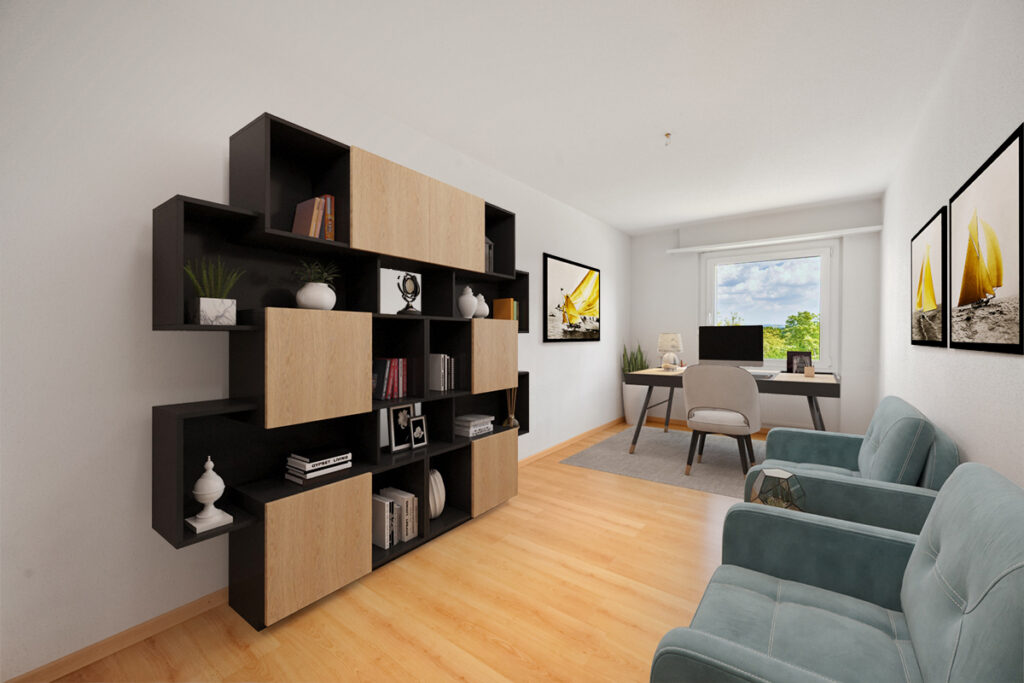 - Flächenangebot: 74 m² Wohnfläche, geschickt auf 3.5 Zimmer verteilt