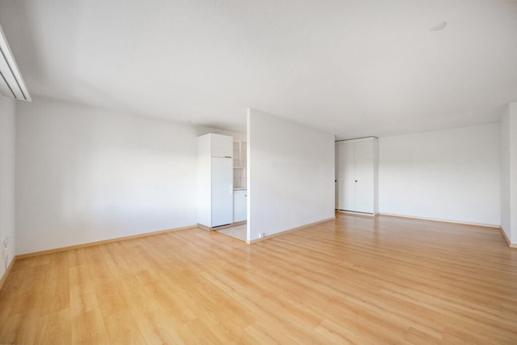 Die 74 m² Wohnfläche sind optimal aufgeteilt. Der helle Wohnbereich öffnet sich direkt zum Balkon, der mit seiner Verglasung zusätzlichen Wohnkomfort schafft. Die halboffene Küche überzeugt mit viel Stauraum und einer funktionalen Ausstattung. Der gepflegte Nassbereich verfügt über ein Bad/WC.