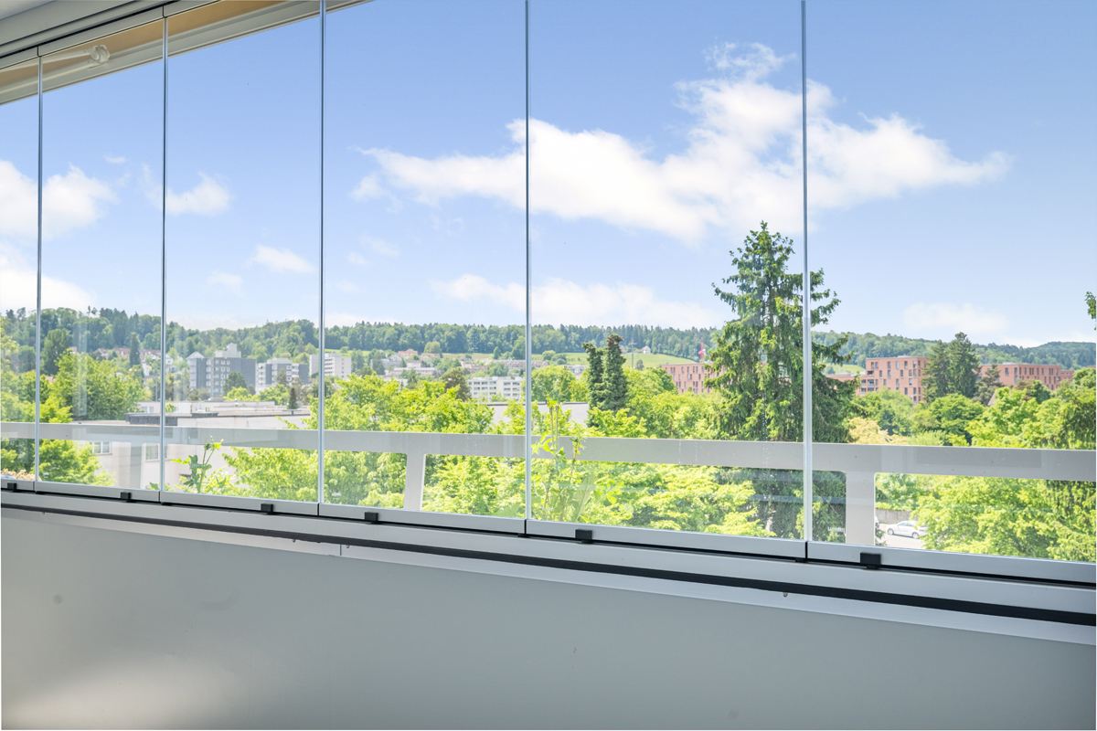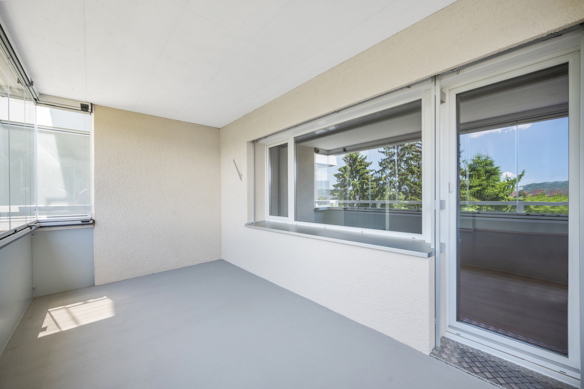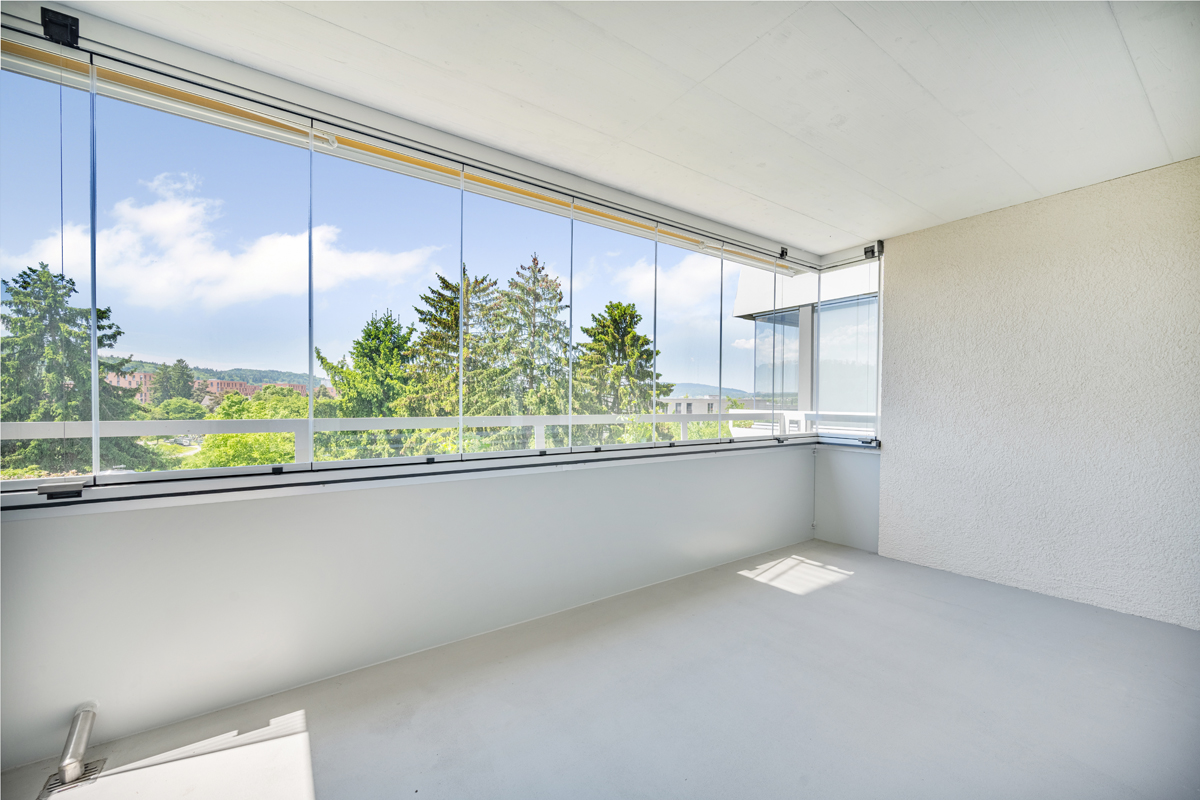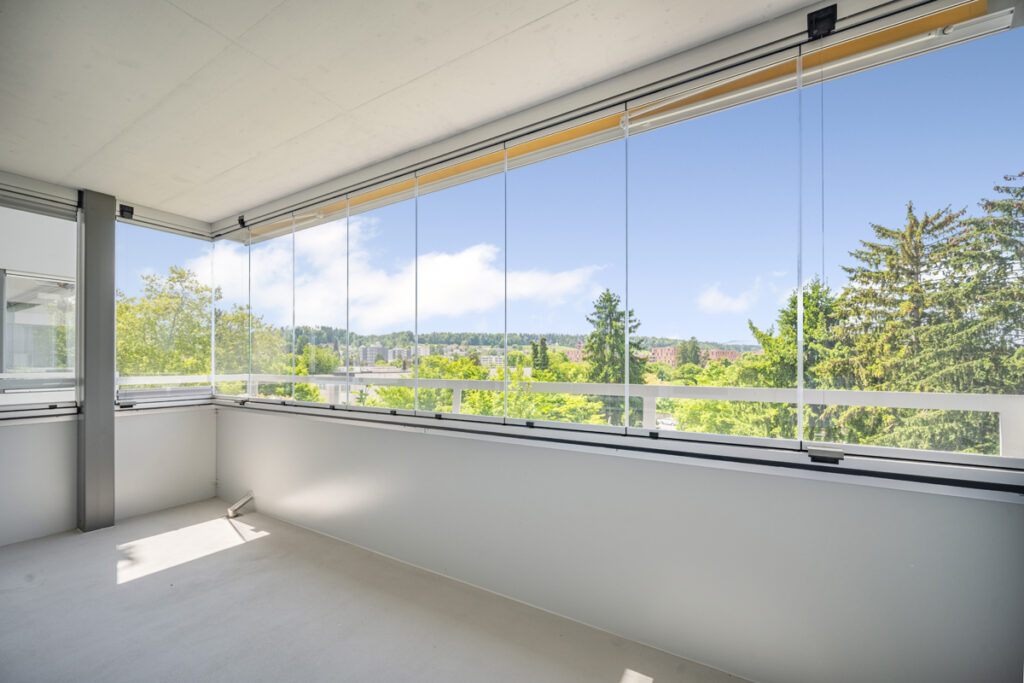 - Grosser, verglaster Balkon: Mit Sicht ins Quartier