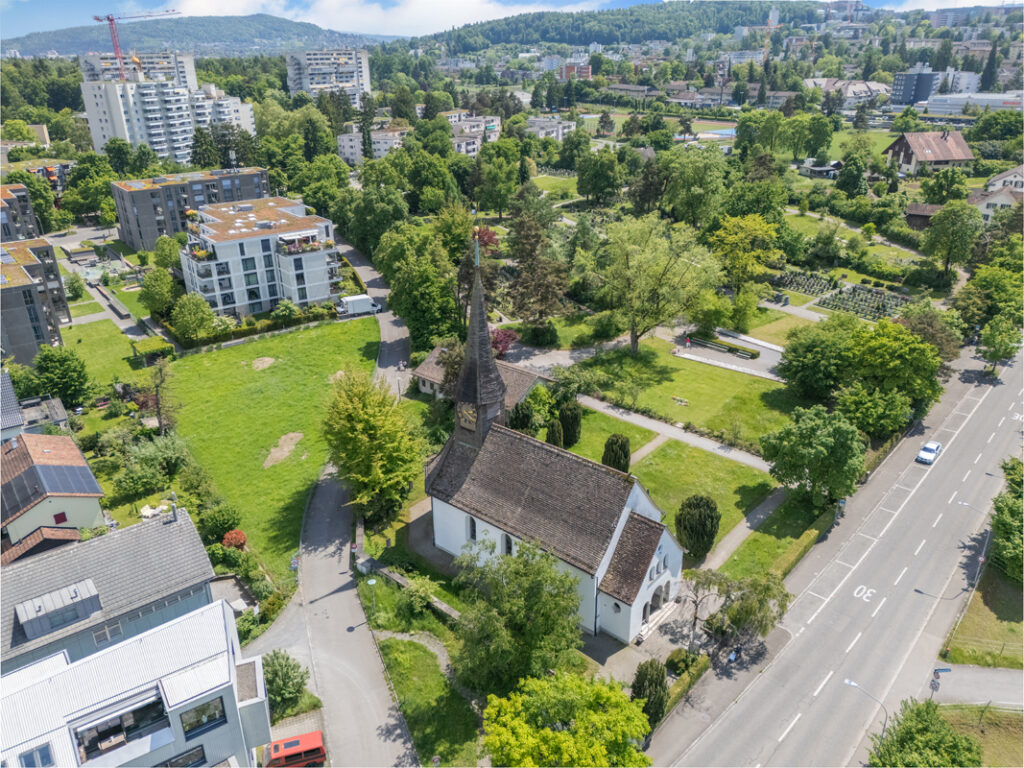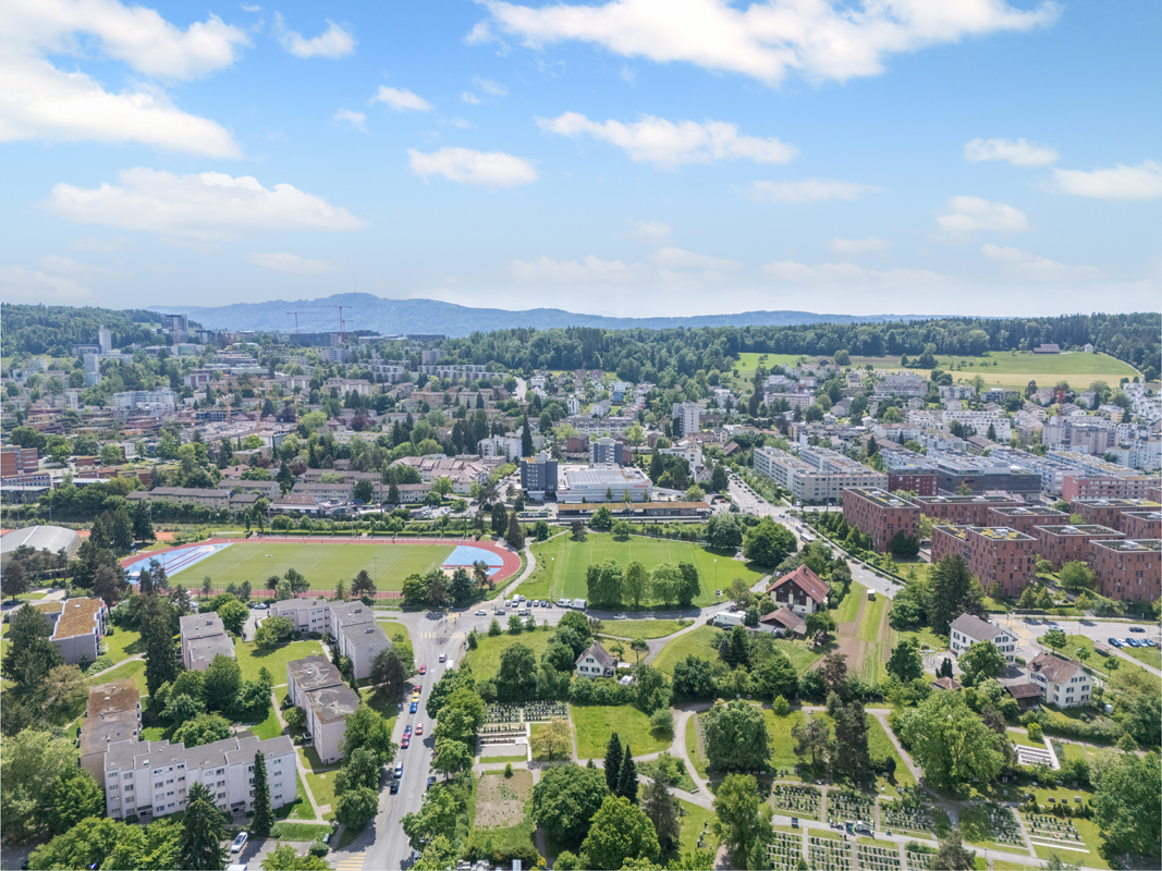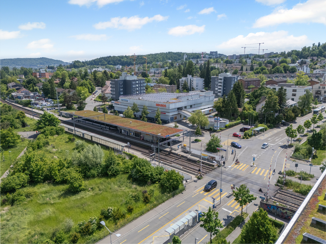 Die Lage ist bestens erschlossen: Mehrere Bushaltestellen sowie die nahe S-Bahn-Haltestelle mit direkter Verbindung zum Zürcher Hauptbahnhof befinden sich in unmittelbarer Nähe.