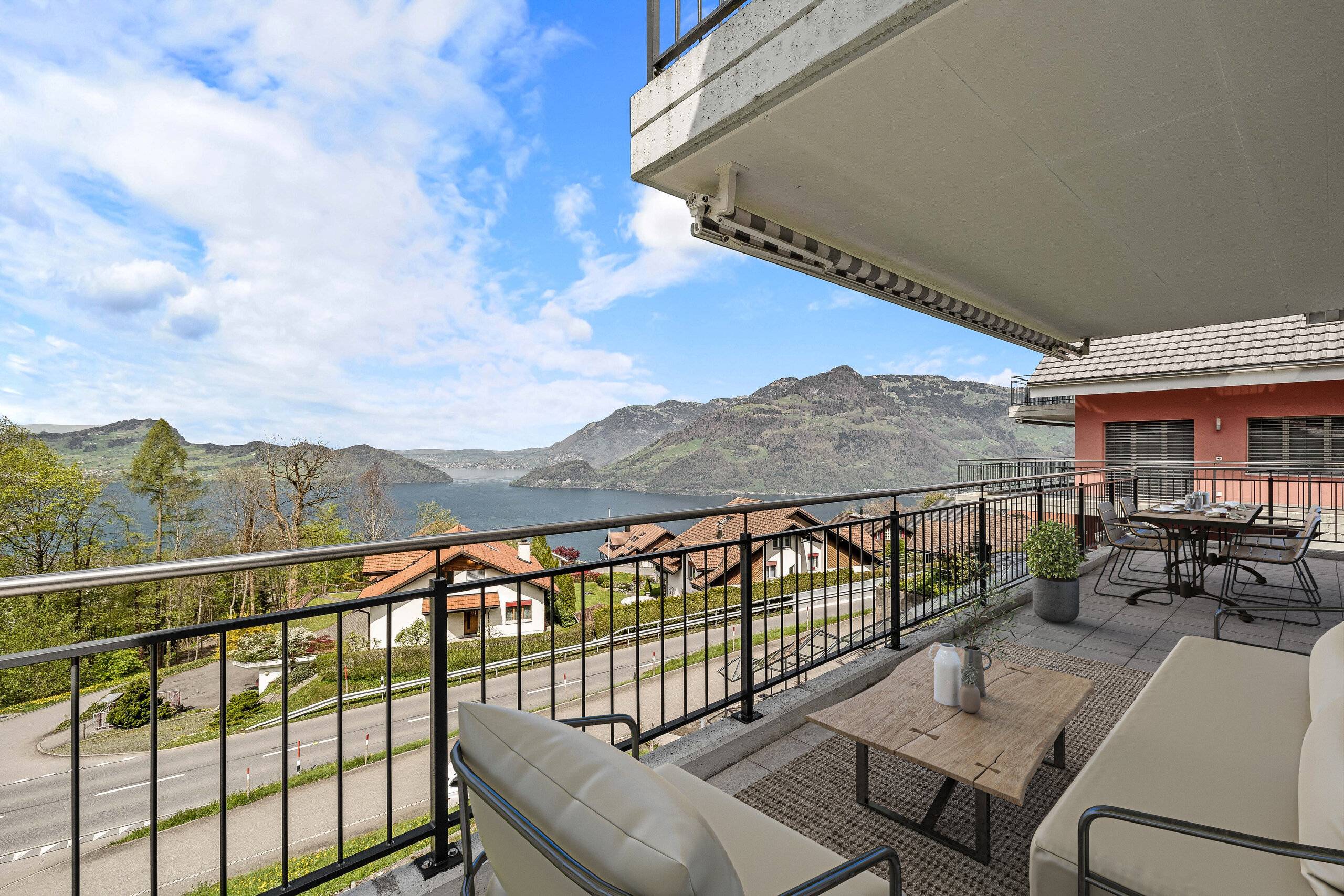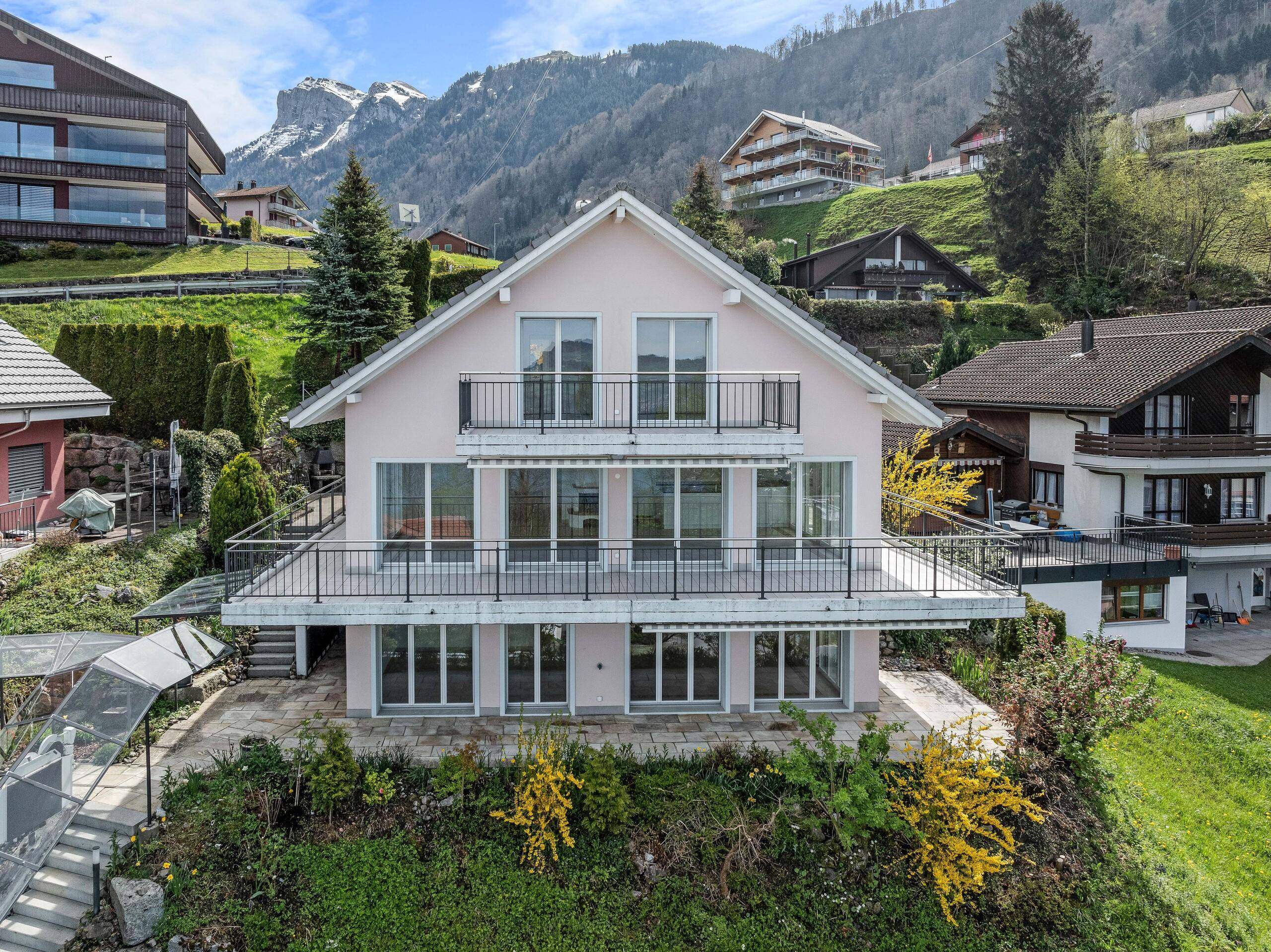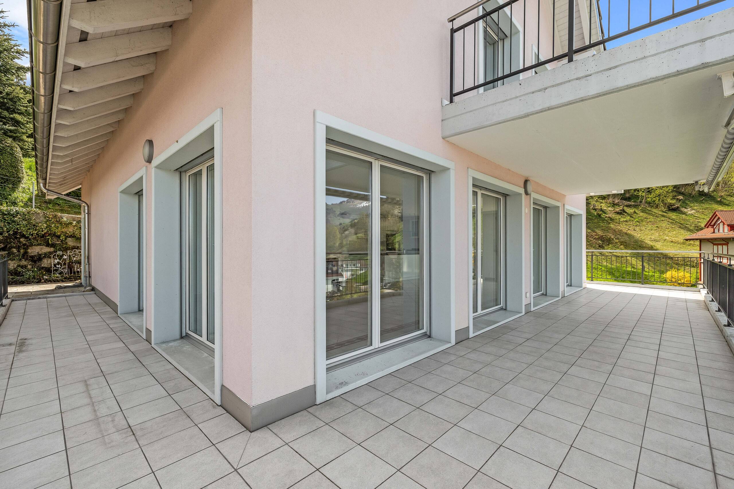 - Grosse Terrasse im Erd- und Obergeschoss mit Weitblick und ganztägiger Sonneneinstrahlung