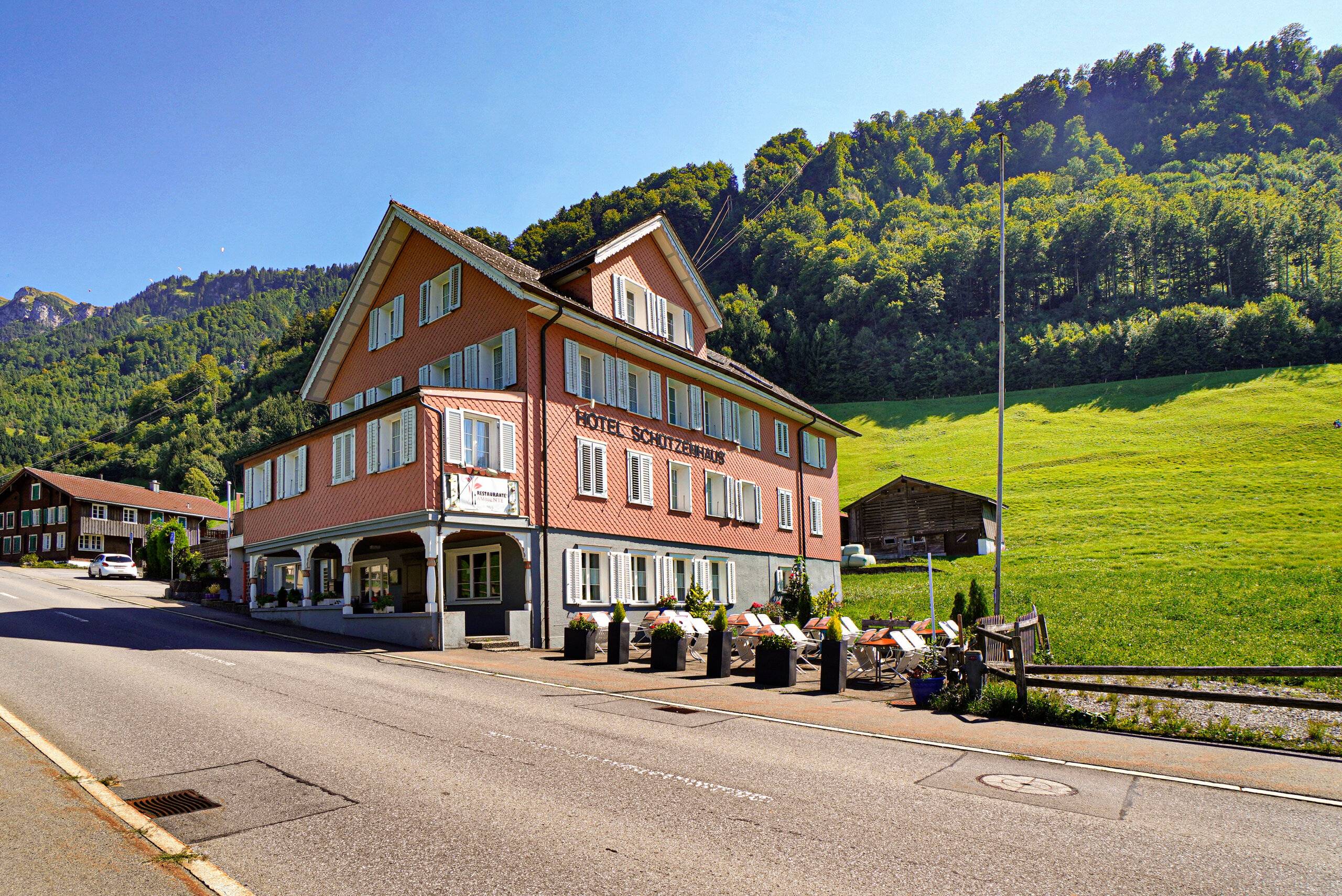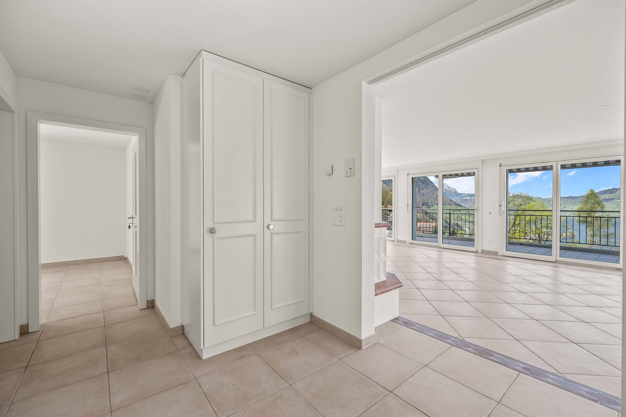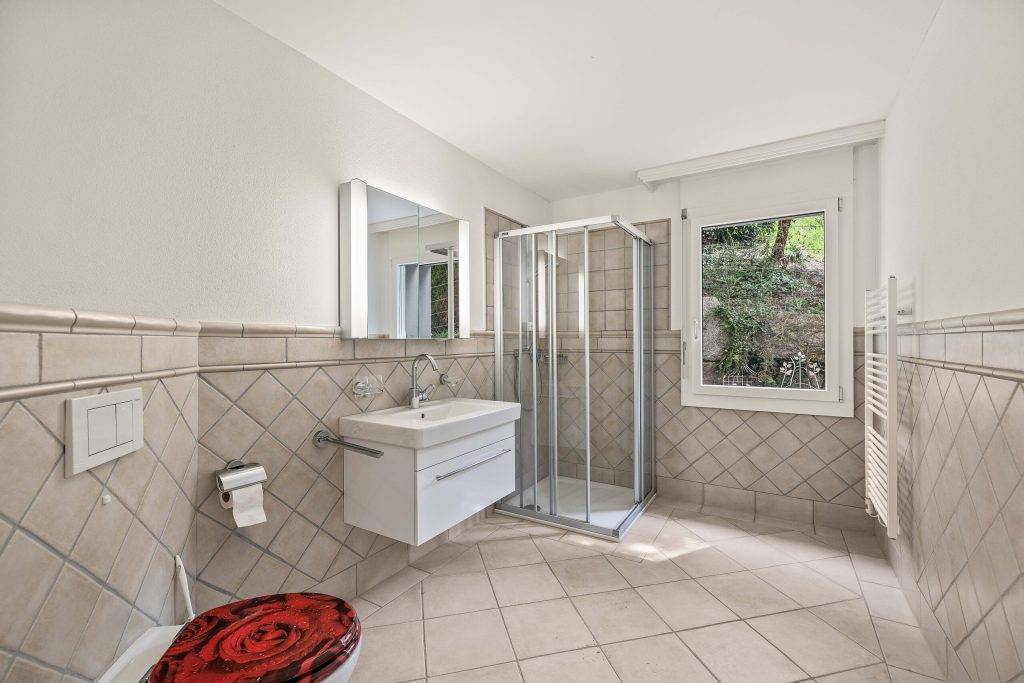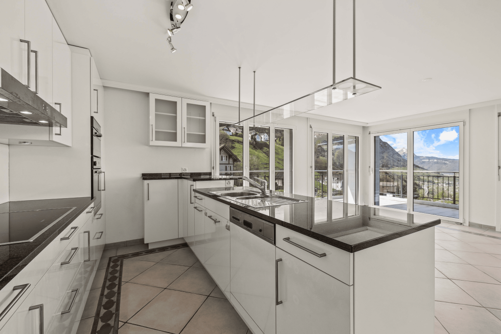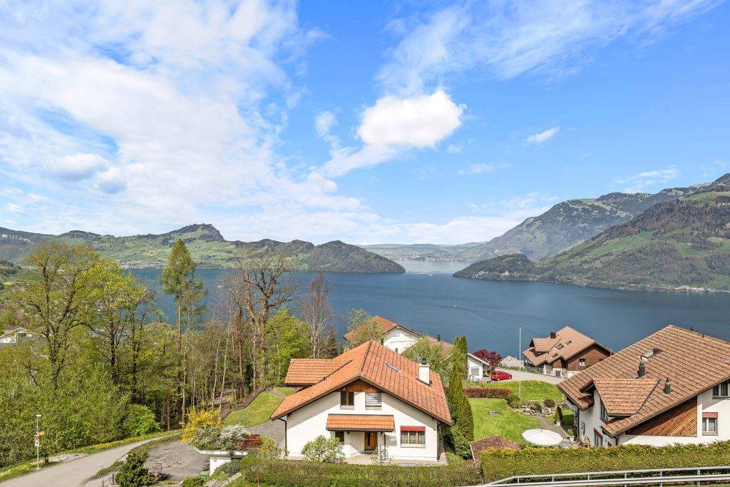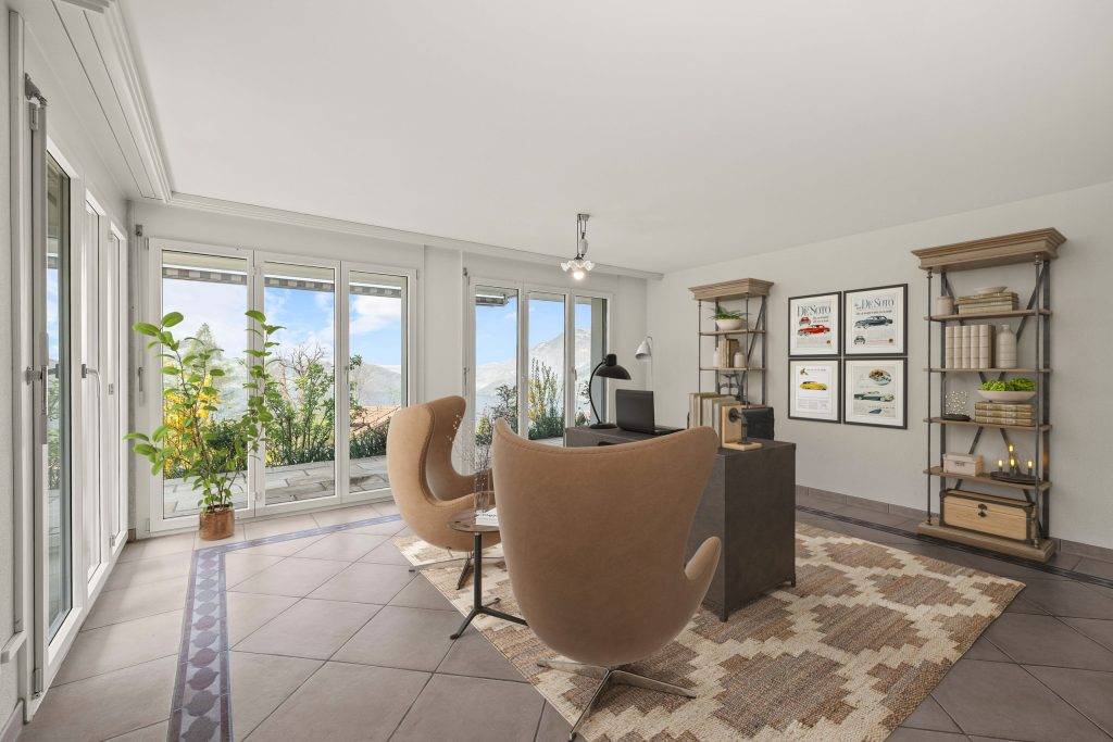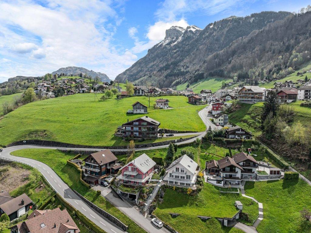 Grosse Terrassen im Erd- und Obergeschoss bieten Weitblick und ganztägige Sonneneinstrahlung und schaffen zusätzliche Freiräume für alle Generationen. Die Liegenschaft präsentiert sich in sehr gepflegtem Zustand und überzeugt auch funktional mit praktischen Nebenräumen wie Keller, Waschküche und Heizungsraum. Drei Einstellhallenplätze sind im Kaufpreis enthalten und sorgen für Komfort im Alltag.