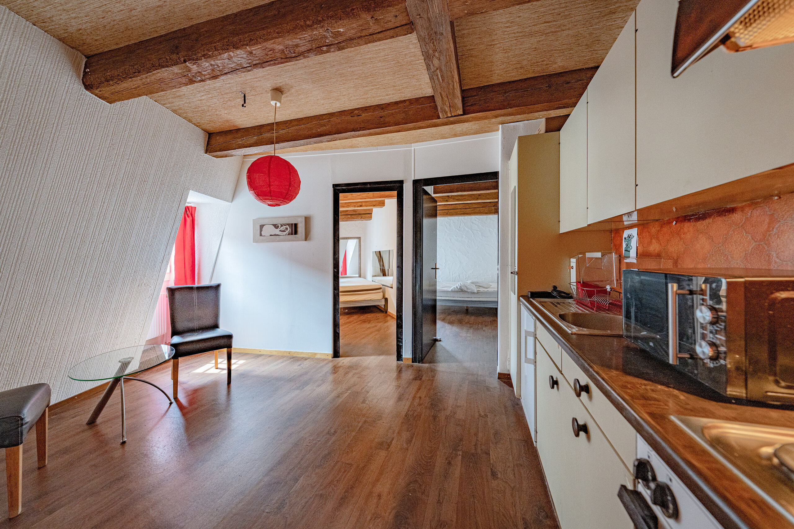 Für Investoren bestehen mehrere Optionen: Die heutige Nutzung kann mit einer attraktiven Bruttorendite von 6.12 % fortgeführt werden. Alternativ bietet sich eine steueroptimierte Sanierung an – entweder mit Neupositionierung der gesamten Liegenschaft oder in Kombination von Selbstnutzung und Mietzinsertrag.