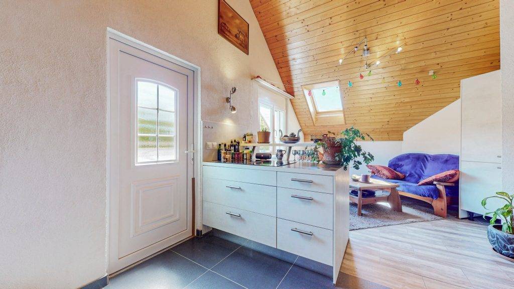 Der Innenbereich verteilt sich grosszügig über drei Etagen und bietet insgesamt drei Badezimmer. Im Untergeschoss wartet ein Highlight: eine Badewanne mit Jacuzzi-Funktion – perfekt, wenn man sich etwas Wellness gönnen will. Die Haustechnik wurde modernisiert, unter anderem mit einer Wärmepumpe und einer Photovoltaikanlage, die Strom ins Netz zurückspeist.