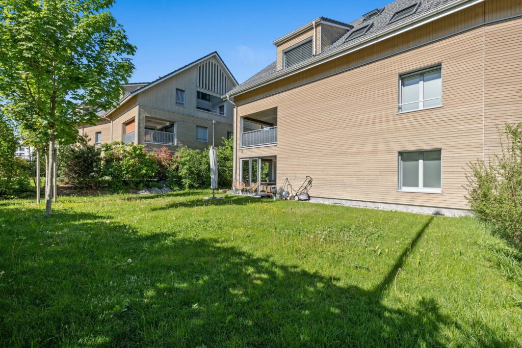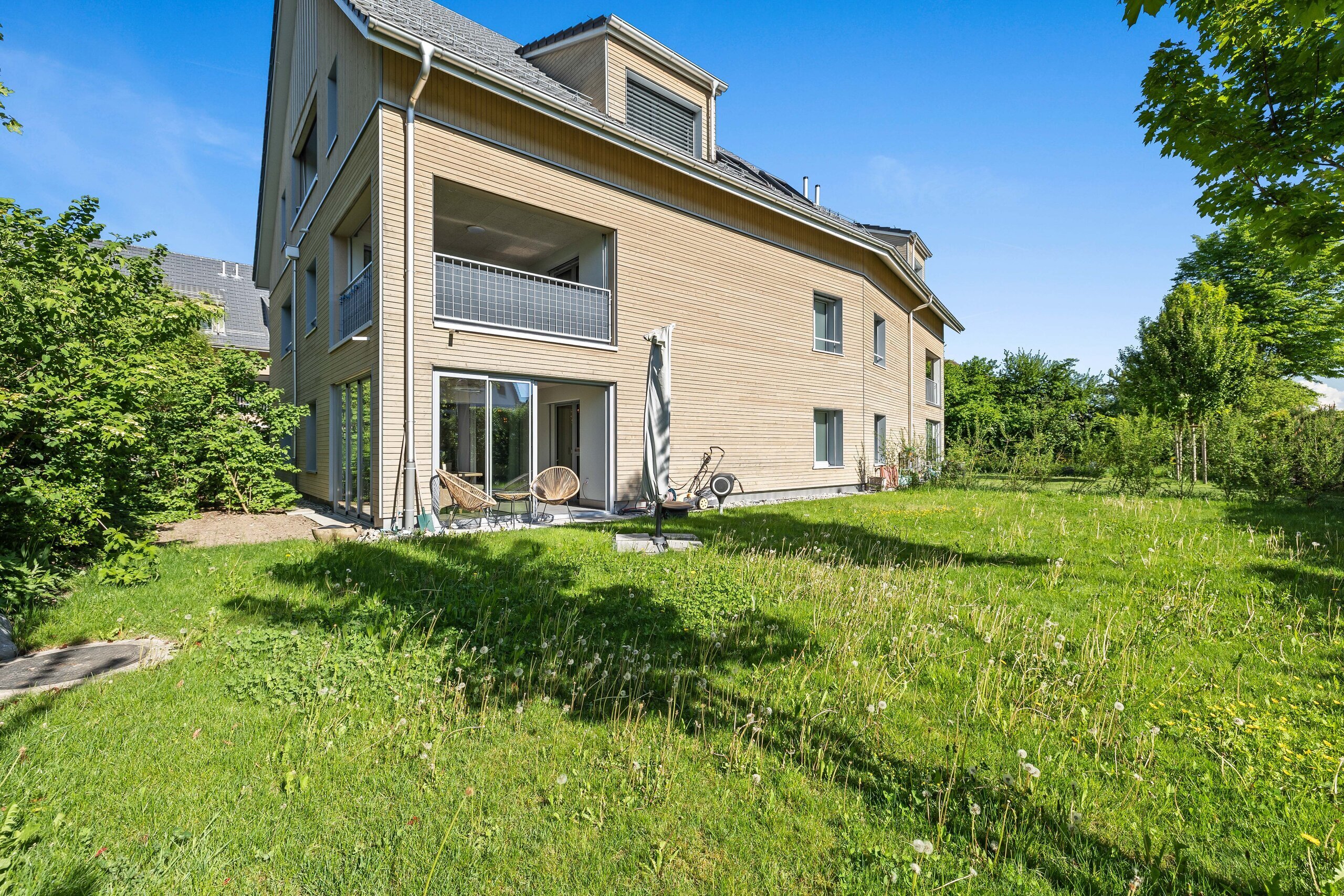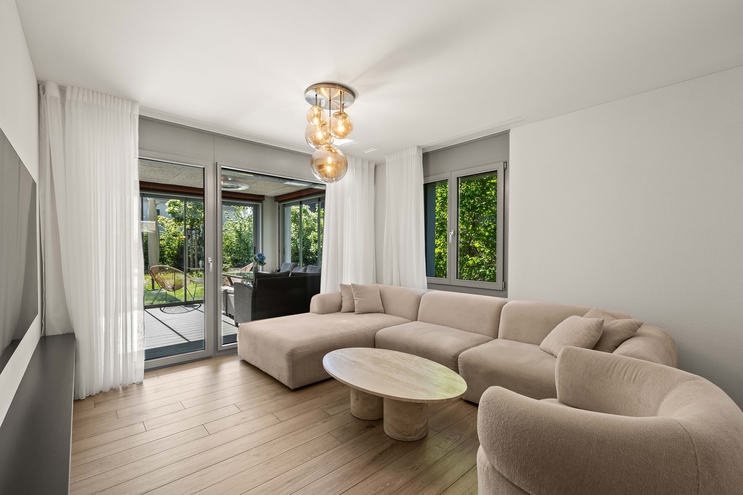 Ein verglaster Wintergarten schafft zusätzlichen Raum und bietet sowohl im Sommer als auch im Winter ein angenehmes Wohngefühl. Der grosszügige Gartenbereich im Sondernutzungsrecht lädt zum Entspannen und Geniessen ein.