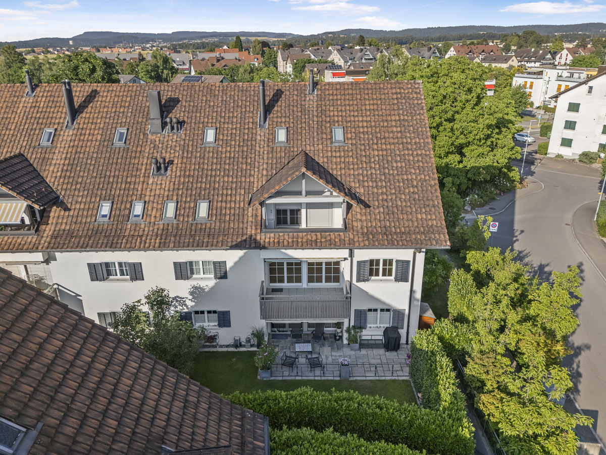 Praktische Nebenräume wie ein Keller ergänzen das Platzangebot. Ein Einstellhallenplatz kann bei Bedarf dazu erworben werden. Die Lage überzeugt durch beste Anbindung: Mit dem öffentlichen Verkehr erreichen Sie Zürich schnell, und der Flughafen ist in nur rund 15 Minuten erreichbar.