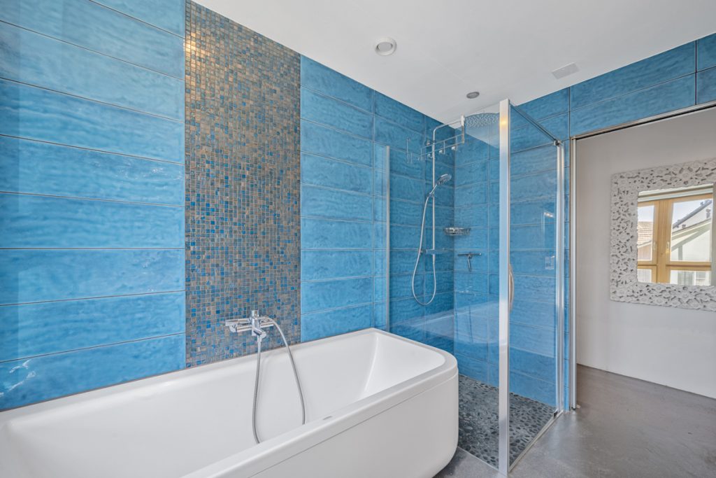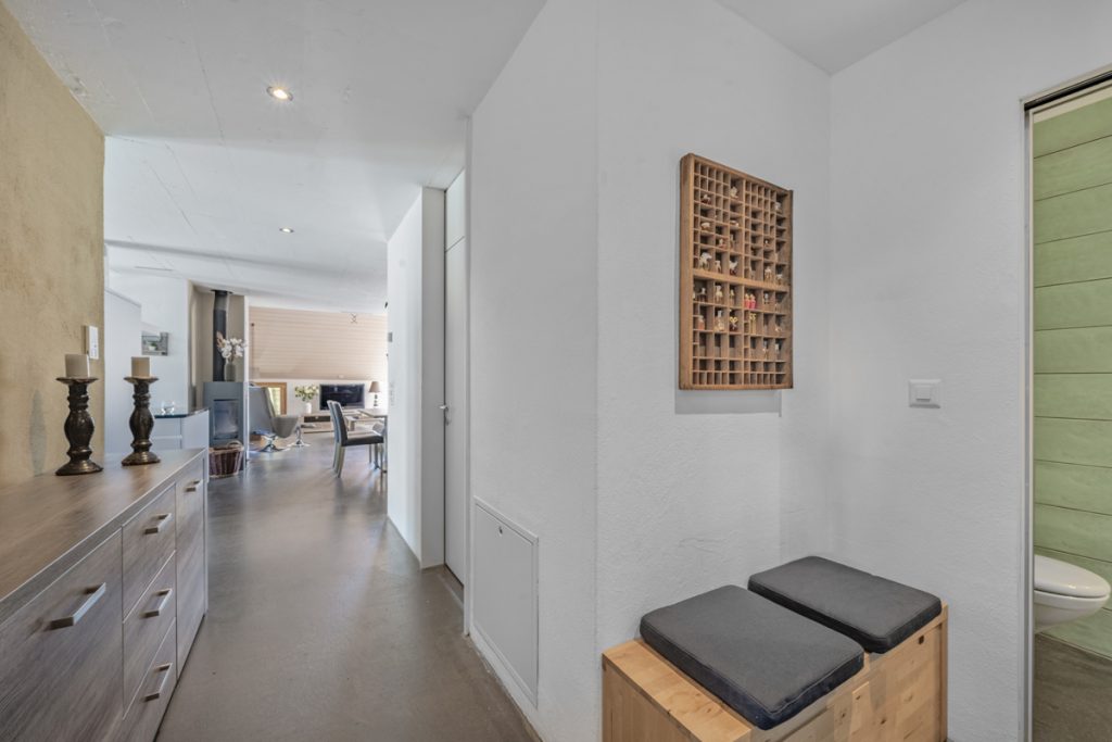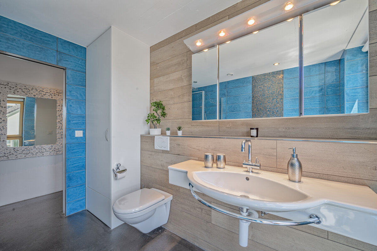 Die Nassbereiche wurden 2018 erneuert und präsentieren sich hochwertig und zeitlos. Neben einem Bad/Dusche/WC steht eine separate Gästetoilette zur Verfügung. Praktische Nebenräume wie der Estrich, eine Waschküche in der Wohnung sowie ein Keller im Nebengebäude sorgen für zusätzlichen Komfort und Stauraum.