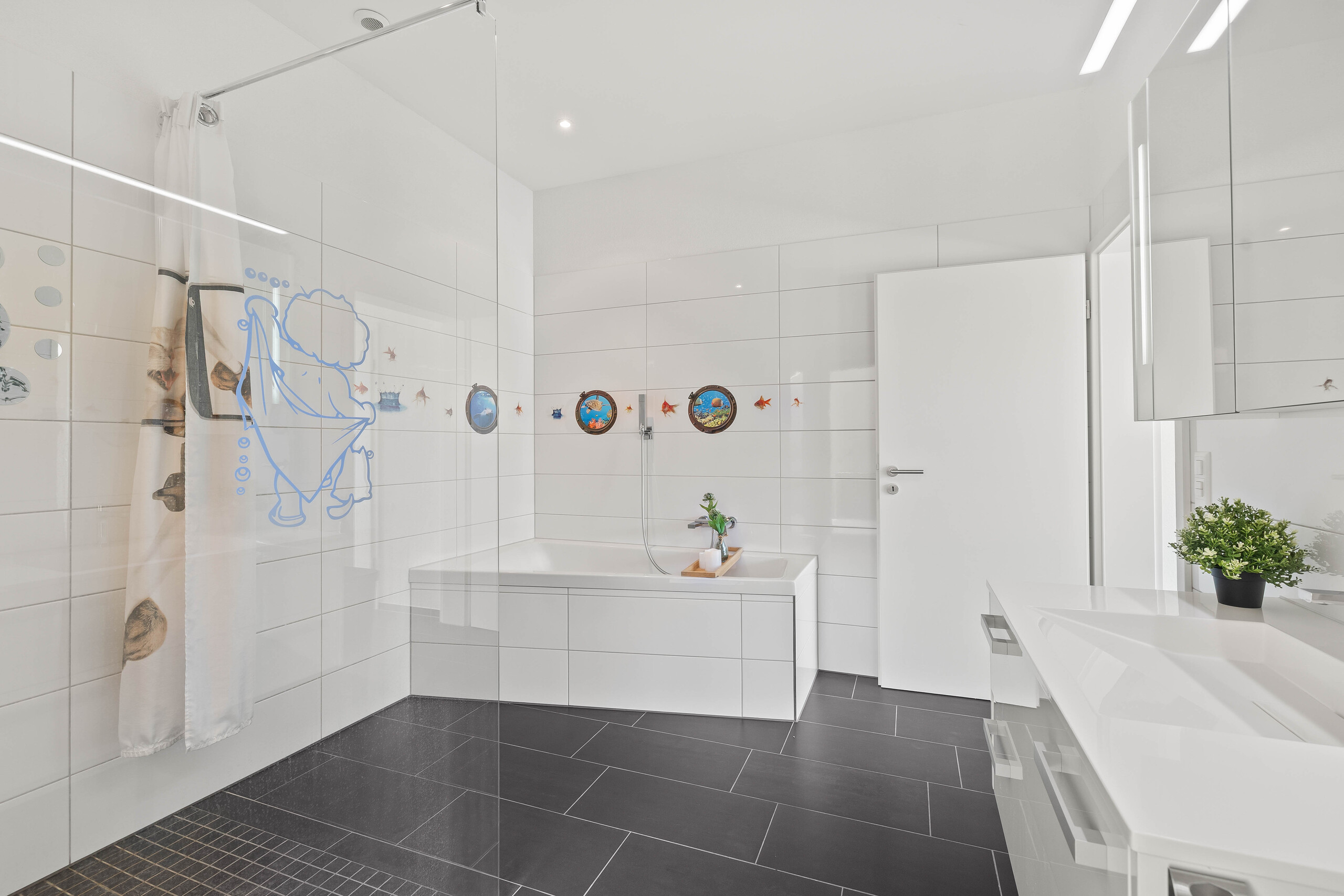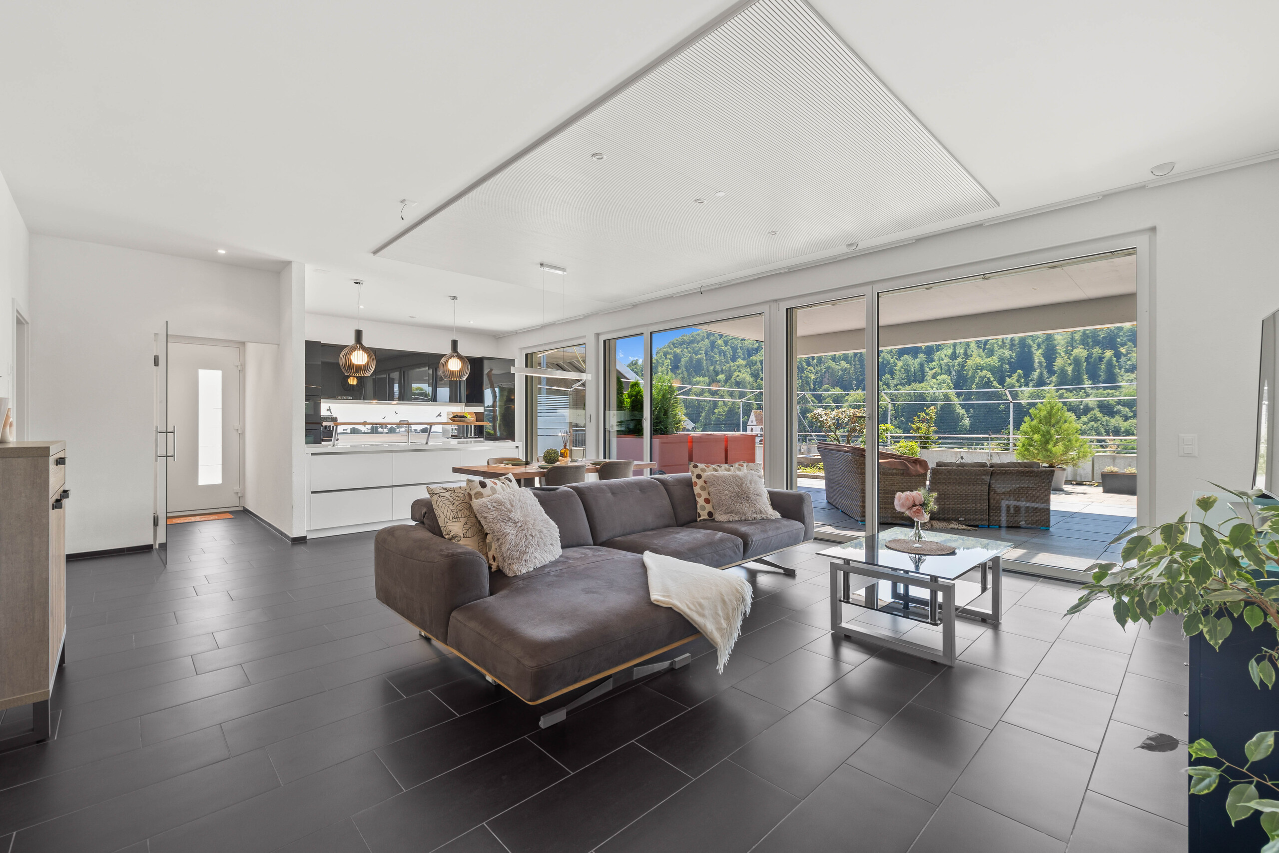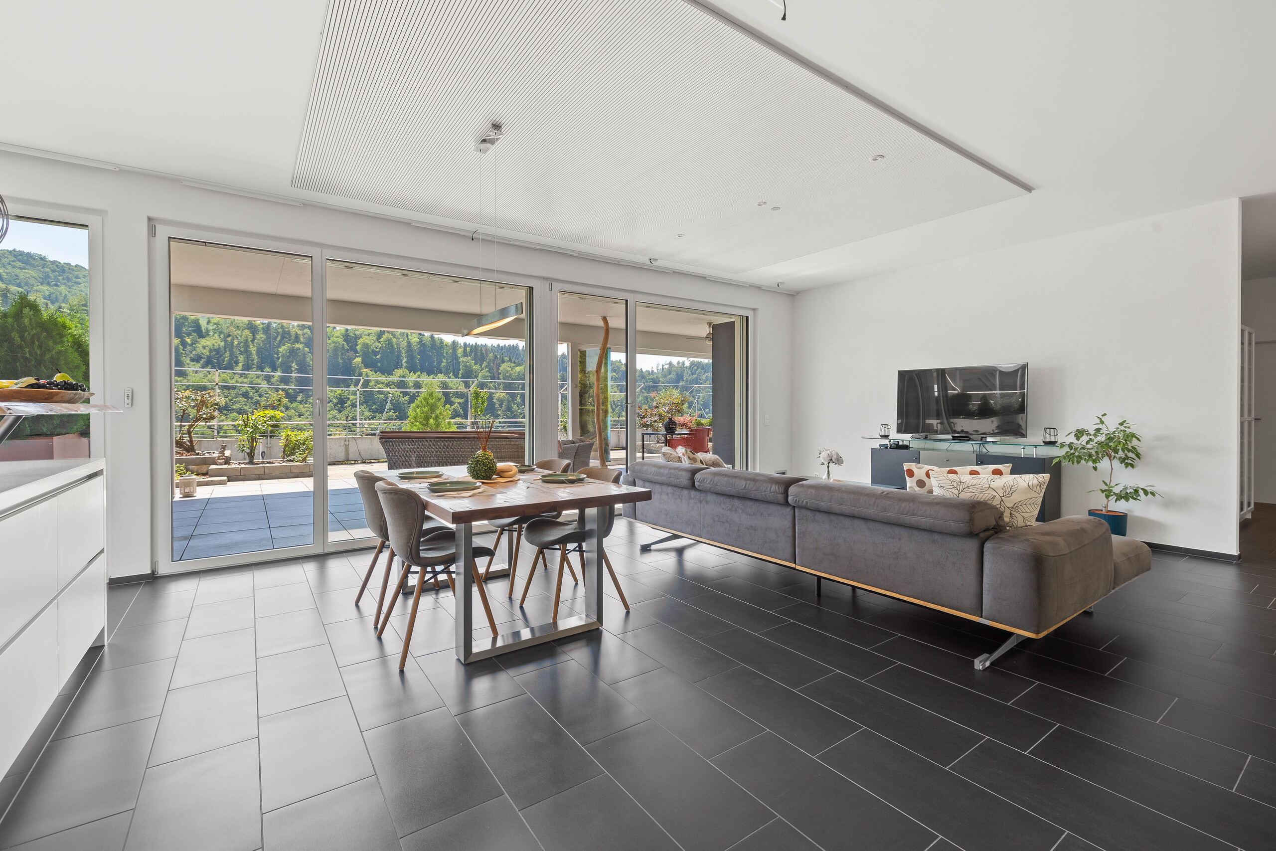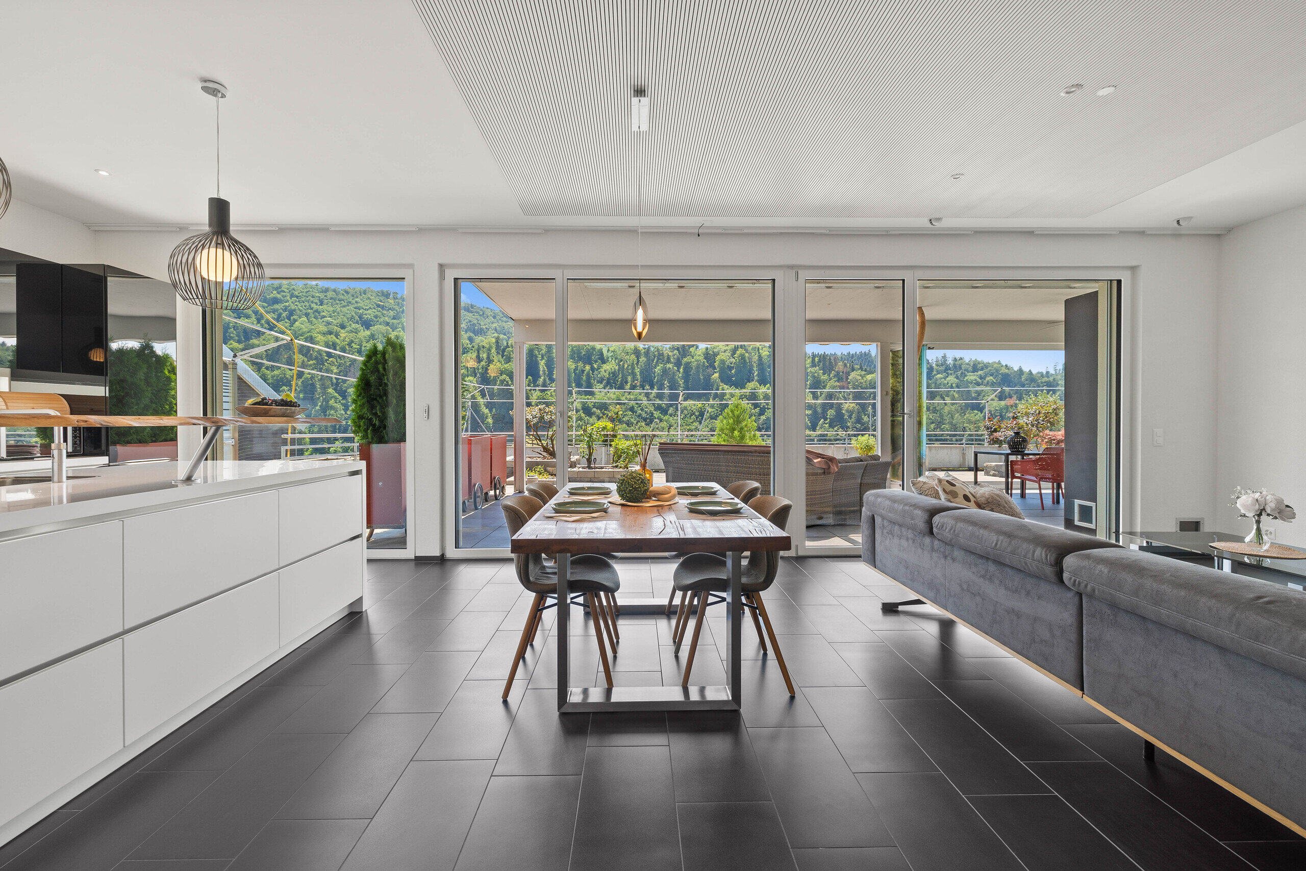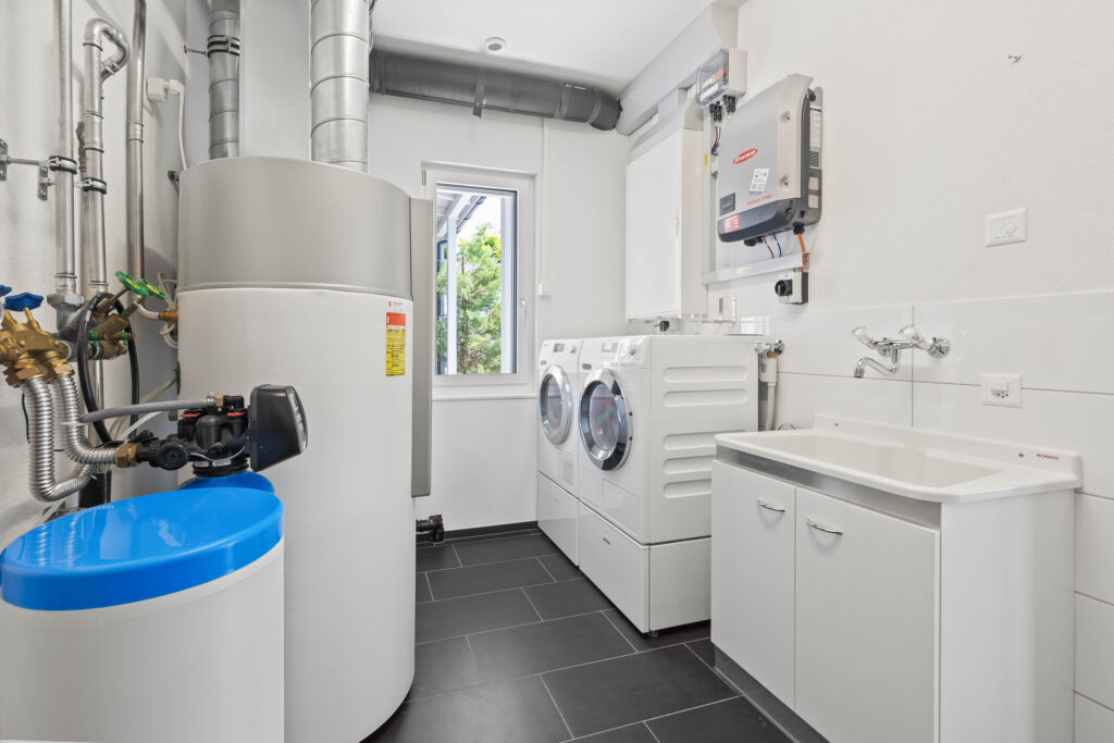 Komfortlüftung und Enthärtungsanlage sorgen für ein angenehmes Raumklima und verlängern die Lebensdauer der Haushaltsgeräte. Dank Photovoltaikanlage und Fernwärme profitieren Sie zudem von tiefen Betriebskosten und nachhaltiger Energieversorgung.