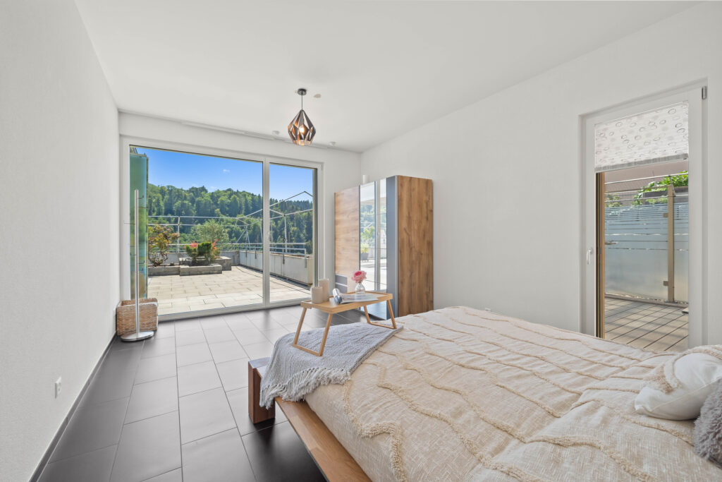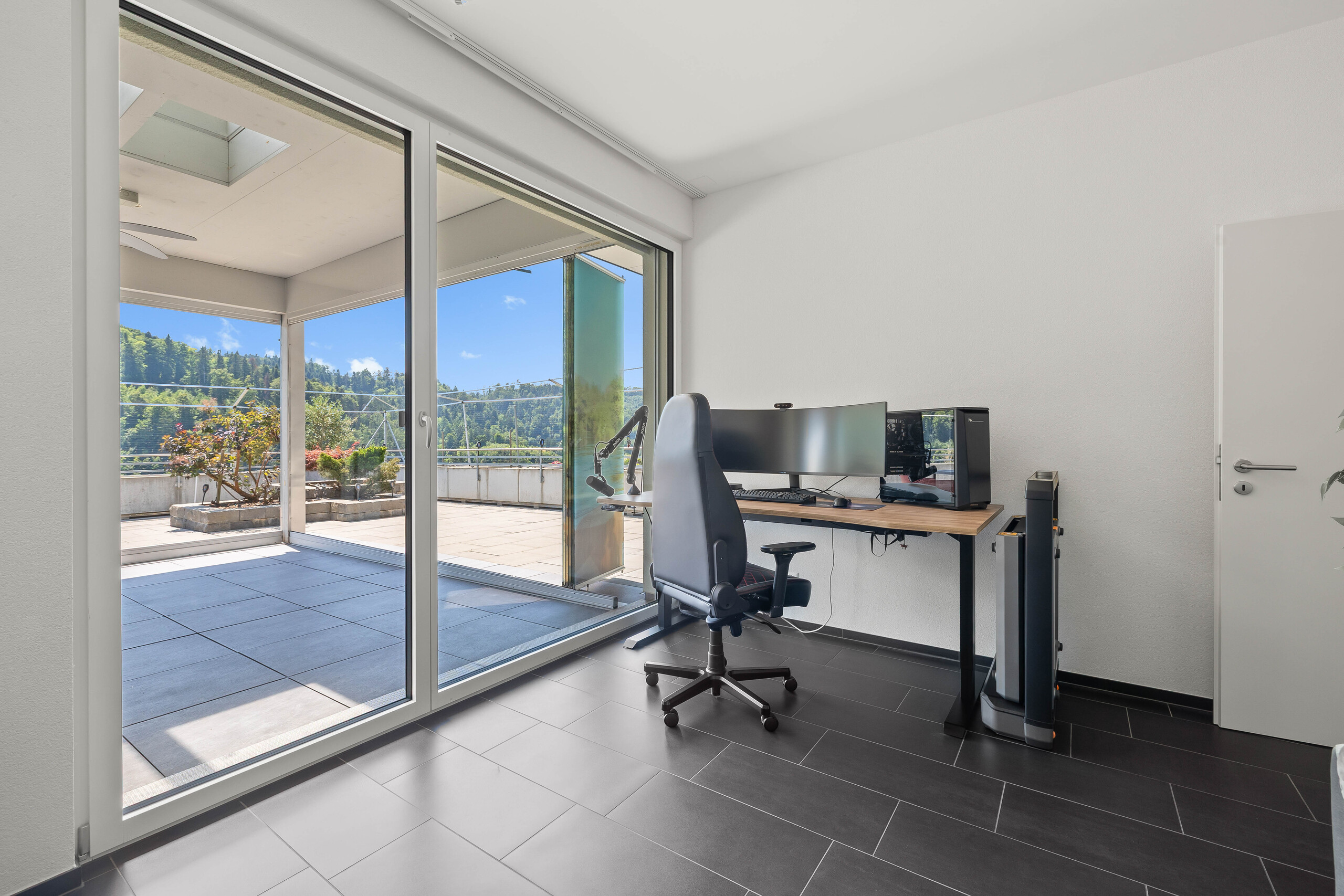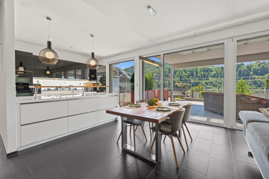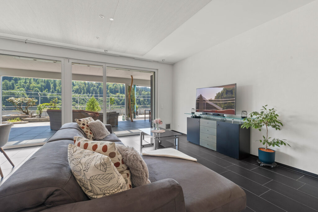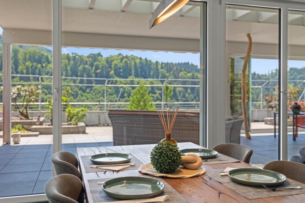 Ein besonderes Highlight ist die 183 m² grosse Terrassenfläche mit traumhafter Aussicht über das Mettauertal. Ein zusätzlicher Grillplatz macht sie zum perfekten Ort für entspannte Stunden und gesellige Abende.
