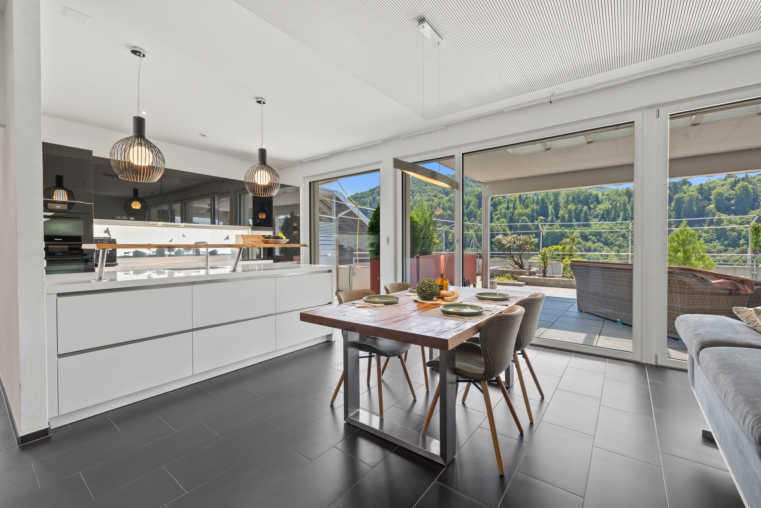 Der helle Wohn- und Essbereich öffnet sich direkt zur überdachten Terrasse und verbindet Innen- und Aussenraum harmonisch. Die offene Küche mit hochwertigen Geräten und reichlich Stauraum erfüllt höchste Ansprüche an Funktionalität und Design. Mehrere flexibel nutzbare Zimmer, teils mit direktem Terrassenzugang und Badezimmer en suite, bieten vielfältige Wohnideen. Zwei stilvoll gestaltete Nassbereiche – ein Bad/Dusche/WC und eine separate Dusche/WC – unterstreichen den hohen Ausbaustandard.