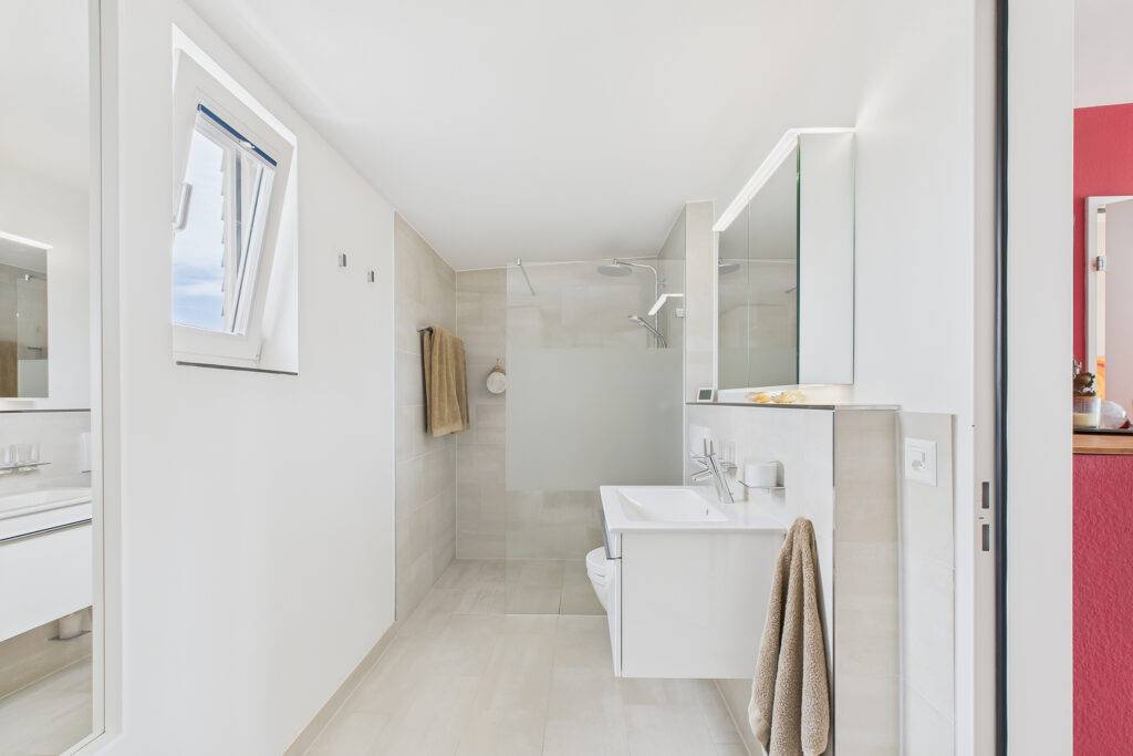 • Moderne Nassbereiche: Bad/WC, Dusche/WC, separates Gäste-WC und separate Dusche