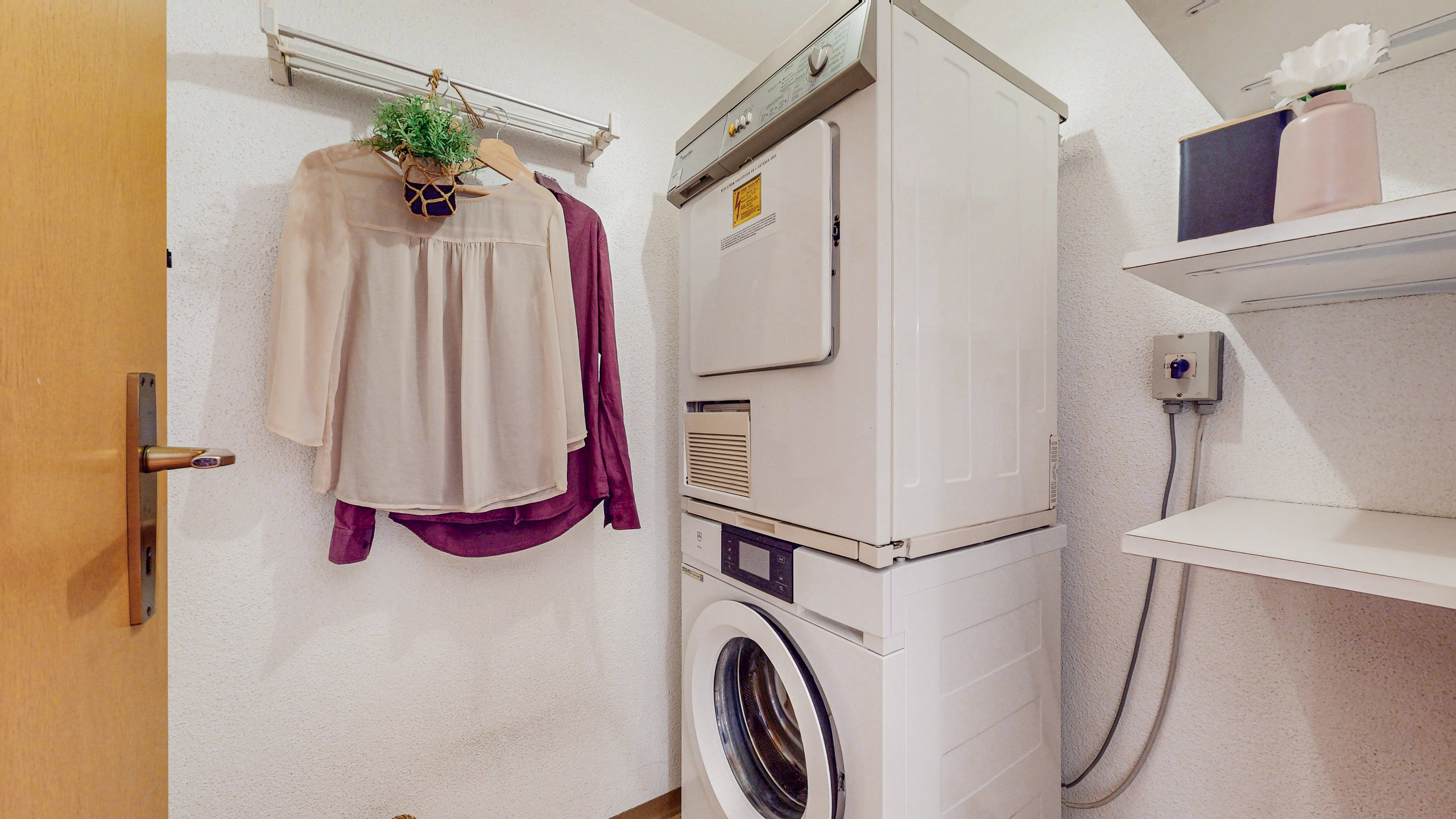 Ein besonderes Highlight ist der gedeckte Gartensitzplatz mit Zugang zur Grünfläche, der zum Verweilen im Freien einlädt. Ergänzt wird das Angebot durch einen sonnigen, überdachten Balkon. Praktisch ist auch die eigene Waschküche innerhalb der Wohnung, die den Alltag erleichtert.