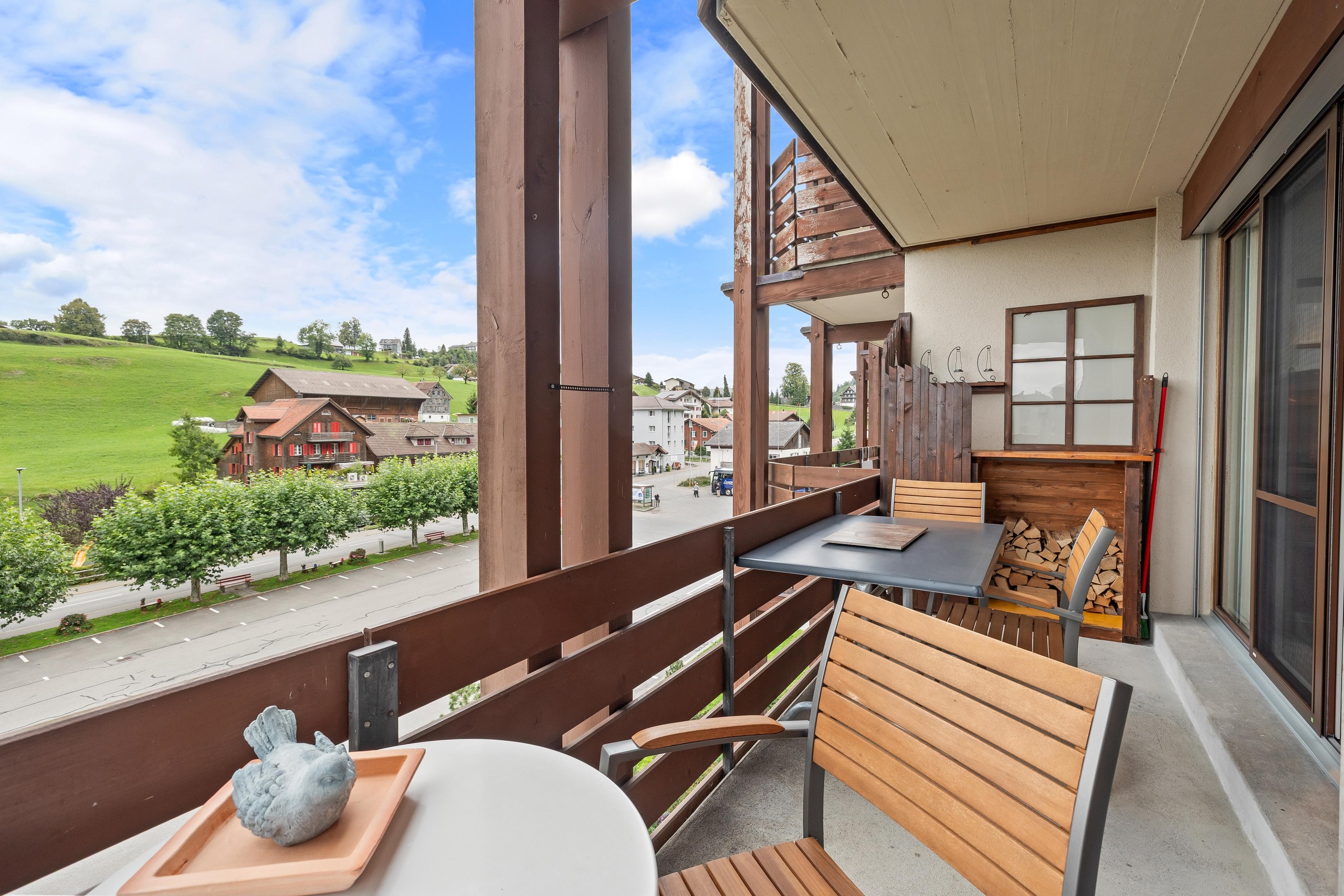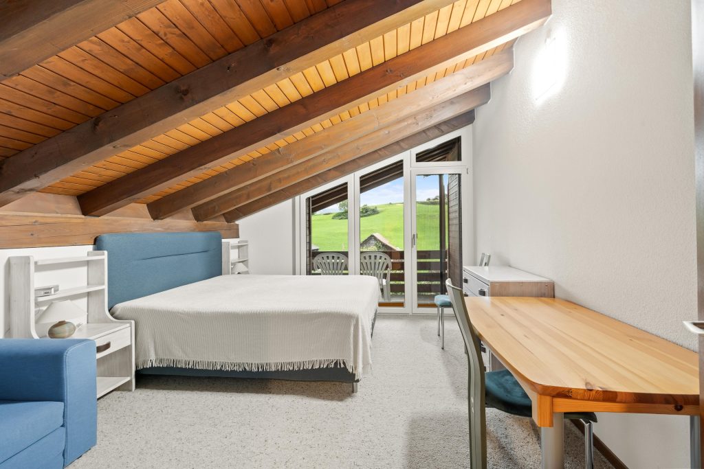 Das helle Wohnzimmer mit gemütlichem Cheminée lädt zu entspannten Stunden ein, während die Dachschräge im Schlafgeschoss ein besonders behagliches Wohngefühl schafft. Die neuwertige Küche ist ideal dimensioniert und überzeugt mit Funktionalität und Stil. Auf jedem Geschoss steht ein Balkon zur Verfügung, von dem aus Sie die herrliche Fernsicht geniessen können.
