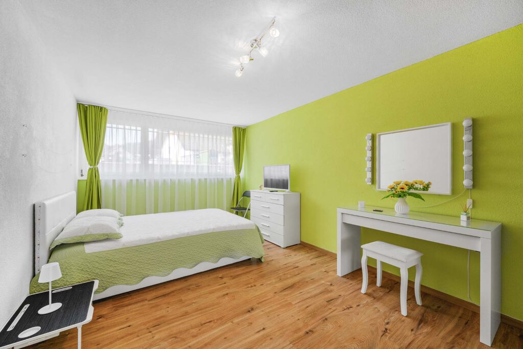 Die grosszügigen Zimmer eröffnen vielseitige Nutzungsmöglichkeiten – vom Schlafzimmer über Homeoffice bis hin zum Gästezimmer. Im Aussenbereich erwarten Sie eine sonnige Terrasse mit unverbaubarem Weitblick auf die Berge sowie ein gepflegter Garten im Erdgeschoss mit Pergola.