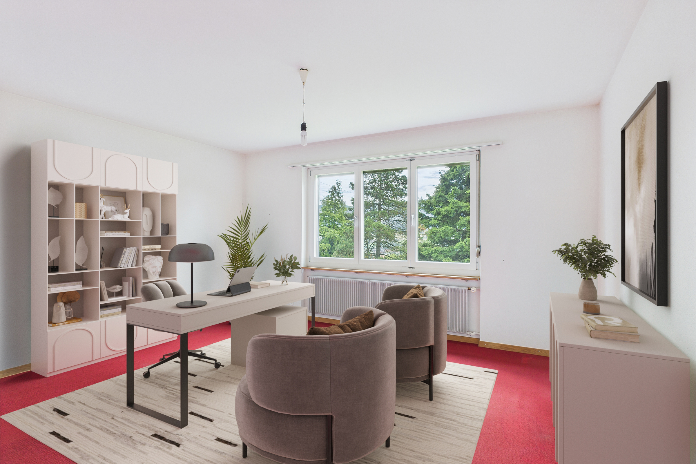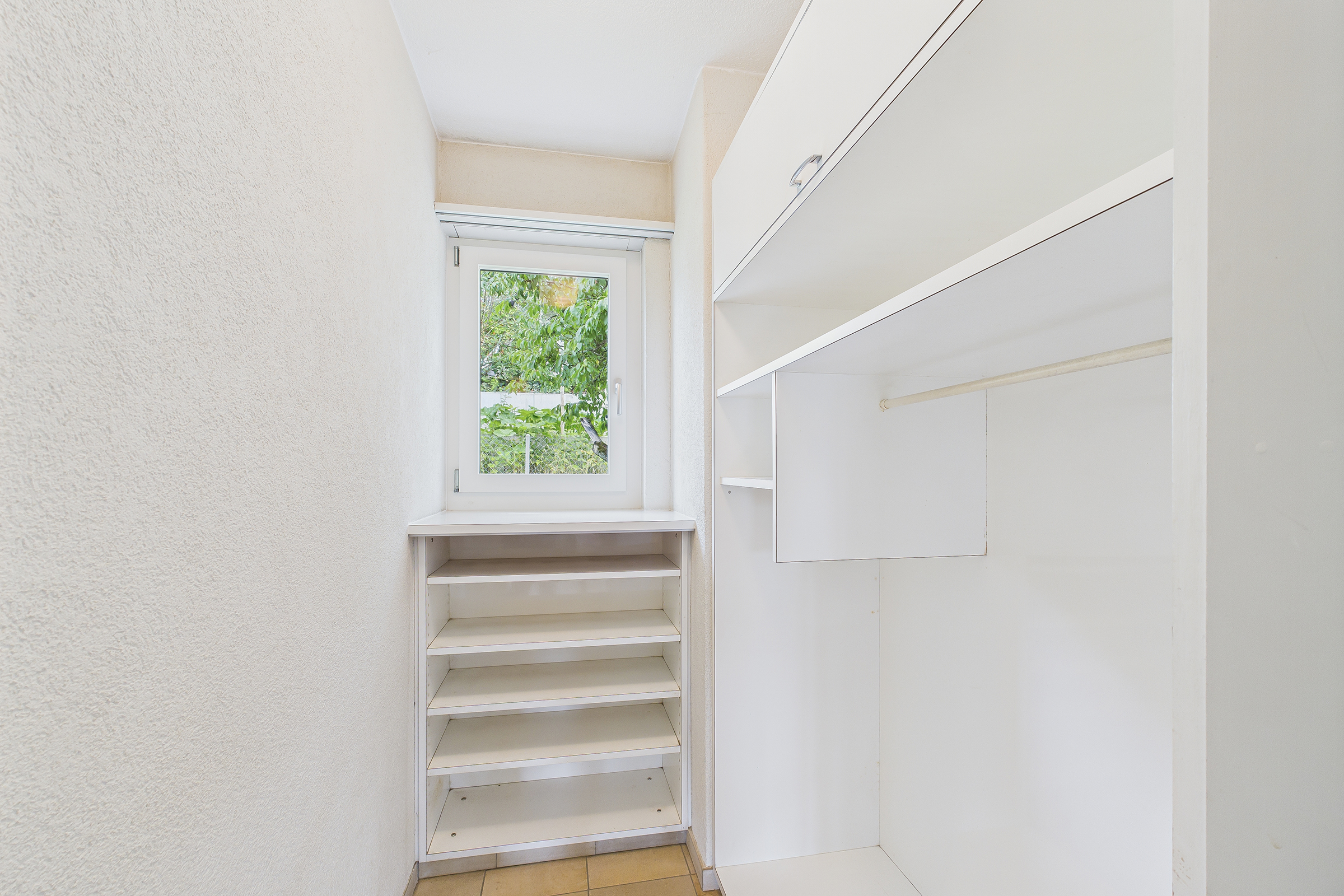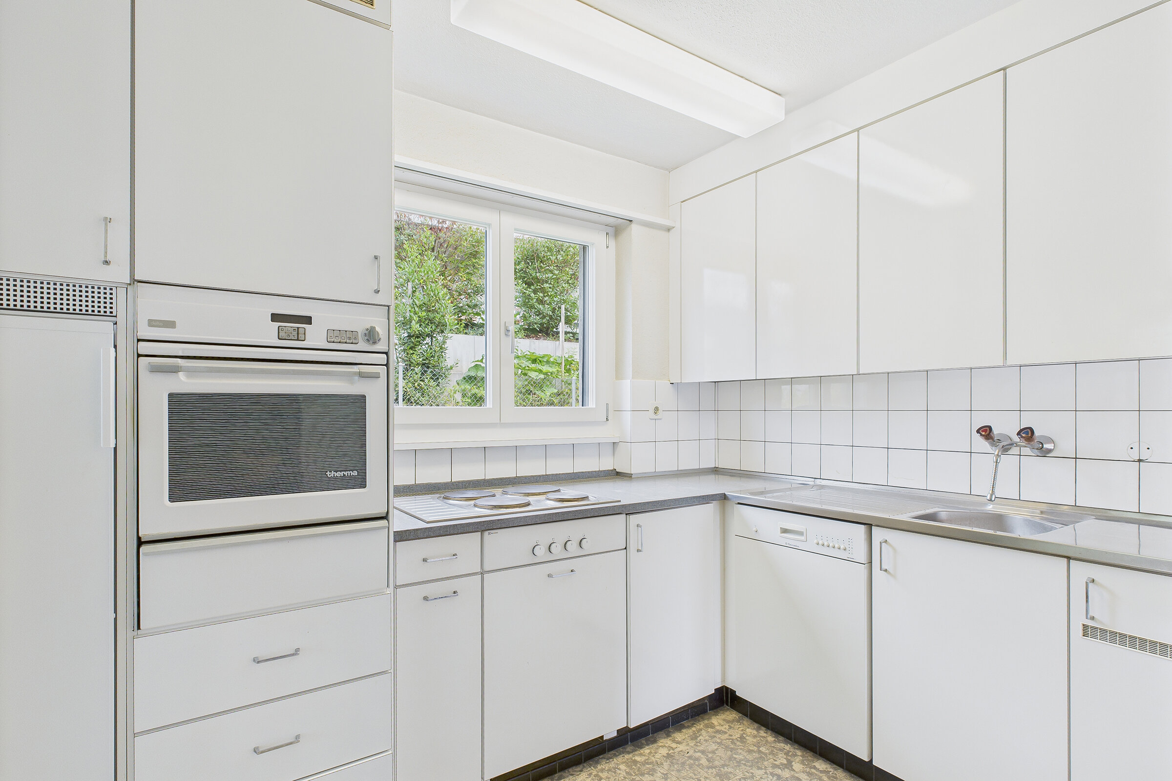 Die Wohnfläche von 135 m² verteilt sich auf 5.5 Zimmer und zwei Etagen. Das Haus verfügt über eine geräumige Küche, ein Wohnzimmer mit Parkettboden sowie zwei Nasszonen – ein Bad/WC und eine separate Dusche/WC. Eine grosse, gedeckte Terrasse erweitert den Wohnbereich ins Freie und schafft zusätzlichen Raum für gemütliche Stunden. Der grosszügige Garten eröffnet vielfältige Nutzungsmöglichkeiten und rundet das attraktive Angebot ab.