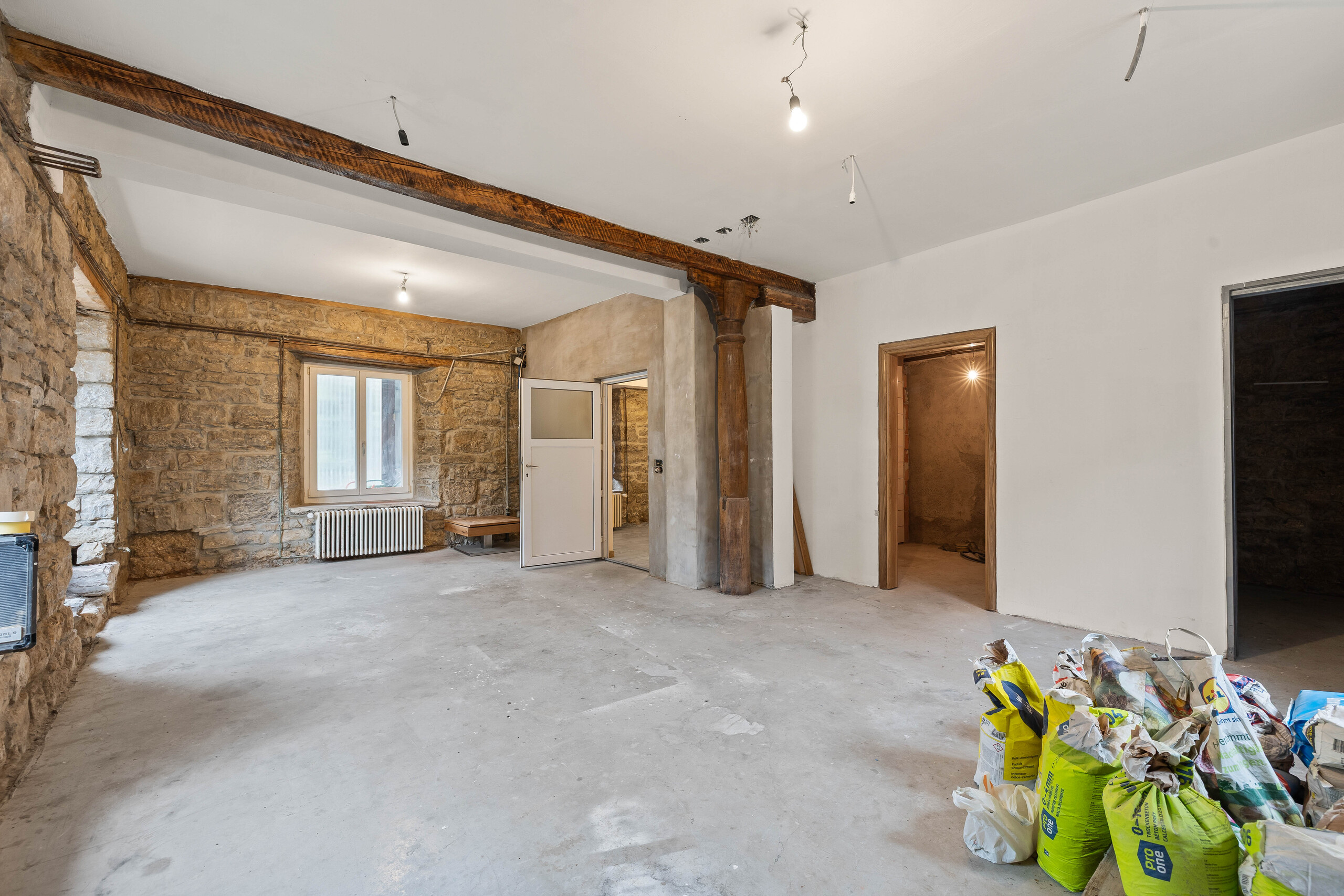 • Zustand: Die Sanierung im Obergeschoss ist abgeschlossen, das Erd- und Dachgeschoss befinden sich zu grossen Teilen im Rohbau, ideal um die eigenen Ideen zu verwirklichen