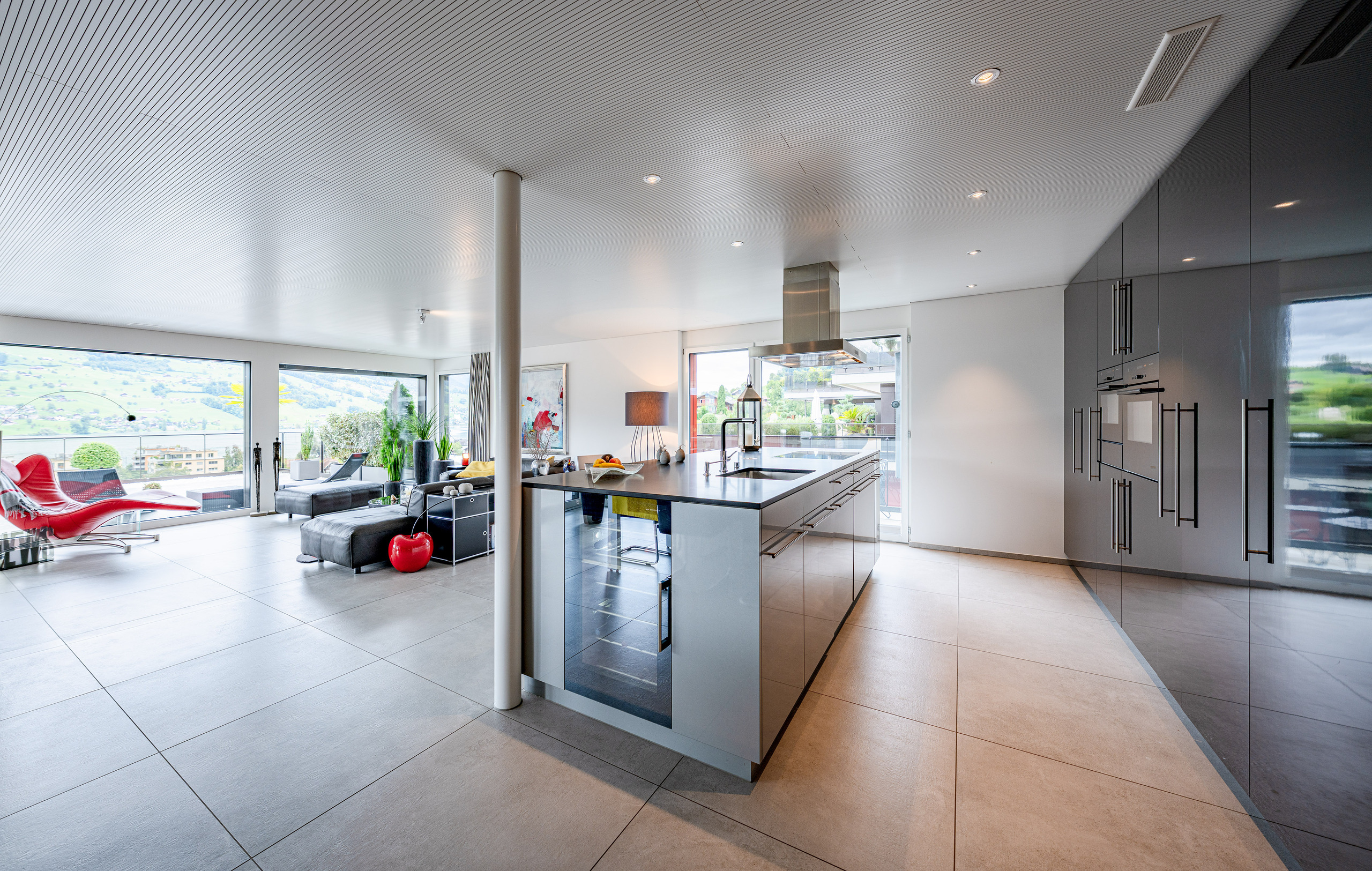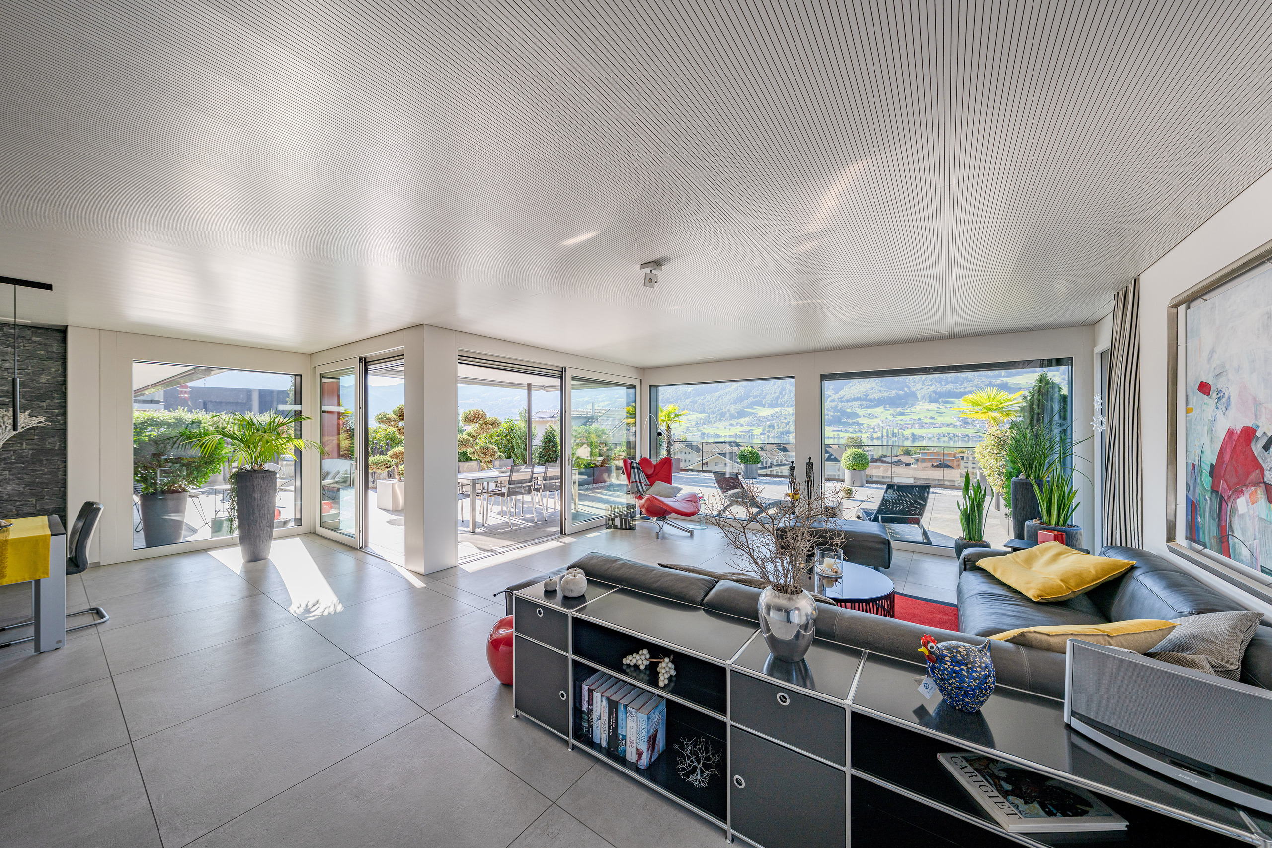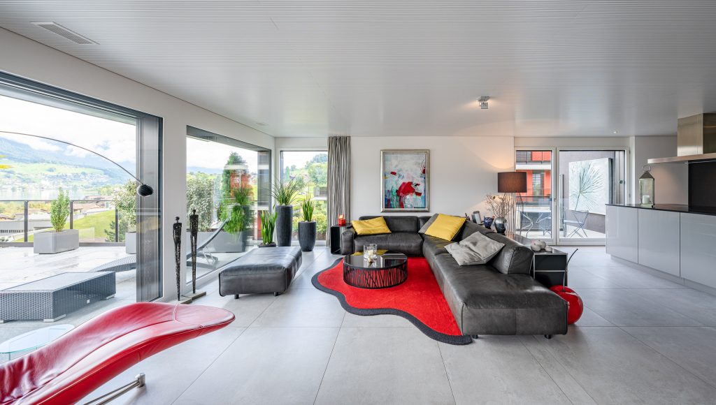 - Sehr grosszügiger, heller und offener Wohn- und Essbereich mit riesigen Glasfronten
