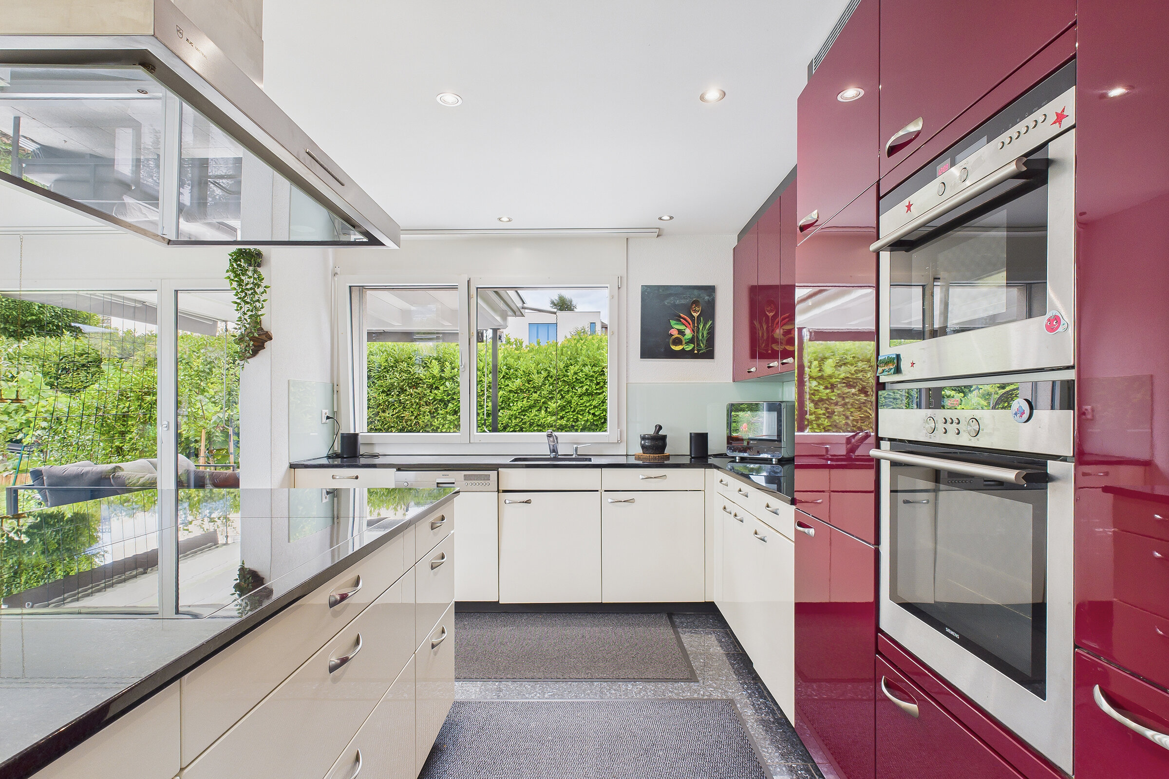 • Aussenbereich: Gedeckte Terrasse im OG, ein grosser gedeckter Sitzplatz im EG, dazu ein pflegeleichter Rasen und ein Gemüsegarten