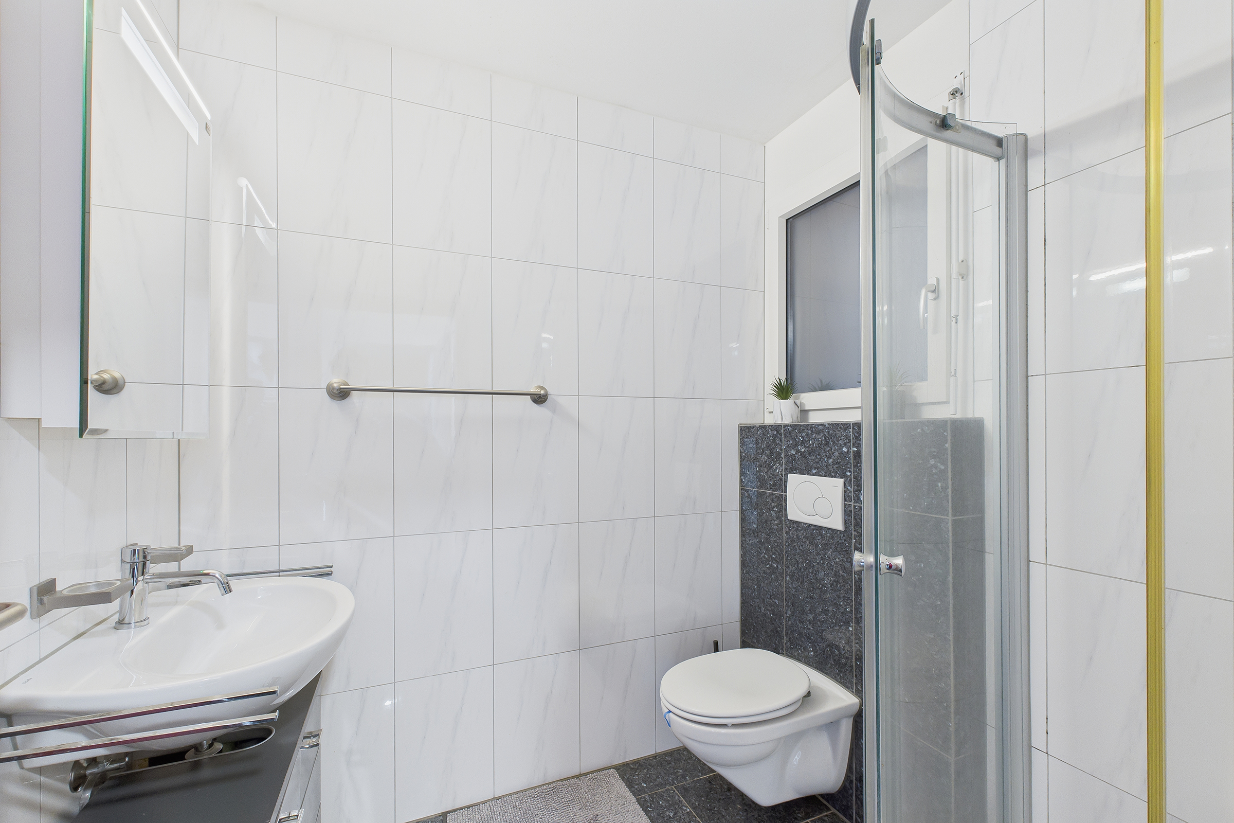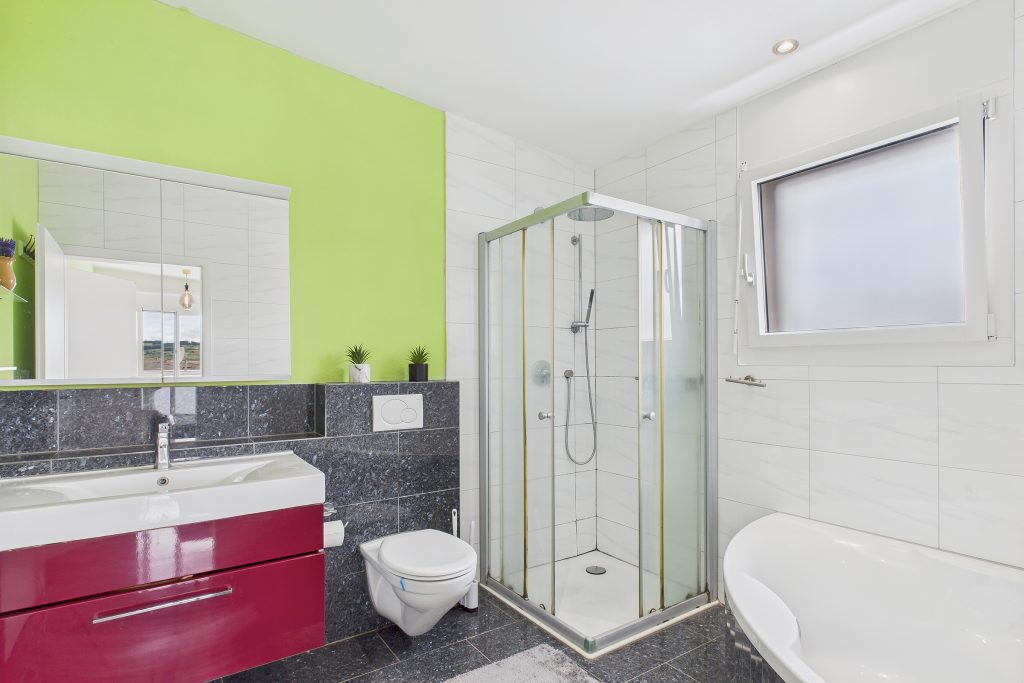 • Drei Nassbereiche: Familienbad mit Bad/Dusche WC und 2x Dusche/WC