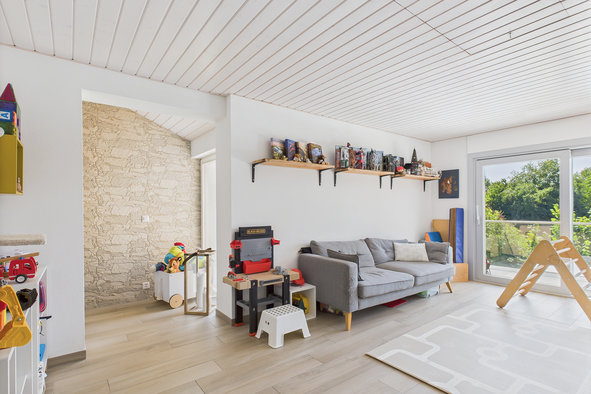 Auf 163 m² Wohnfläche verteilt über 6.5 Zimmer bietet die Liegenschaft ein vielseitiges Raumprogramm. Der grosszügige und helle Wohn- und Essbereich mit direktem Zugang zum sonnigen Gartensitzplatz schafft ein angenehmes Wohngefühl und eignet sich perfekt für Familie und Gäste. Dank der intelligenten Raumaufteilung lassen sich unterschiedliche Wohnformen realisieren – auch ein Home-Office ist problemlos möglich.