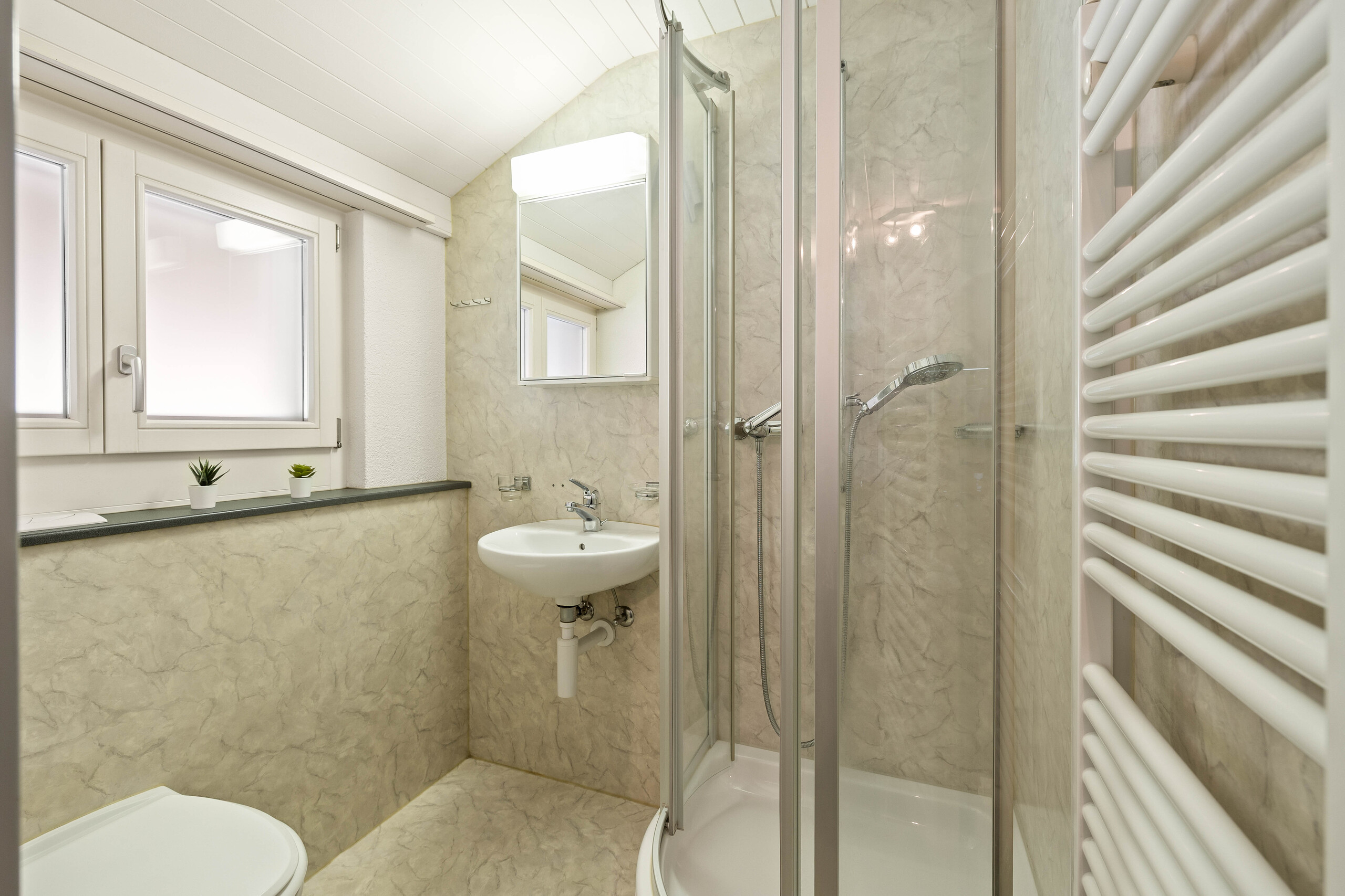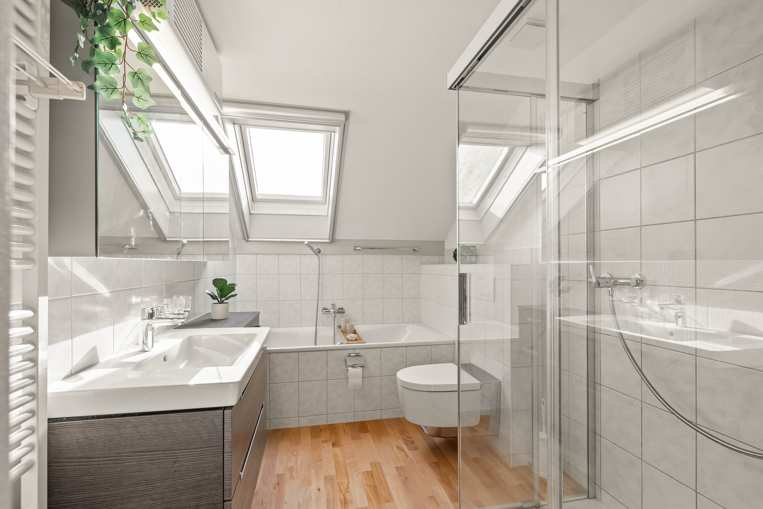 - Optionen im Dachgeschoss: Entweder separate Nutzung des Studios oder Erweiterung der Wohnung auf 3.5 Zimmer