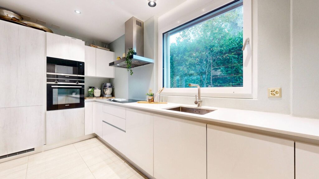 Im Erdgeschoss erwartet Sie ein offener, lichtdurchfluteter Wohn- und Essbereich mit direktem Zugang zum Wintergarten. Die moderne Küche mit Kochinsel und hochwertigen Geräten ist der ideale Treffpunkt für Familie und Gäste.