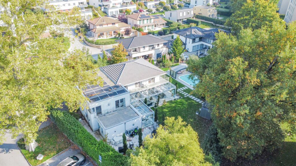 Luxus pur in Granges-Paccot: Dieses beeindruckende 10-Zimmer-Ein-/Zweifamilienhaus überzeugt durch seine grosszügigen Dimensionen, hochwertige Ausstattung und vielseitige Nutzungsmöglichkeiten. Mit einer Gesamtnutzfläche von 482 m², verteilt auf drei Geschosse und zwei miteinander verbundene Gebäude, bietet die Liegenschaft Raum für höchste Ansprüche – sei es als grosszügiges Einfamilienhaus oder als Kombination aus Wohnen und Arbeiten.