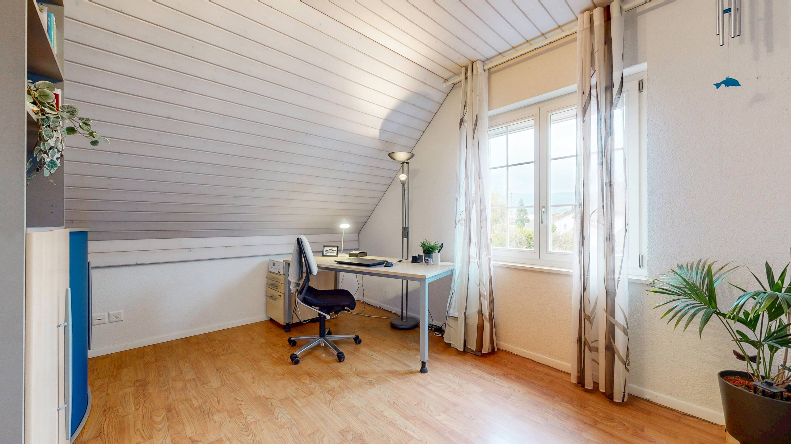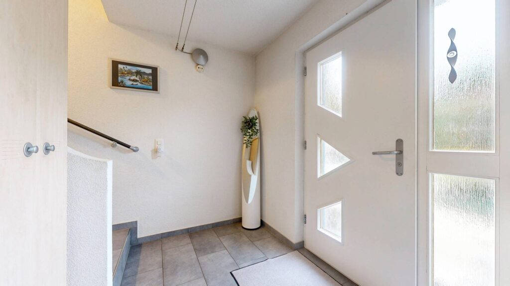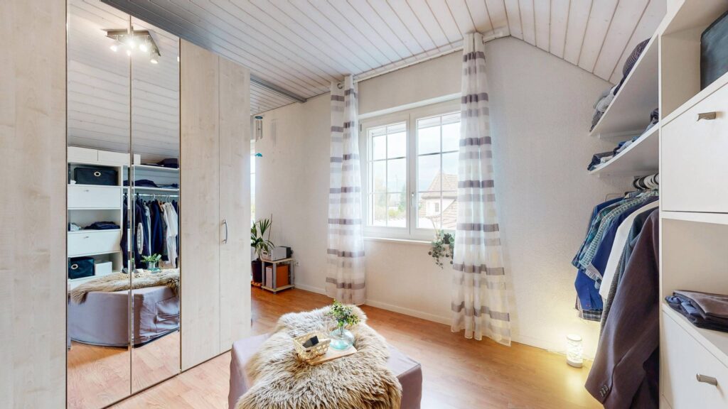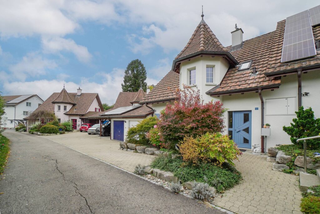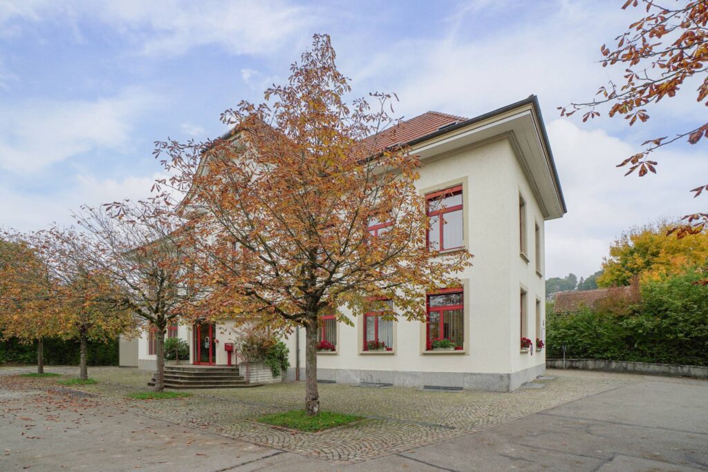 Die klassische Architektur fällt sofort ins Auge. Markante Elemente wie der Turmerker und die Sprossenfenster verleihen dem Haus eine zeitlose Ausstrahlung, die sich klar von rein funktionalen Neubauten abhebt. Im Innern setzt sich dieser Eindruck fort. Die effiziente Grundrissgestaltung nutzt den vorhandenen Raum konsequent aus und ermöglicht flexible Nutzungsformen, sei es für Familien, Paare oder Homeoffice-Konzepte.