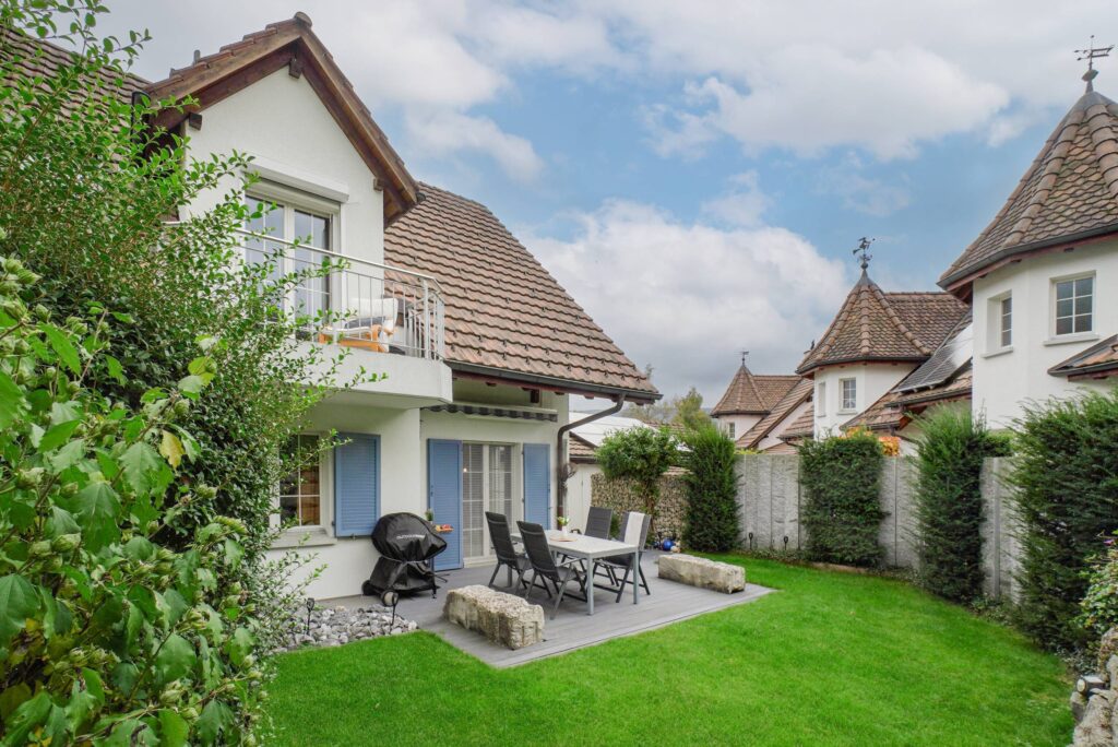 Ergänzt wird das Platzangebot durch praktische Nebenräume wie Keller, Waschküche, Estrich und einen Weinkeller. Im Aussenbereich lädt ein idyllischer Gartensitzplatz mit Rasenfläche zum Verweilen ein, ergänzt durch einen Balkon. Eine Einzelgarage ist im Kaufpreis bereits enthalten.
