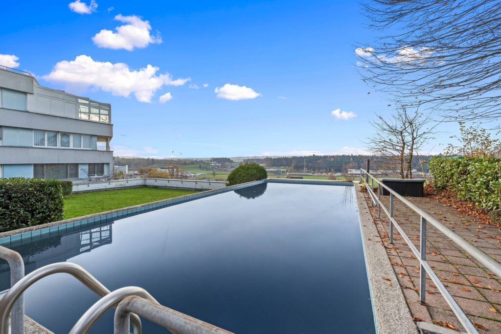 Besonders attraktiv sind die gemeinschaftlichen Extras der Überbauung: Ein moderner Aussenpool, eine Sauna, ein Spielplatz und eine Grillstelle stehen den Bewohnern zur Mitbenutzung zur Verfügung. Dazu kommen praktische Nebenräume wie ein eigener Keller und ein zusätzlicher gemeinsamer Kellerraum.