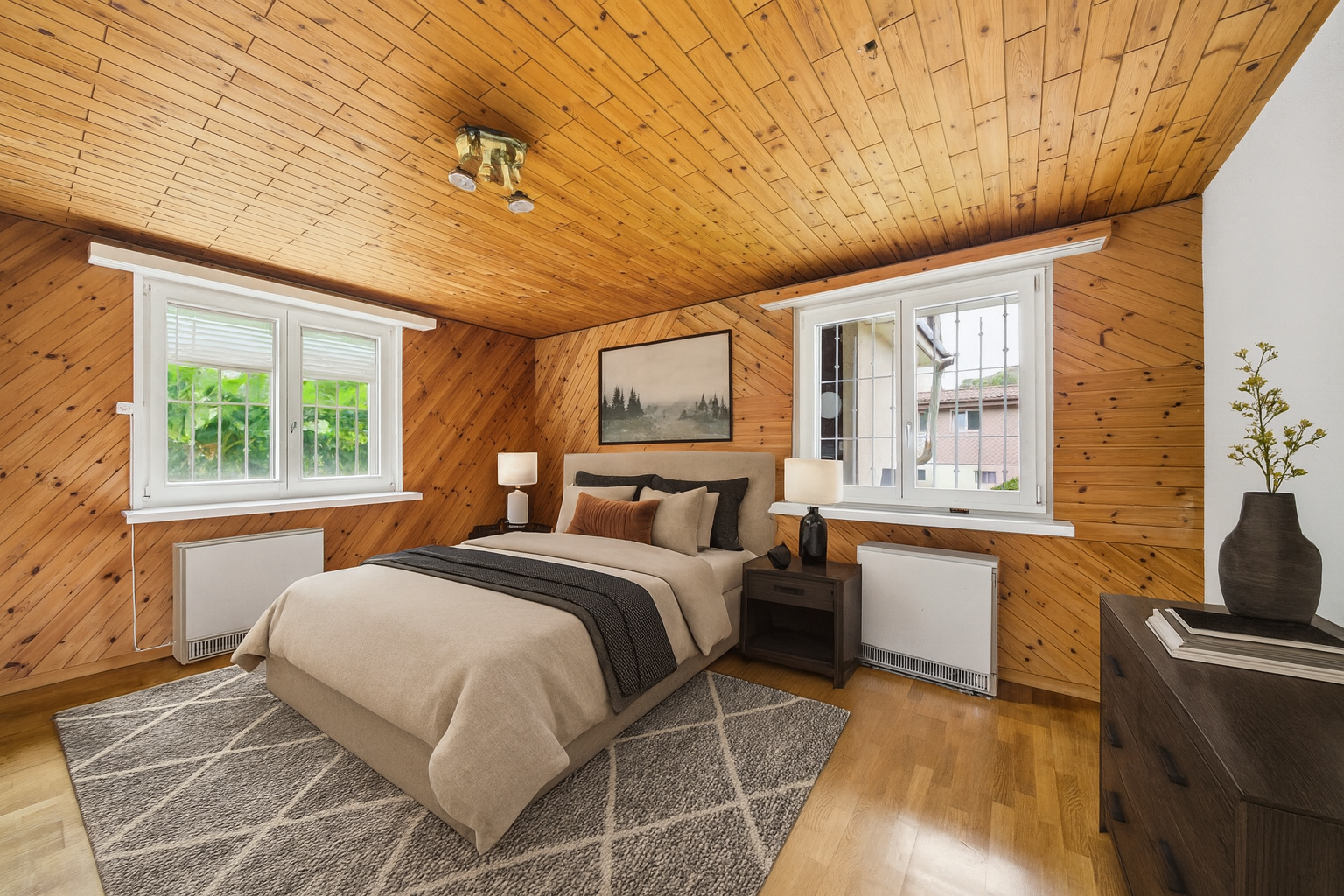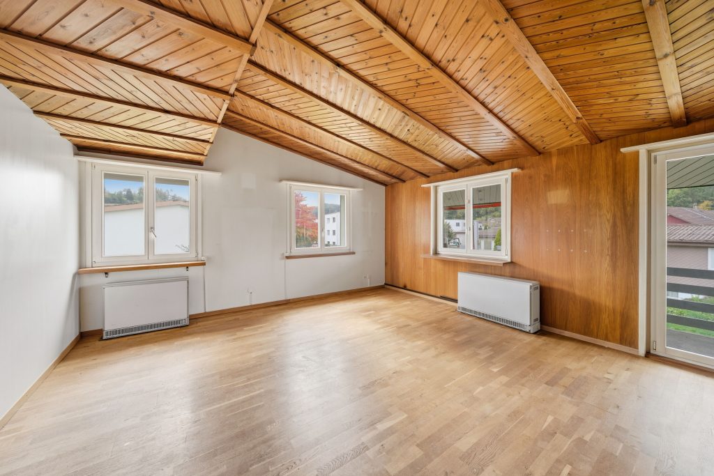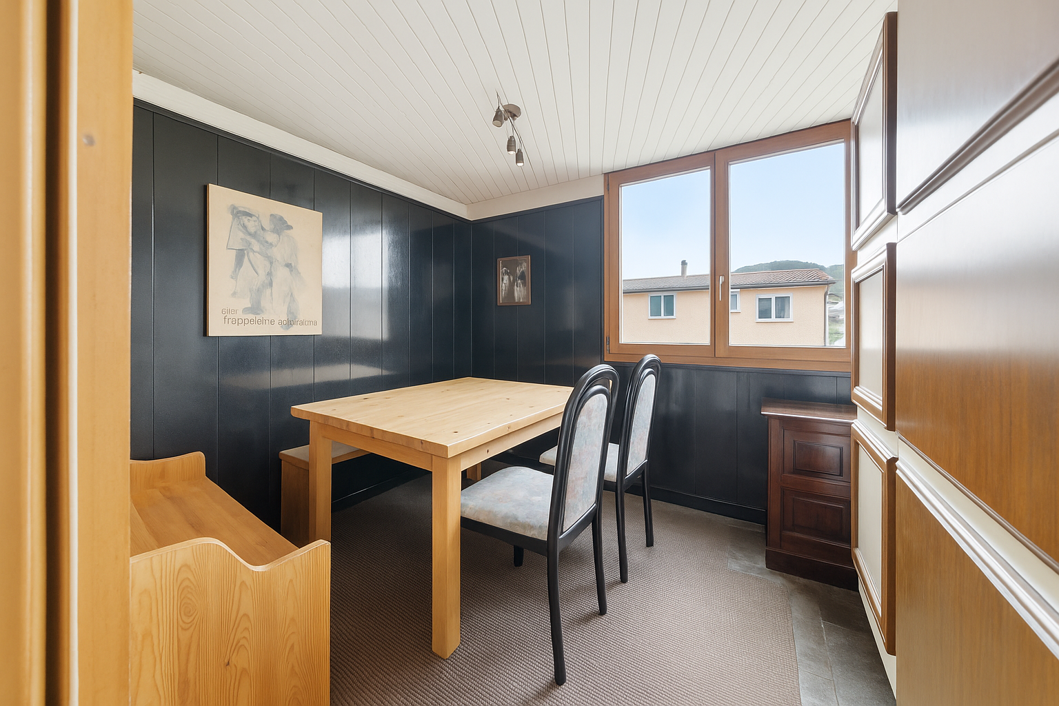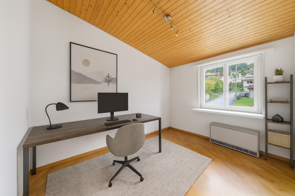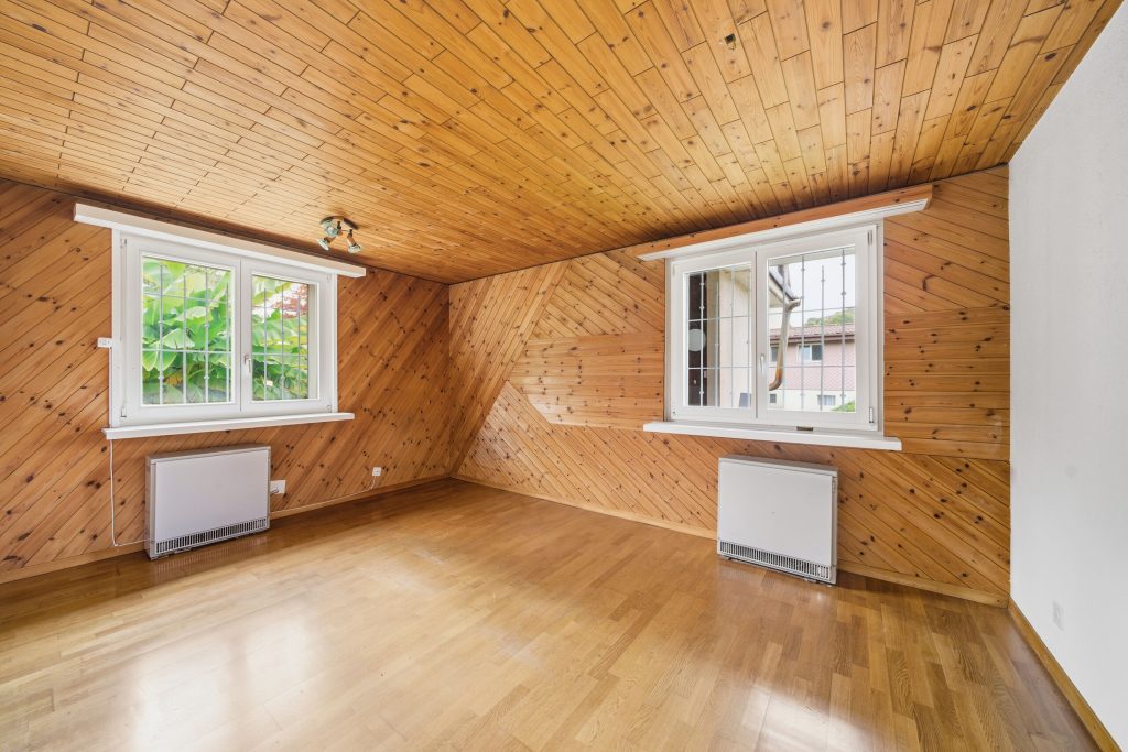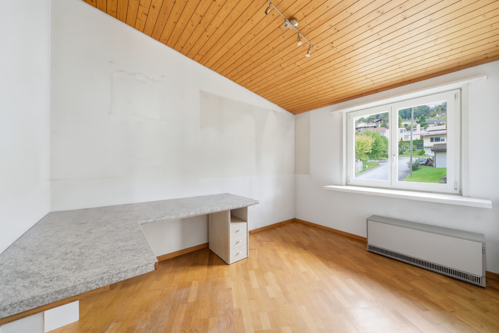 Das vielseitige Raumprogramm lässt sich flexibel an individuelle Bedürfnisse anpassen – ob als Familienhaus, Homeoffice-Lösung oder Kombination von Wohnen und Arbeiten. Die zahlreichen grossen Fenster sorgen in allen Räumen für viel Licht und eine freundliche Atmosphäre.