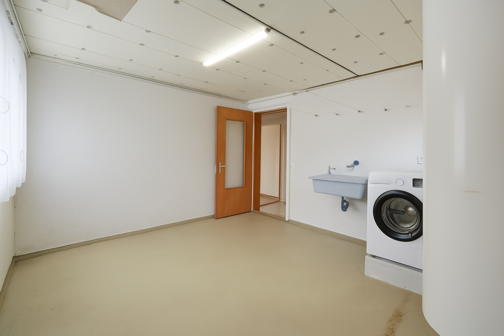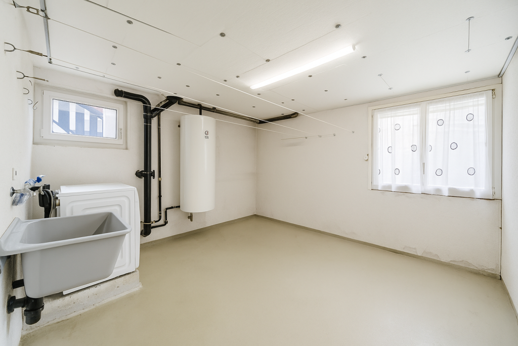 Praktische Nebenräume wie eine Waschküche und ein Keller bieten zusätzlichen Stauraum. In der grossen Garage findet sich sogar genügend Platz für eine Werkstatt – ein Traum für Hobbybastler.
