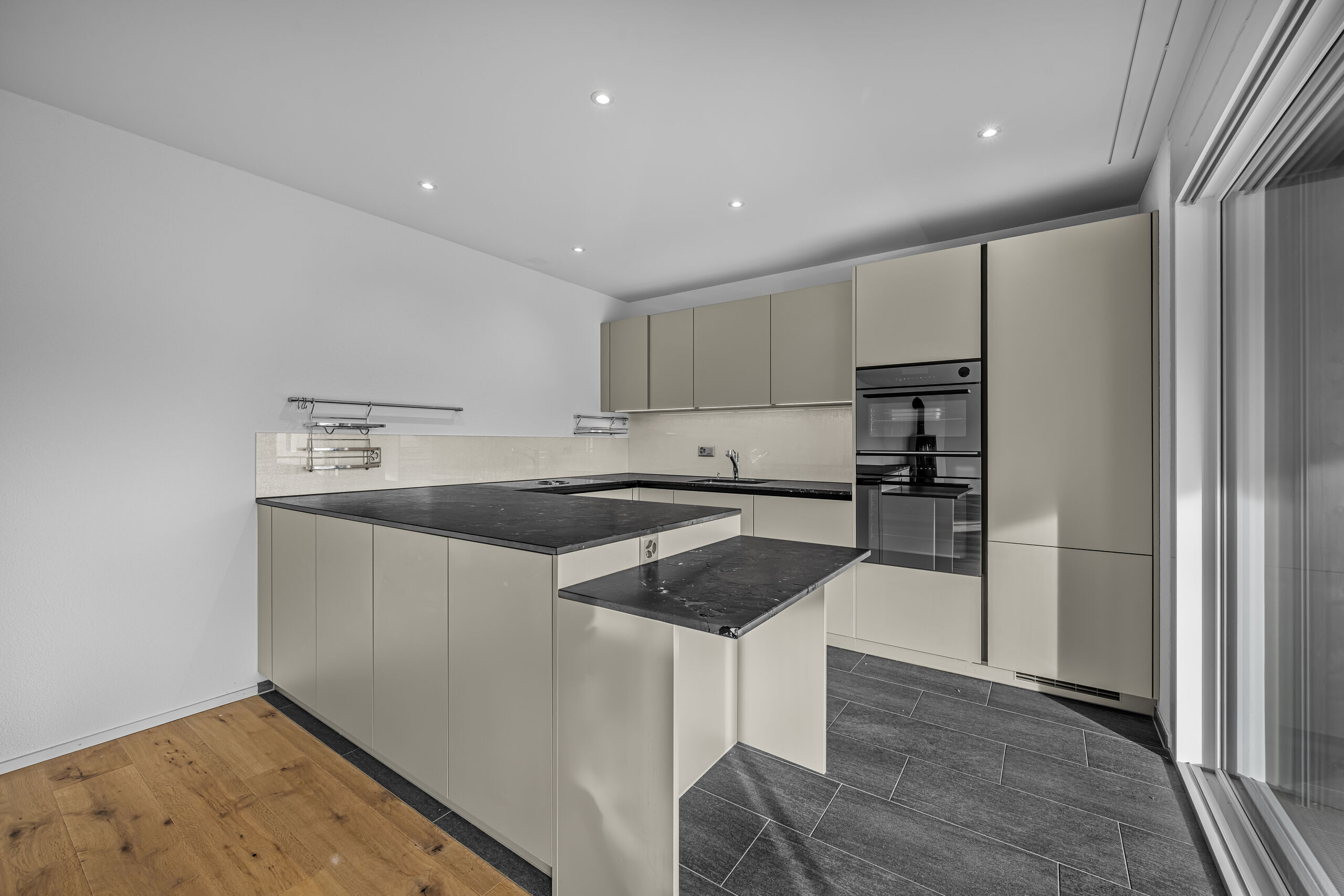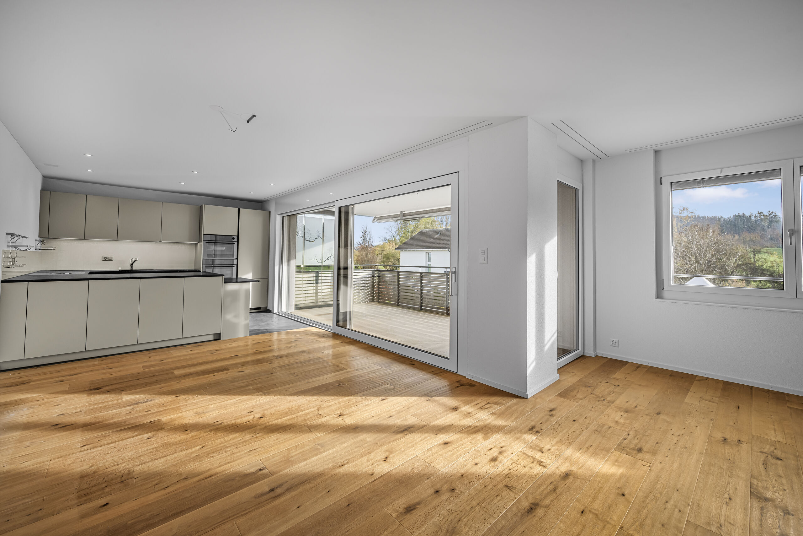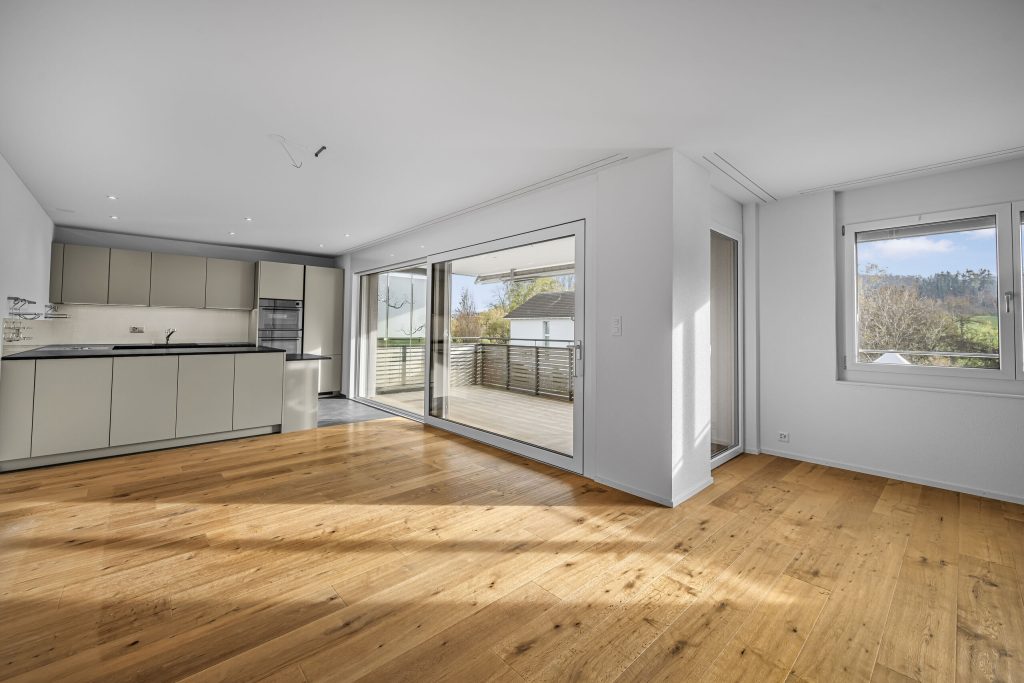 Die 121 m² Wohnfläche sind klar strukturiert und bieten Raum für bequemes, zeitgemässes Wohnen. Im Mittelpunkt steht der Wohnbereich mit seinem Schwedenofen, der dem Ambiente eine warme, gemütliche Note gibt. Die offene Küche im U-Format bietet enorm viel Arbeitsfläche und ist mit Steamer und weiteren hochwertigen Geräten ausgestattet – ideal für alle, die gerne kochen.