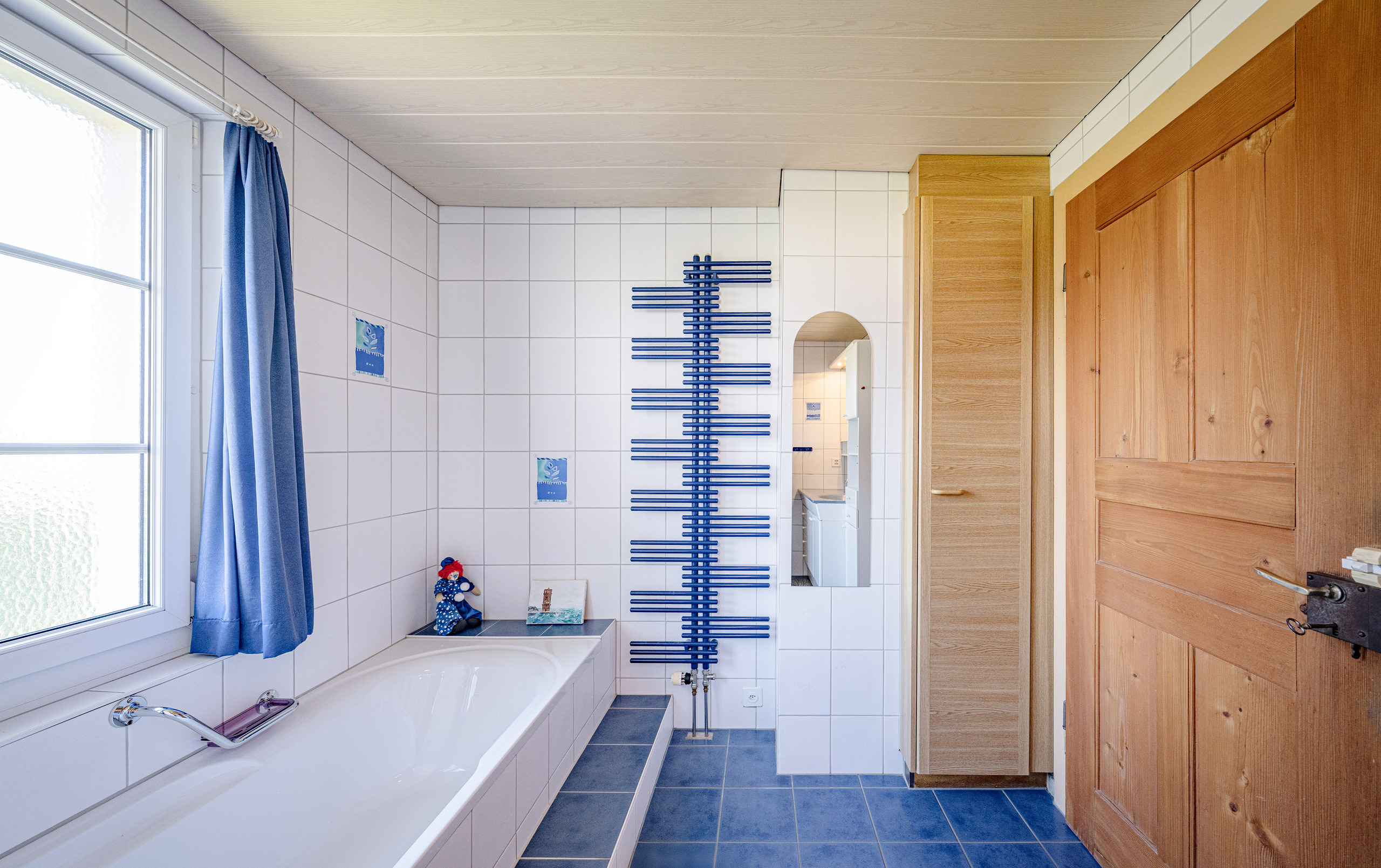 - Drei Nassbereiche vorhanden: Familienbad mit Bad/Dusche/WC, dazu ein zusätzliche Dusche und ein Gäste-WC